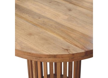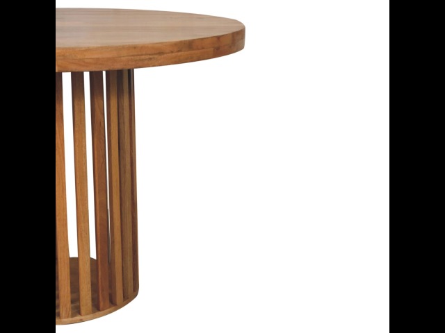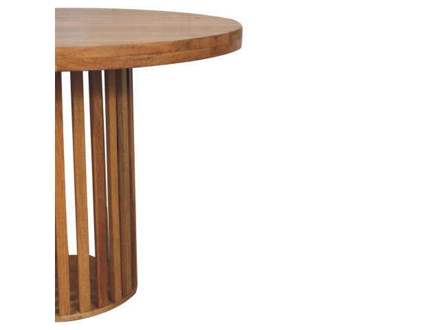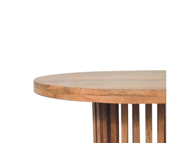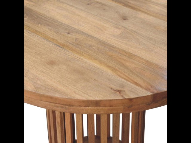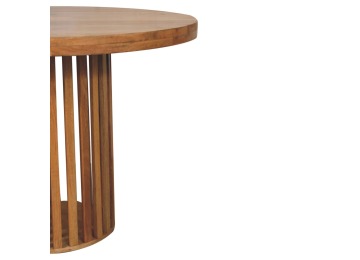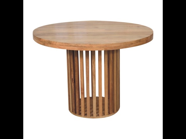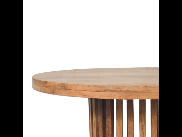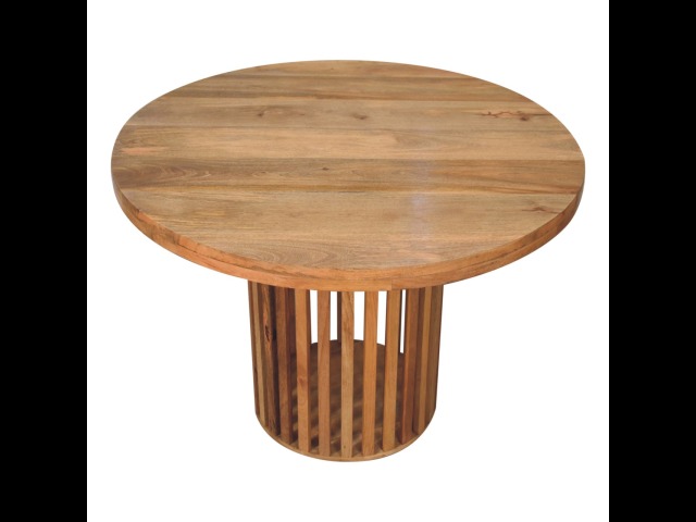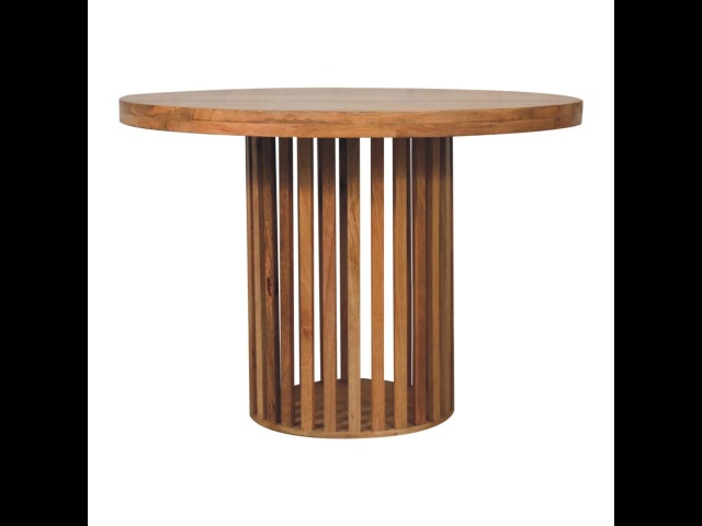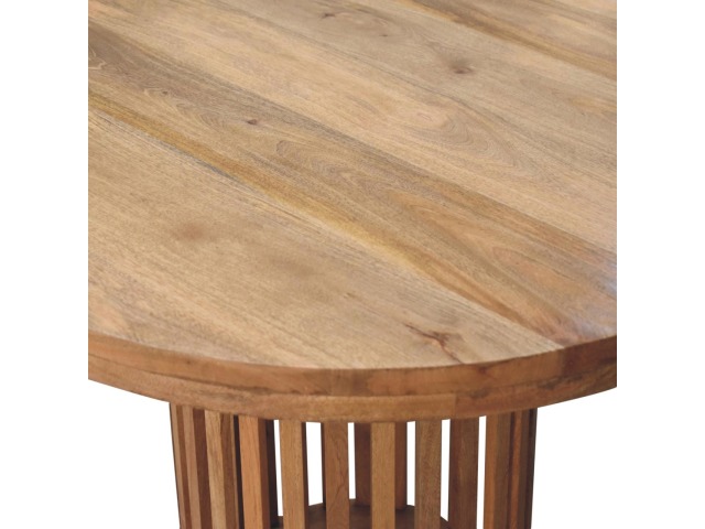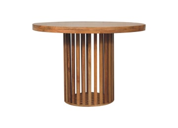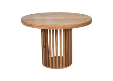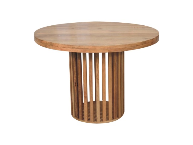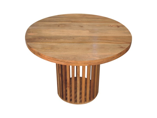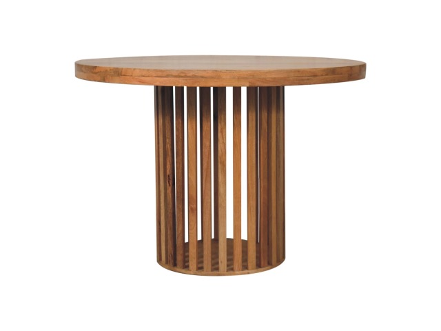 This Ariella Round Dining Table boats a contemporary Japanese design allowing light to shine through and is constructed from 100% solid mango wood in an oak-ish finish. Perfect for family dinners and gatherings.