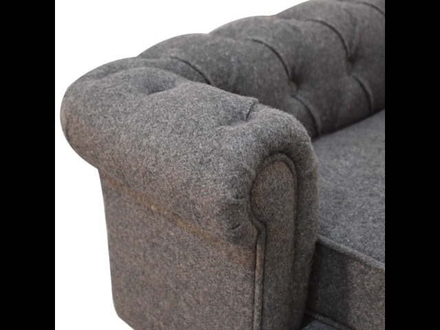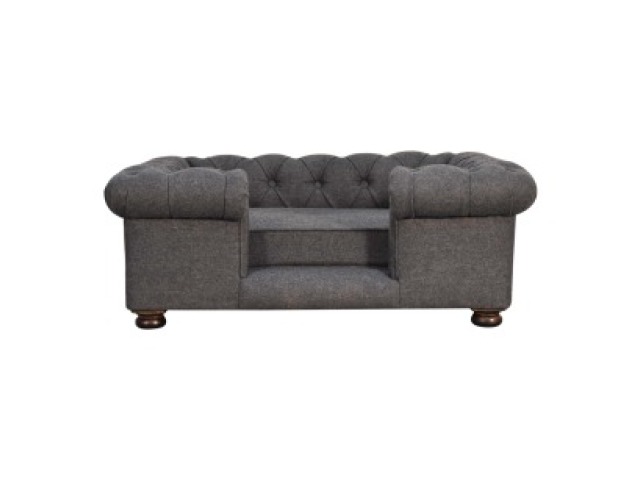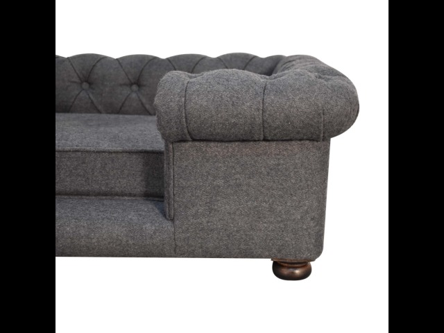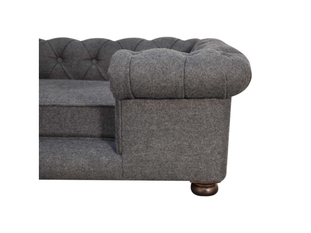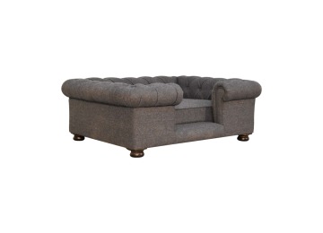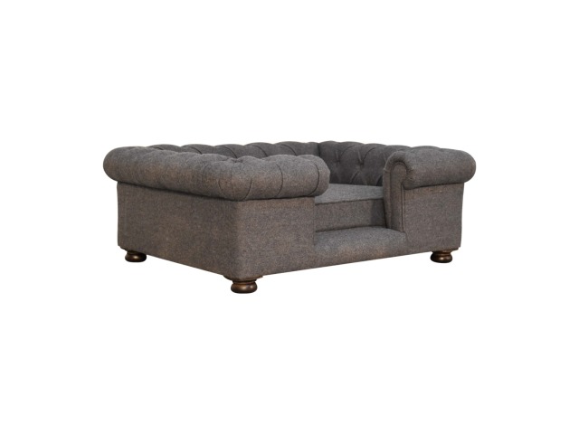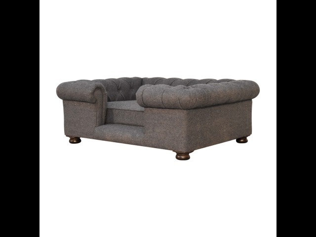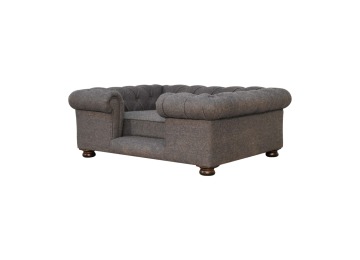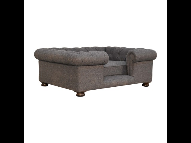 Match your pets furniture seamlessly to your interior. This sofa/bed has been upholstered in a lush battleship tweed with a deep button design and padded cushions for ultimate comfort for your pet. Other features include turned legs for stability.