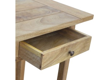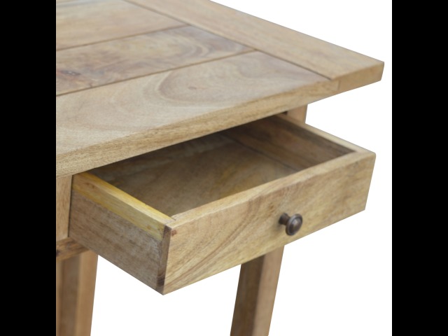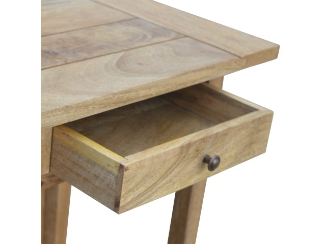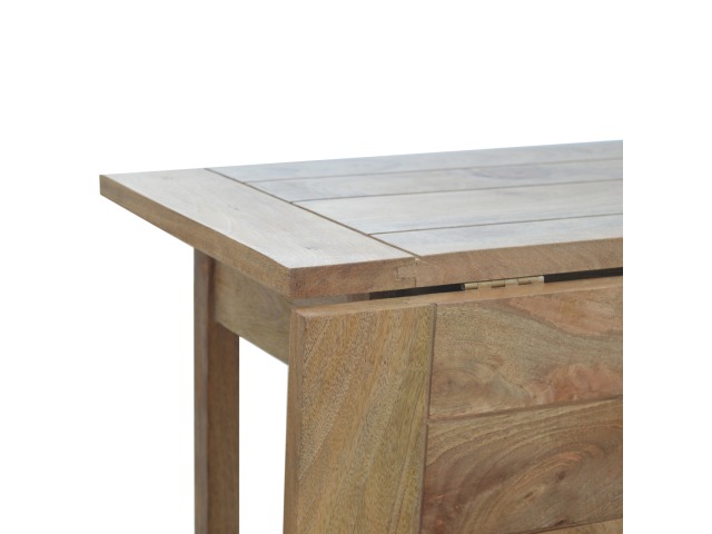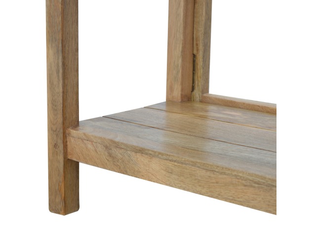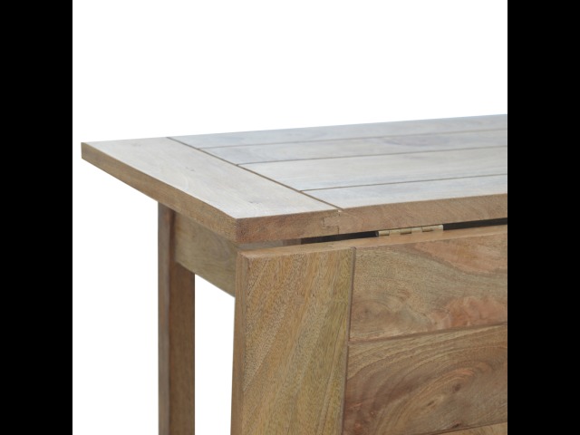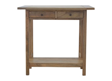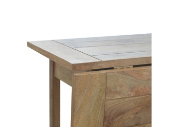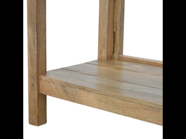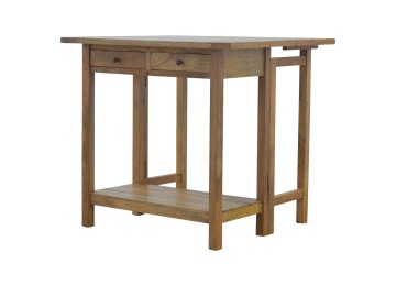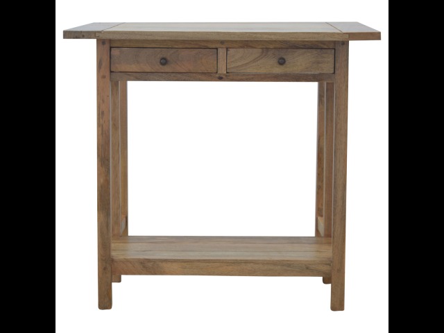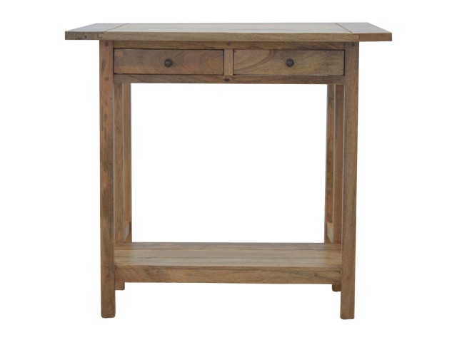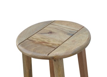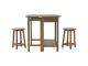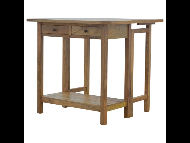 This breakfast table set is fully constructed from 100% solid mango wood and has a fine oak-ish finish. It comes with 2 strong and compact little wooden stools, which are very sturdy yet light enough to move around easily, and can be tucked away on the shelf under the table when not in use. It is ideal for small kitchens but can also be extended when needed. The perfect addition to any kitchen.