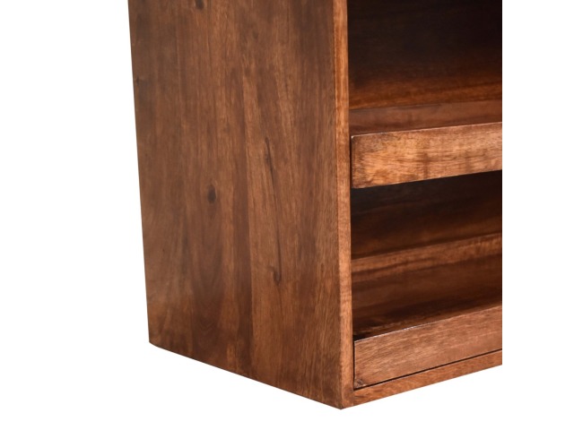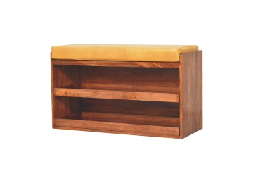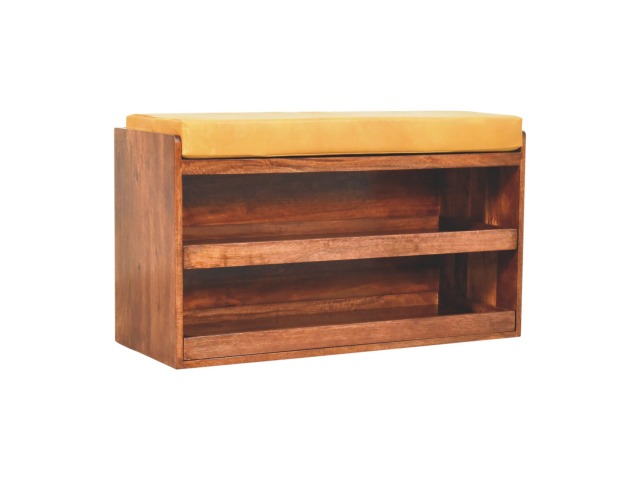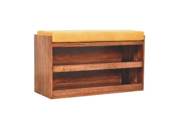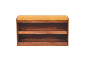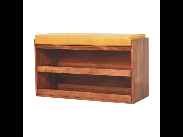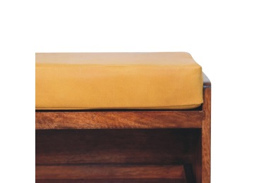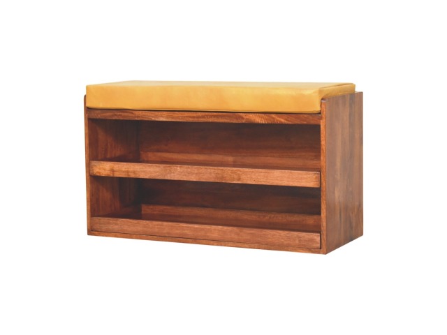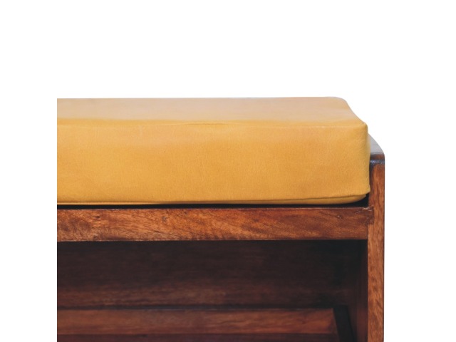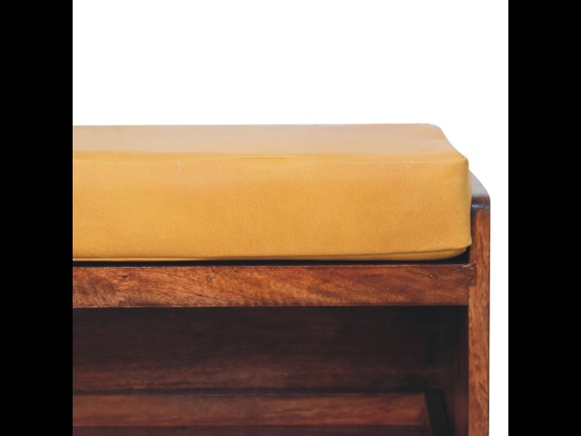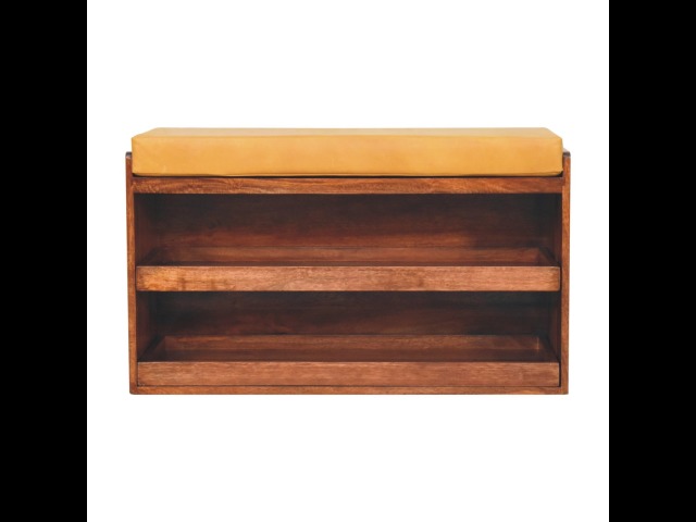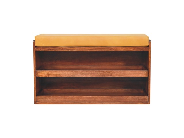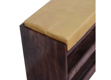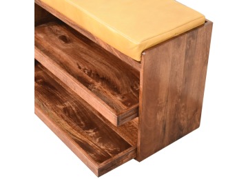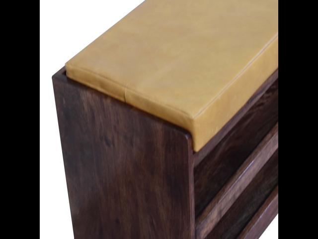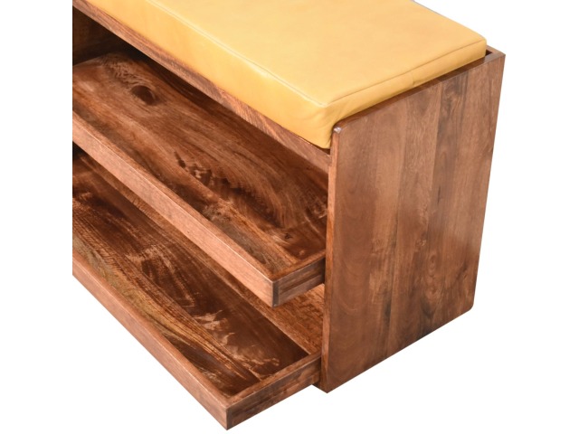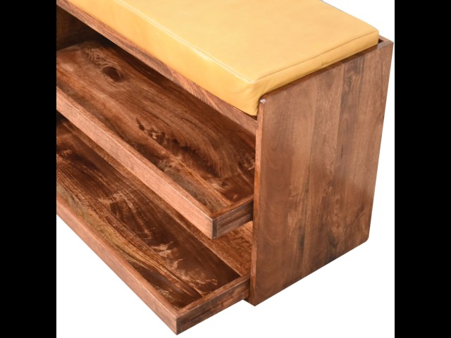 Experience the epitome of space-saving functionality with our solid mango wood shoe storage cabinet. With a luxurious buffalo tan leather top, this exquisite cabinet boasts two pull-out drawers, accommodating 6-8 pairs of shoes or boots. Elevate your hallway's allure while keeping footwear organized and easily accessible.