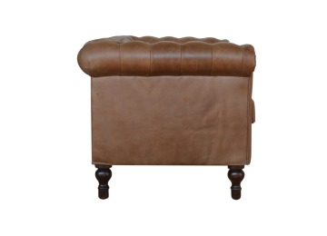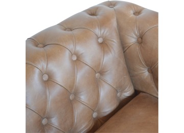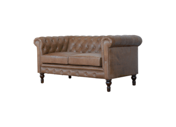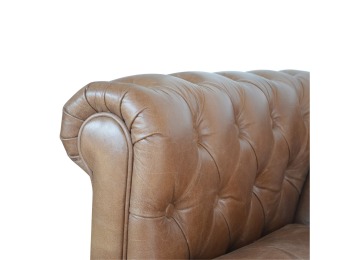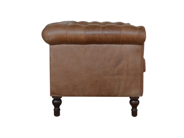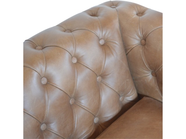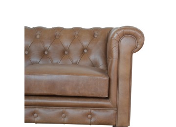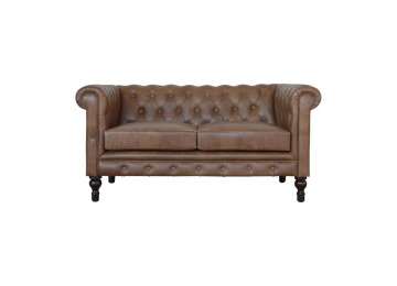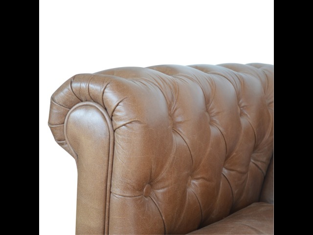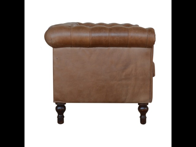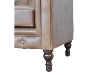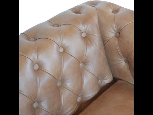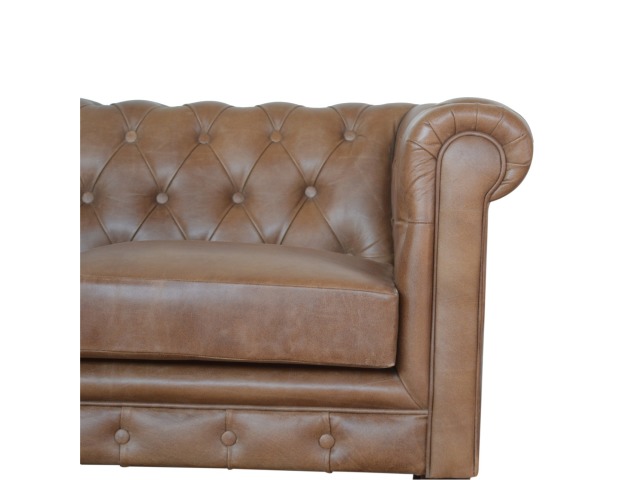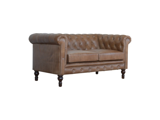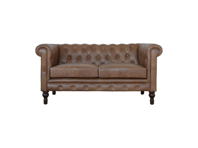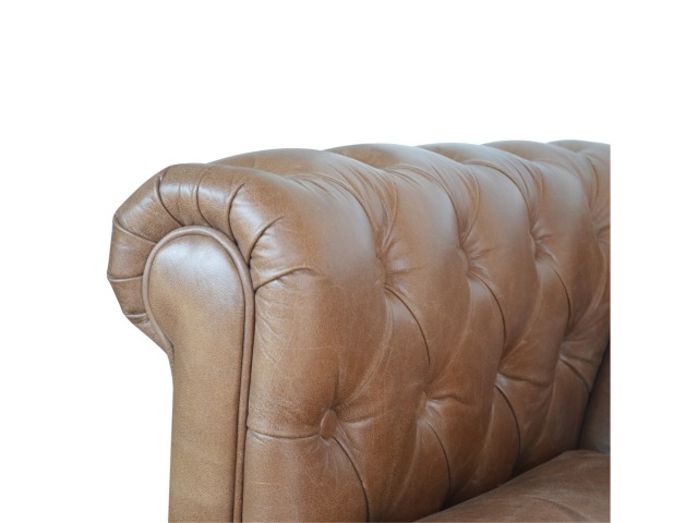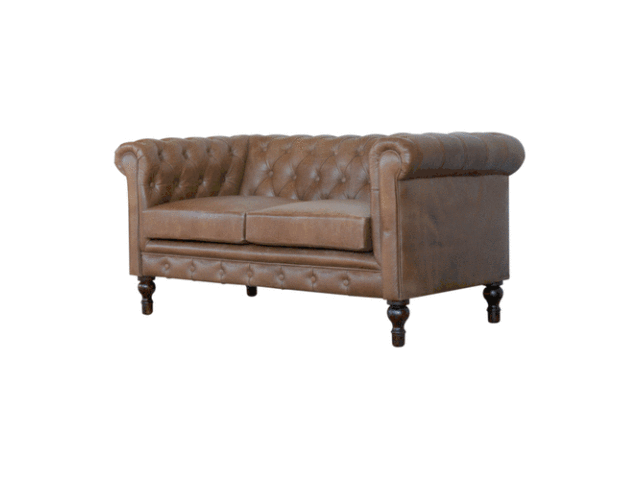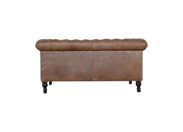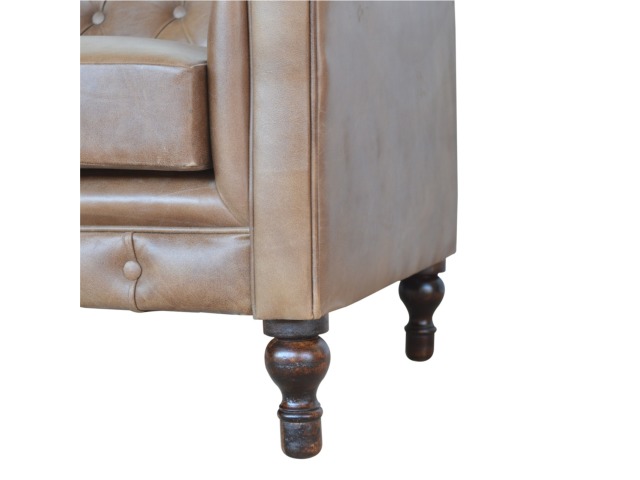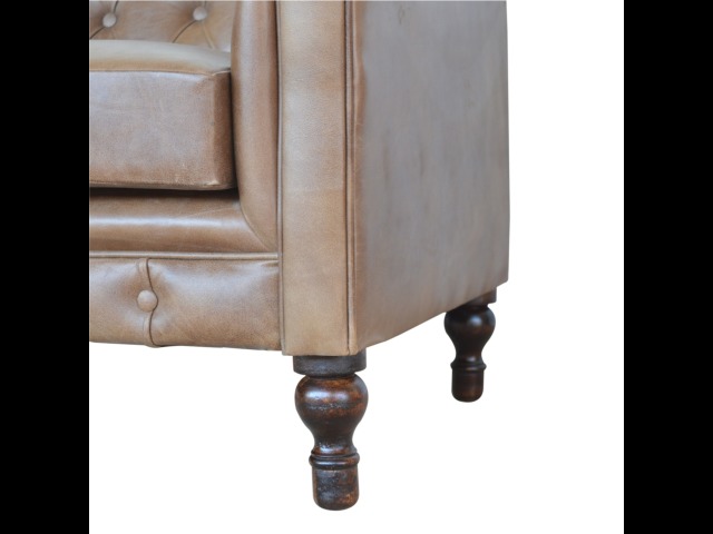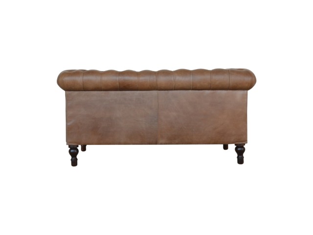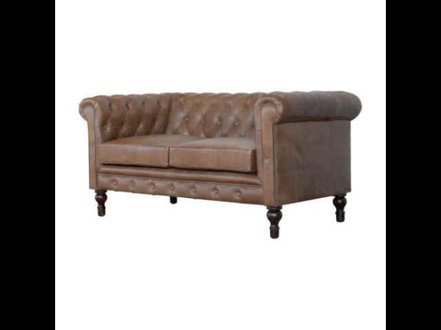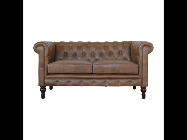 This Double Seater Chesterfield Sofa has been upholstered in brown buffalo hide leather and has 4 hand-turned legs constructed from 100% solid mango wood in a walnut finish. This 2-seater sofa is detailed with deep button tufts, piping, and sheltering arms. Perfect for classic country English homes. Product to be delivered on the pallet as a pavement/kerbside delivery. Customer needs to dispose off or use it if they wish to. For possible returns, we would require the original pallet alongside full packaging as part of returns policy.