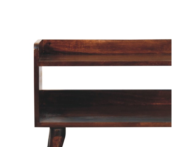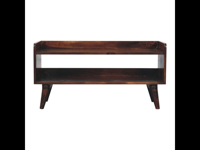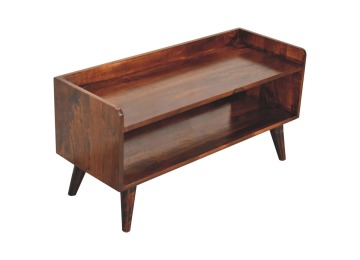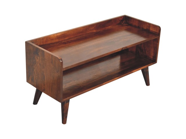 This shoe bench is beautifully hand crafted and constructed from 100% solid mango wood with Nordic style knock down legs in a rich california walnut finish. This design will bring a whole new look to your home and offers useful storage for shoes, boots and any essential pieces to put on top.