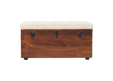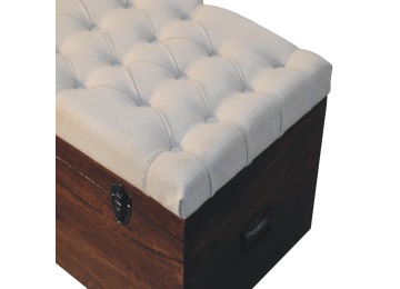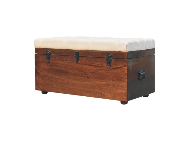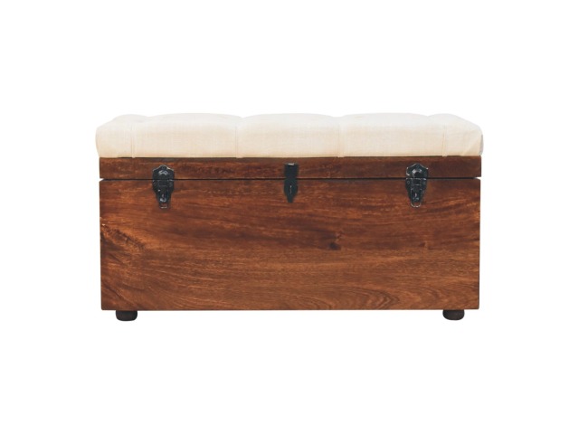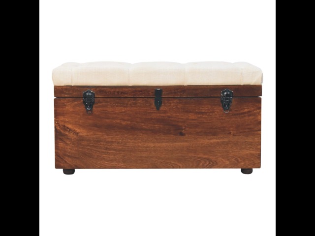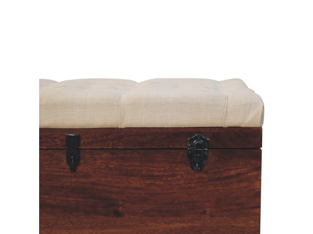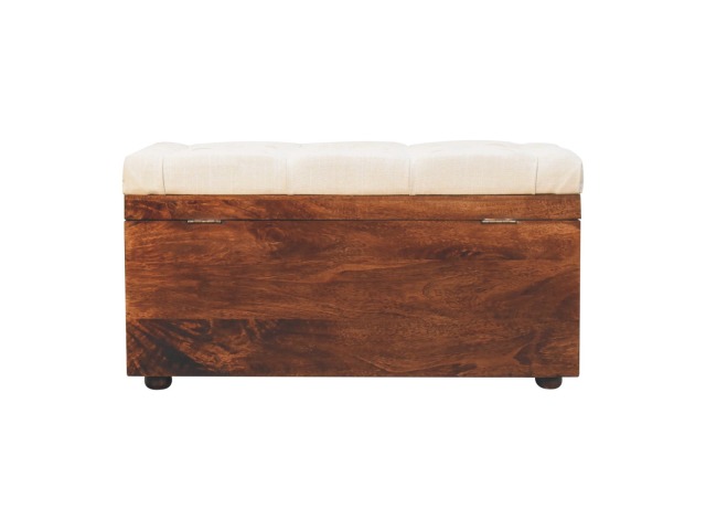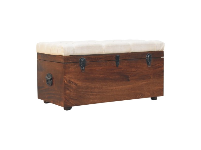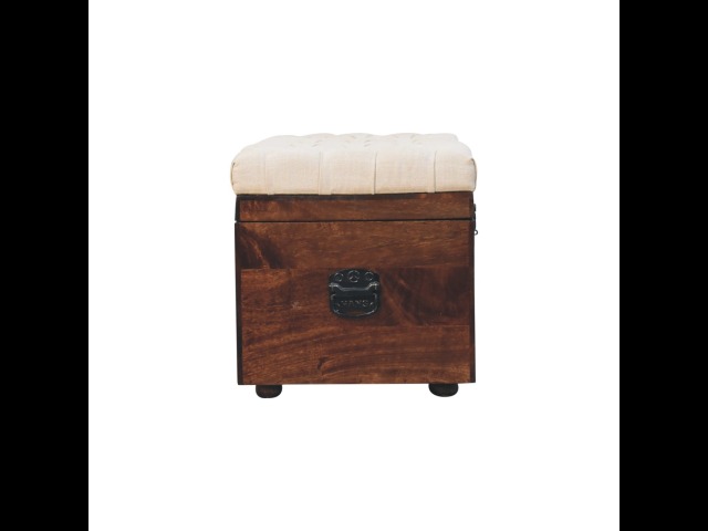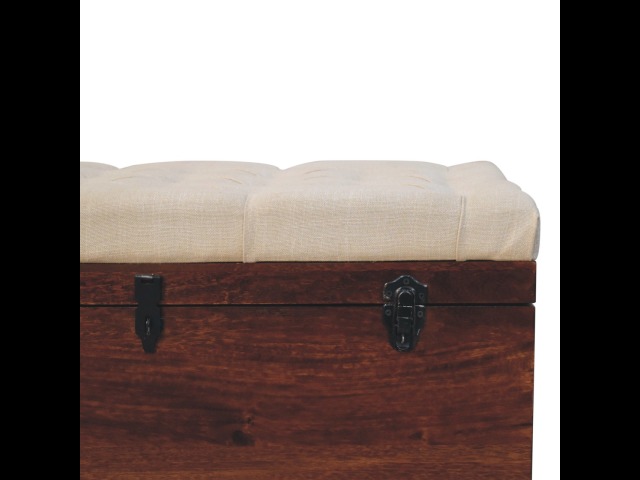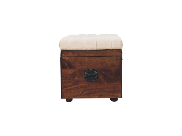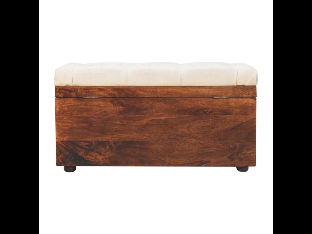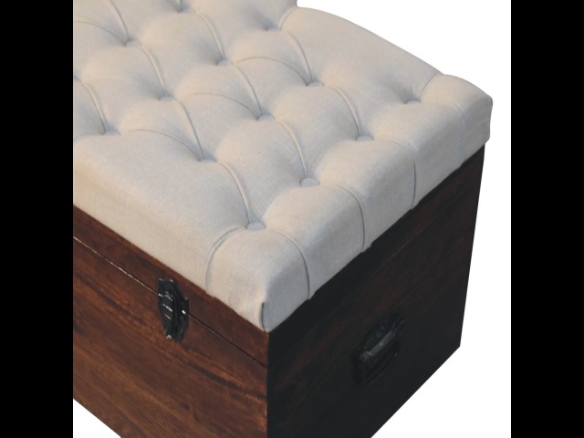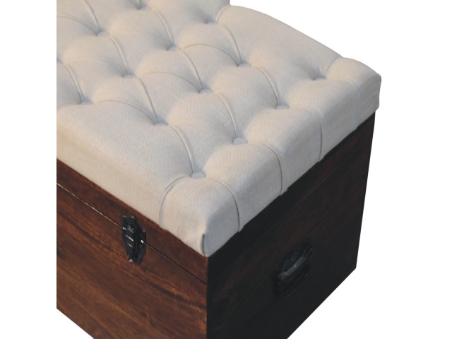 This Lid-up storage box has been constructed from 100% solid mango wood and has been finished in a beautiful california walnut colour. Upholstered in a beautiful white linen and feauturing a deep button design it is the perfect seat which offers comfortability. The lid up compartment can be used to store any extra household belongings you want to keep out of sight and it can be used either in a hallway or bedroom