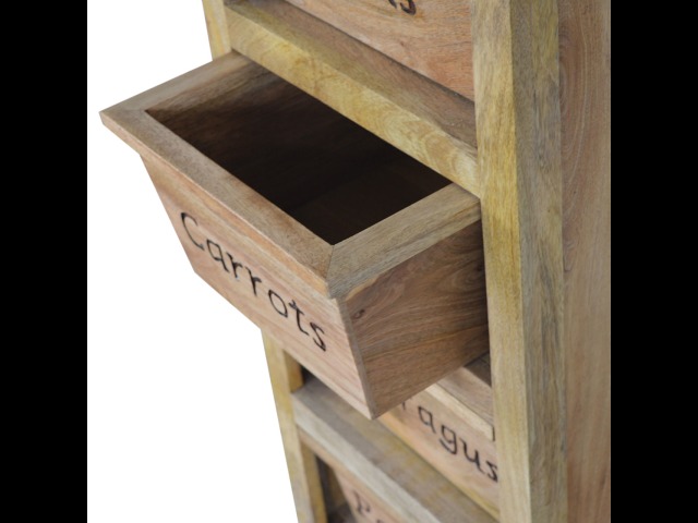Grab our exclusively designed multi utility tray 'tallboy' for everyday kitchen needs. A classic yet petite piece of furniture for country style as well as modern open plan kitchen space. Artistically scripted utility storage trays add a special character to this unit.