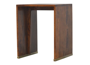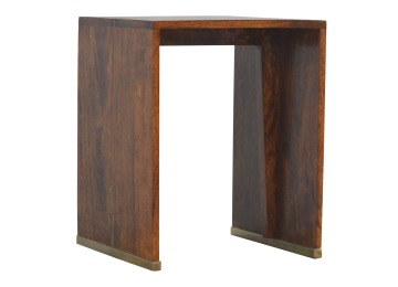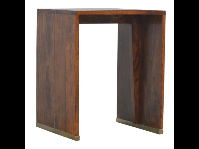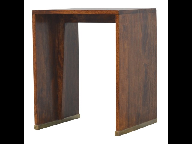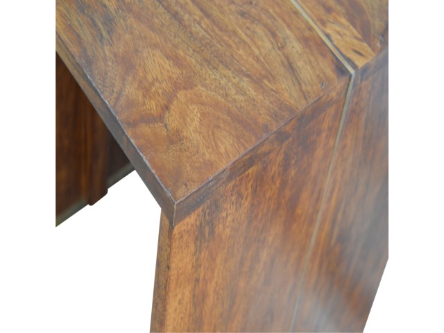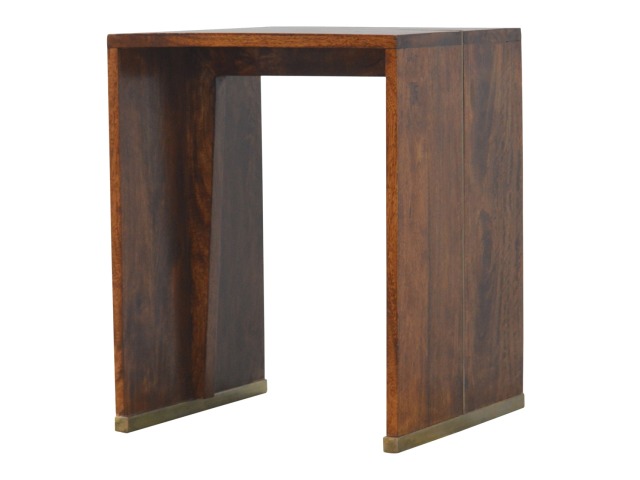 This Geometric design end table has been constructed from 100% solid mango wood and finished in a beautiful chestnut colour. It offers a simple yet unique design which can be in-cooperated in any home or living space.