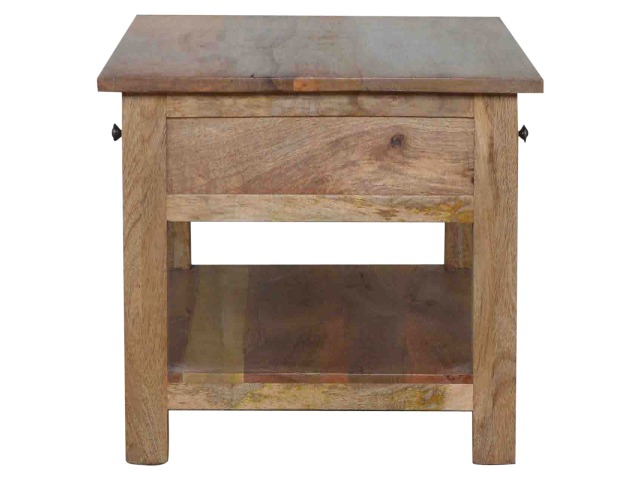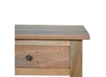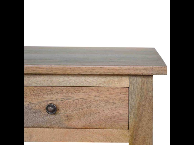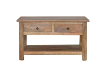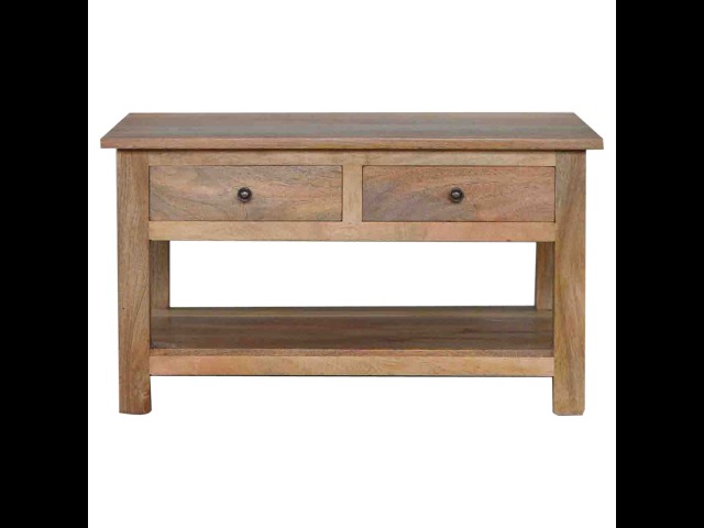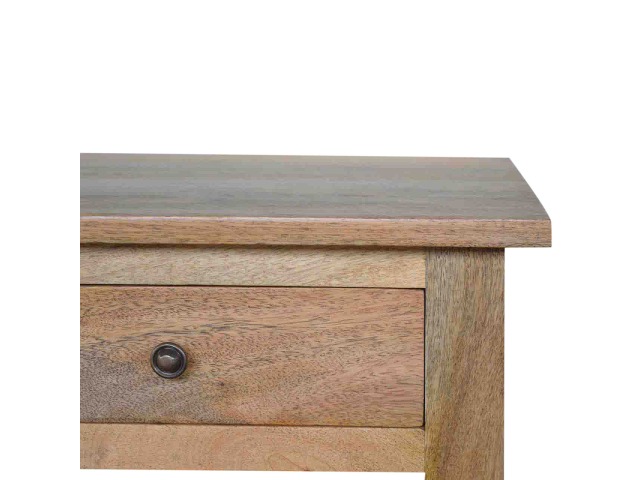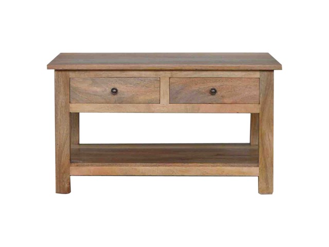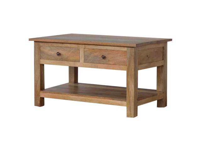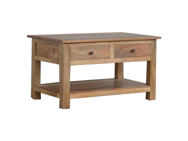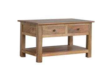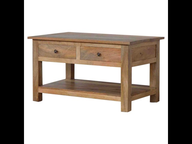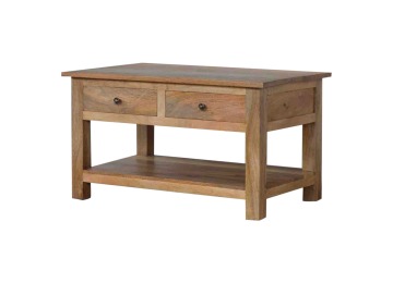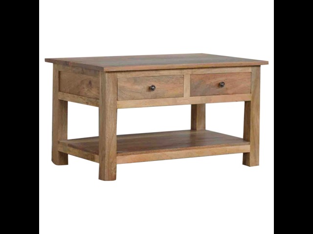 This 4 Drawer country-style Coffee Table has been constructed from 100% solid mango wood and has a fine oak-ish finish that will bring a whole new look to your home. This simple yet beautiful design features shiny knobs and is a highly functional piece that provides plenty of storage space. Every piece of furniture is individually handcrafted and includes swing care tickets explaining the cautions and aftercare instructions.