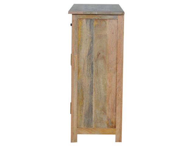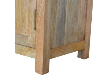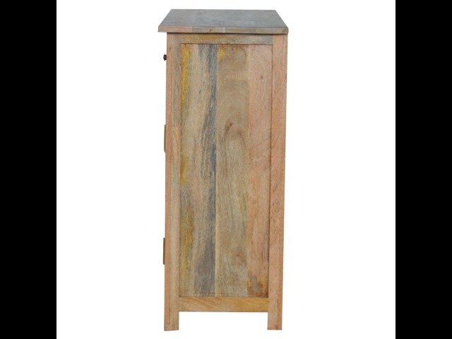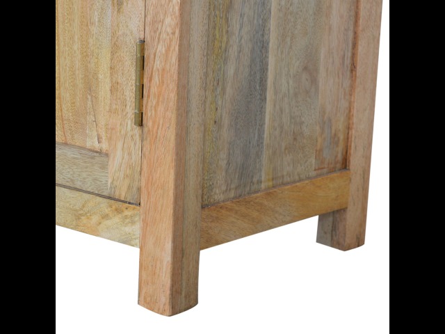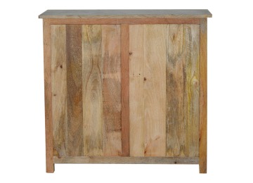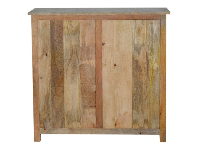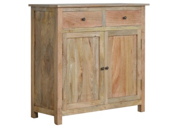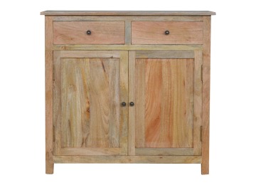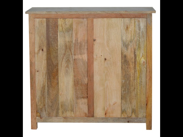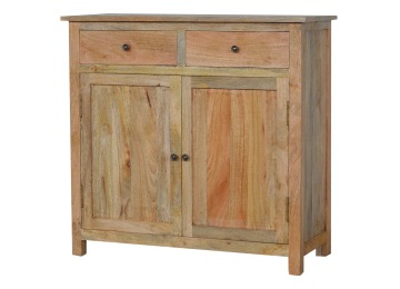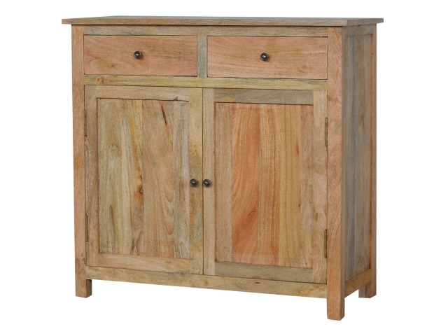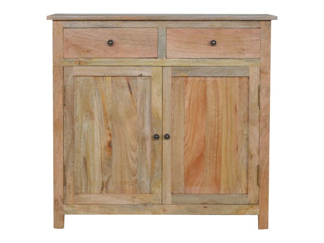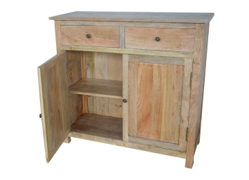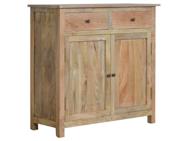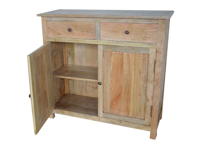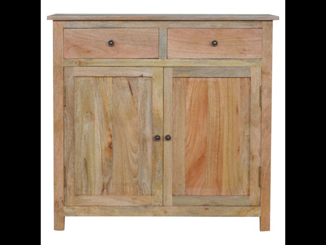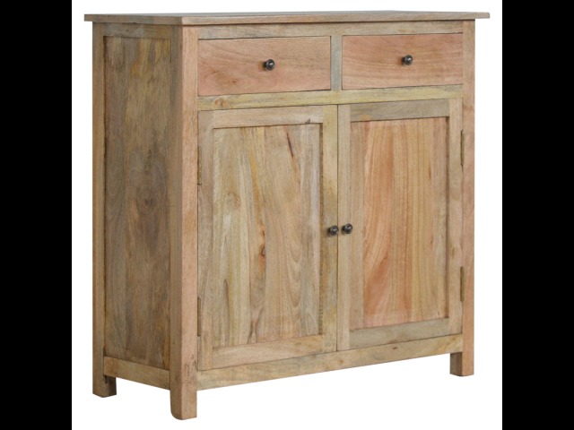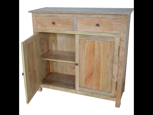 The sideboard is made from 100% solid mango wood. Clean lines give this range a modern look whilst its timeless character maintains its traditional charm to create the perfect addition to your home. This product offers excellent storage space in the form of drawers and shelves. This piece of furniture has oak-ish finish and shiny knobs.
