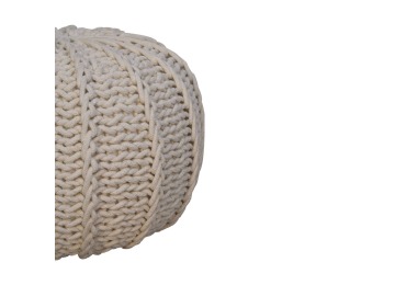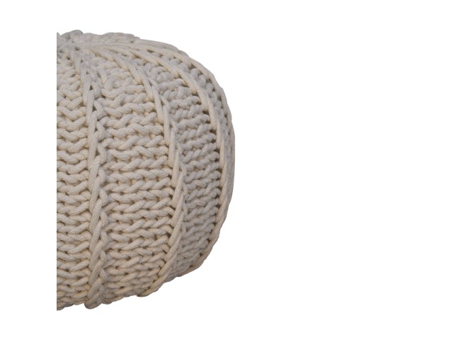If you are looking for a boho accent to liven up your interior, this endearing knitted round pouffe is a perfect match. Featuring a thick weave in a versatile shade of cream, it can serve as a footstool, a piece to sit on or simply as a decorative accessory to your living room. Get creative with mixing colours to make an ideal composition for your surroundings, and enjoy its charming modern bohemian vibe..This product is handcrafted individually and as every piece is unique please do expect variations in finish, texture, size and should not be considered as a defect.
