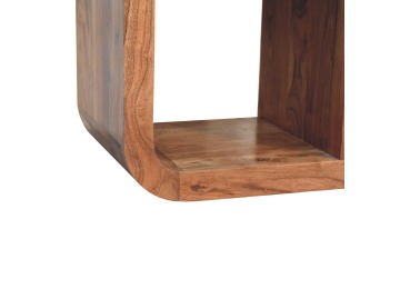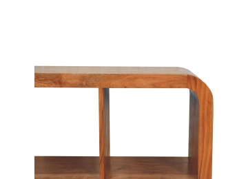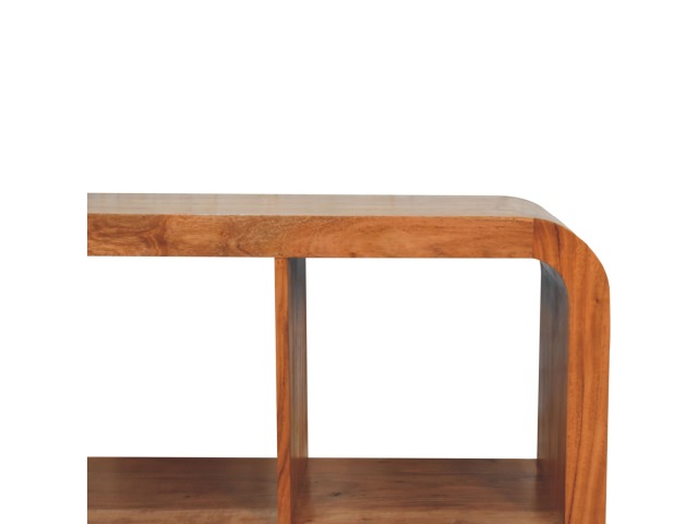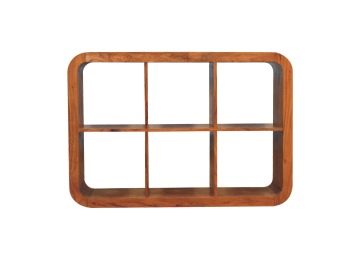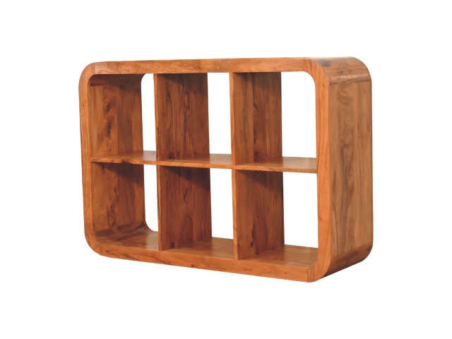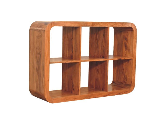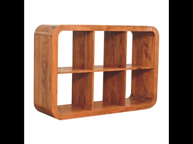 This Darcy Display Unit to your interior, has smooth round edges, making it child and pet-friendly in the home. It is constructed from 100% solid acacia wood in an caramel finish and features 6 open spaces that can be used to display ornaments, plants, frames or anything of your choice. This unit would work well in homes and business.