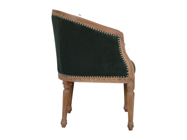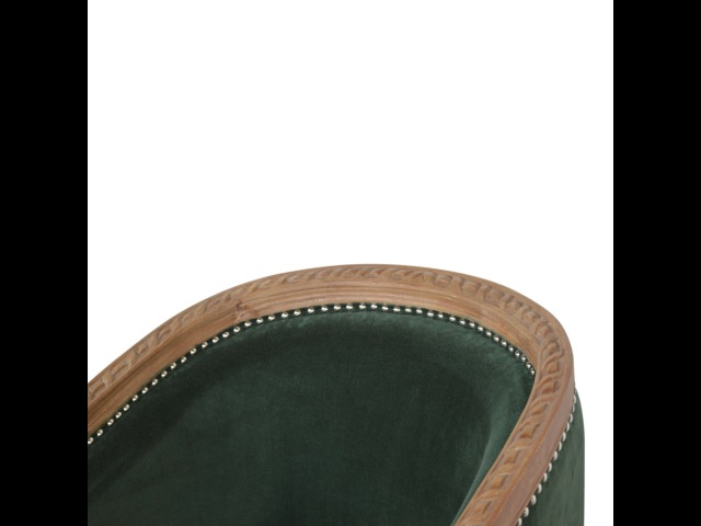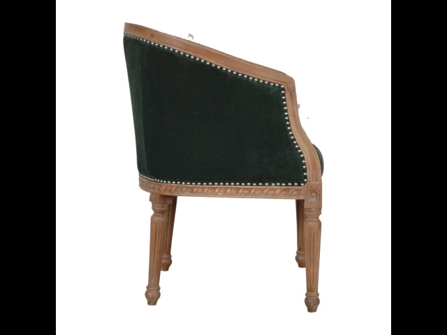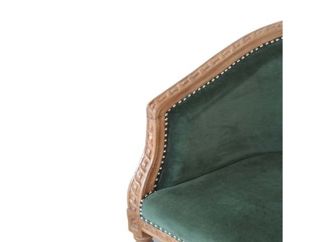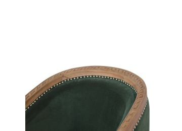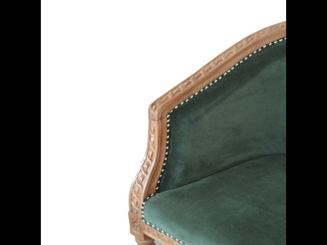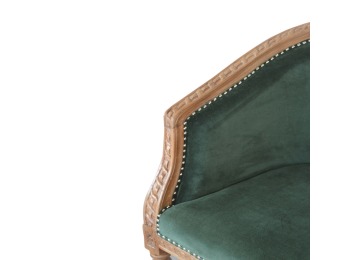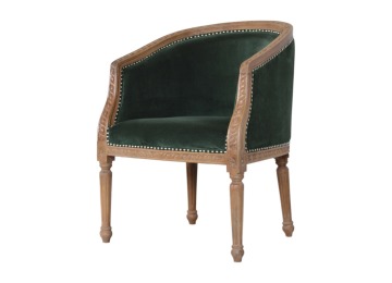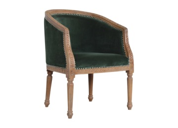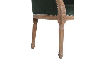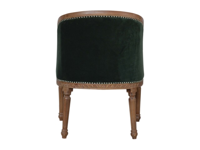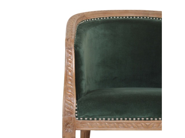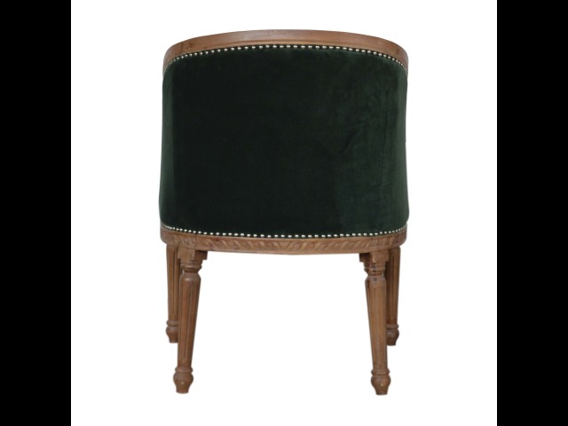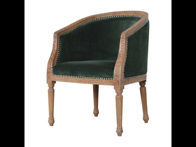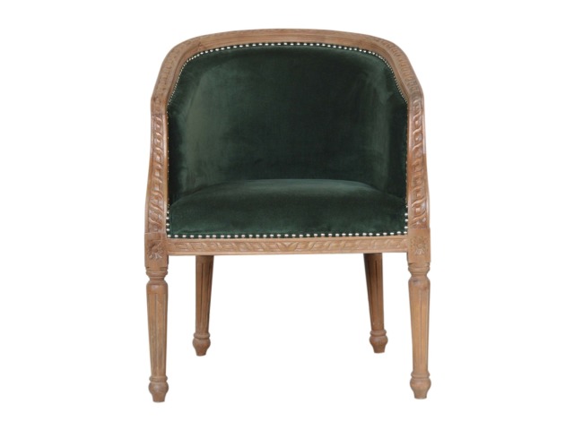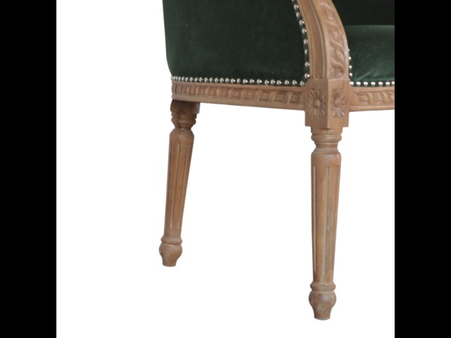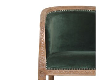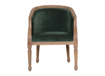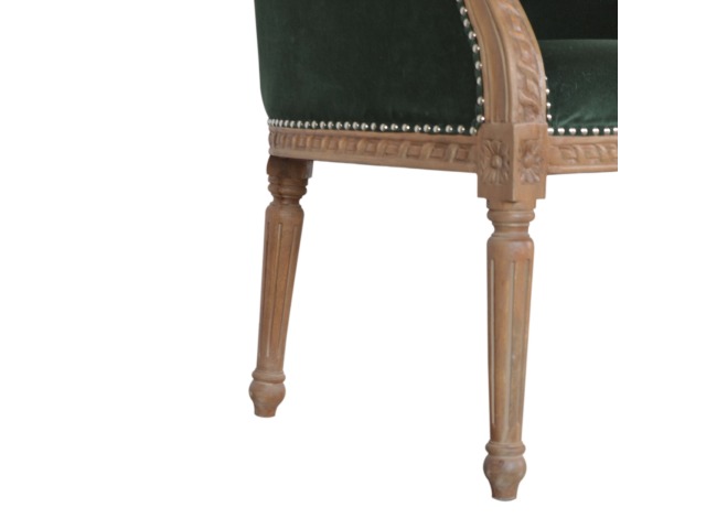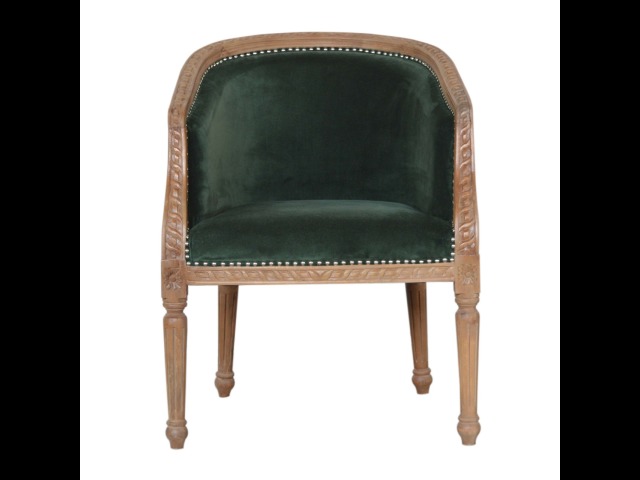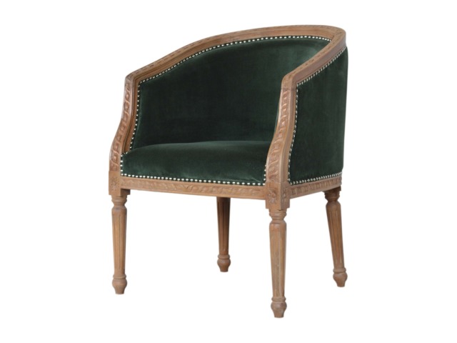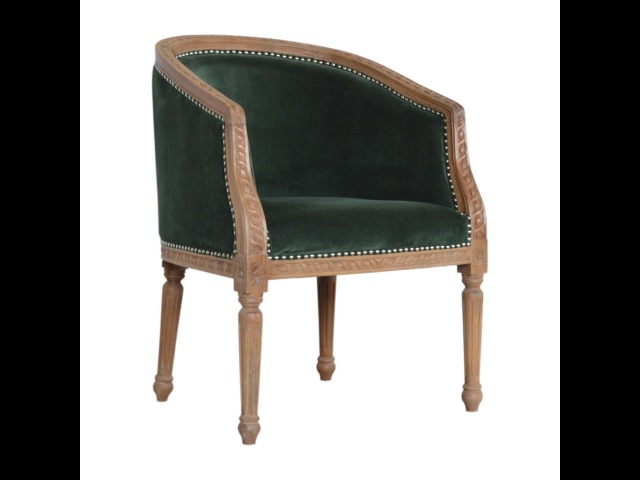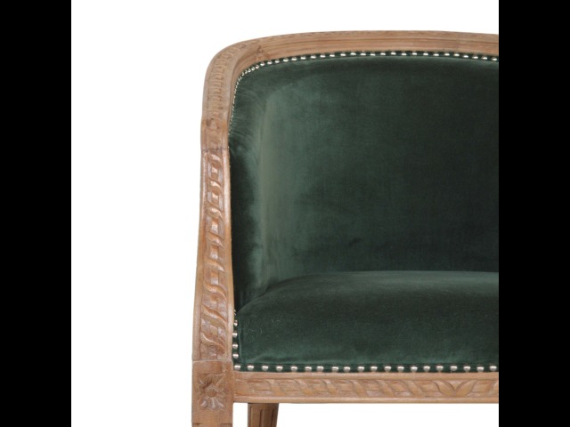 This classy occasional chair has been upholstered in a emerald velvet fabric. It features a studded design and legs constructed from 100% solid mango wood providing strength and durability. This simple yet classy piece can be incorporated in different home settings and interiors.