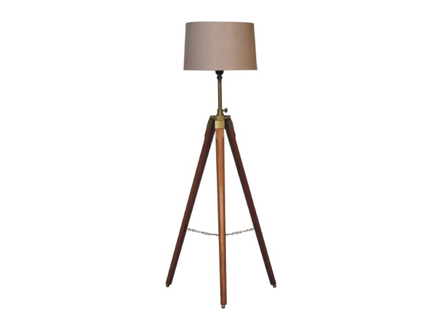 This contemporary floor lamp features a fixed wooden tripod design base in teak wood as well as a neutral lampshade which will provide stability as well as a natural colourway and soft contrast. It is bound to inject both a modern and rustic touch to your home décor.