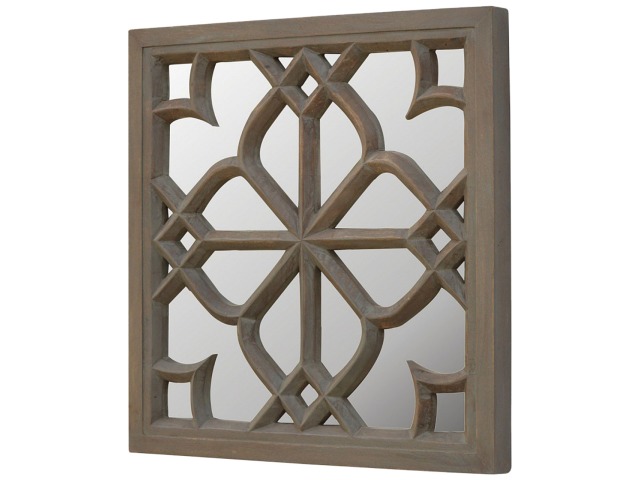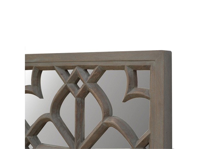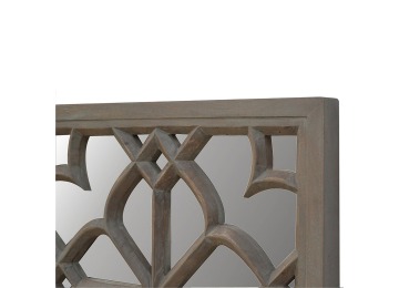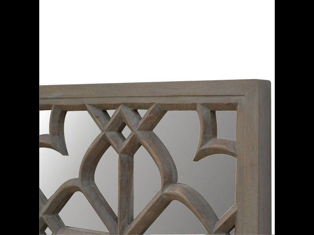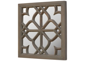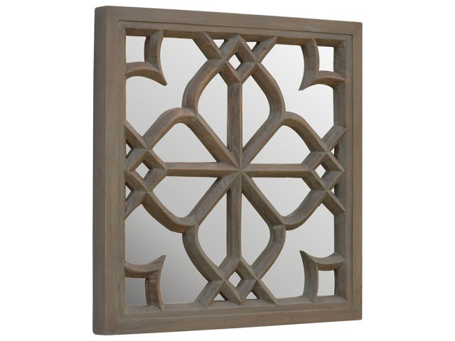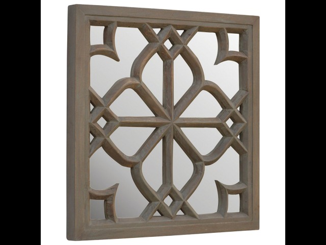 This is a large square shaped mirror frame which has been constructed from 100% mango wood and has a smooth sun bleached finish. Other features include a wooden floral pattern over the mirror, you can add this beautiful mirror frame to any part of your home.