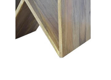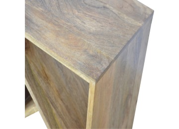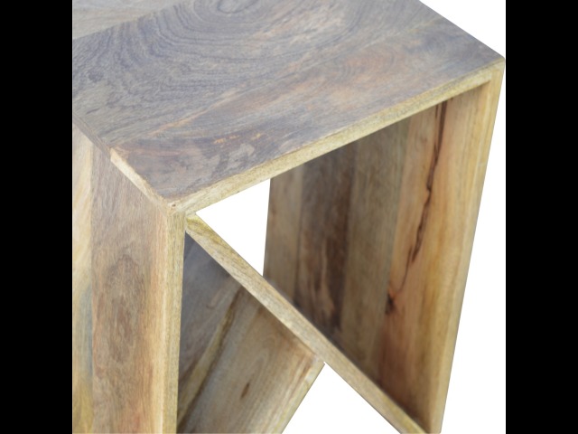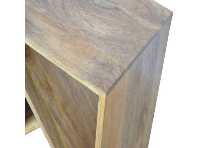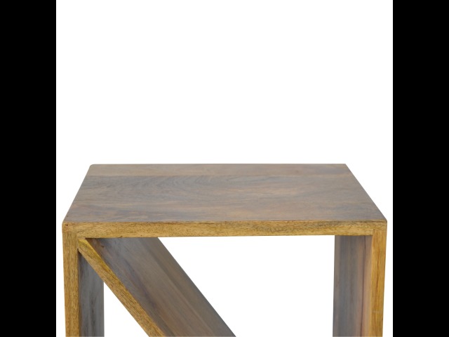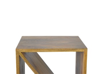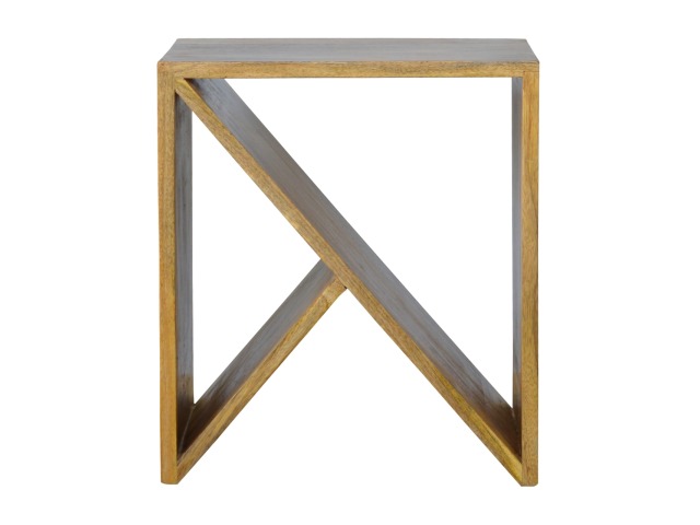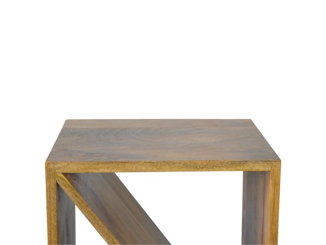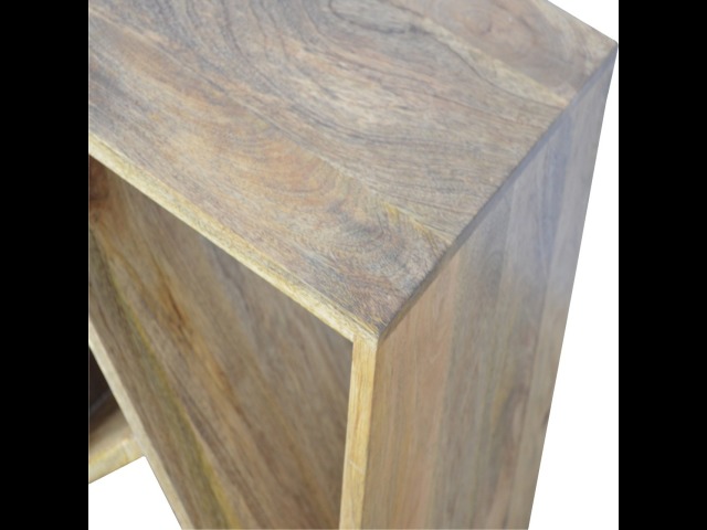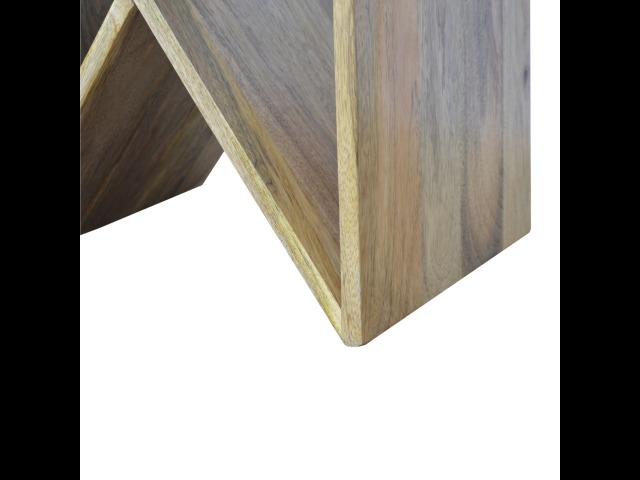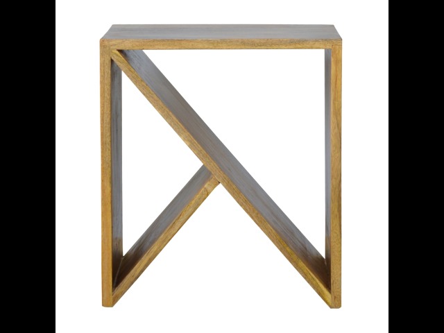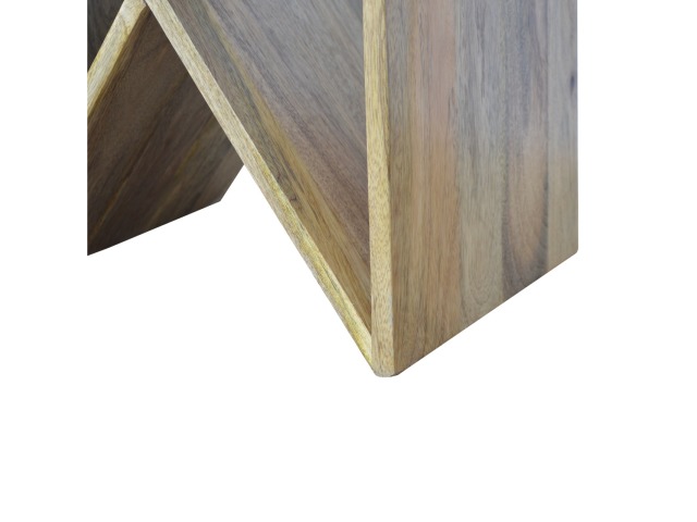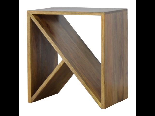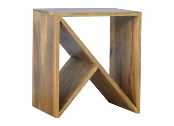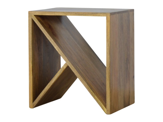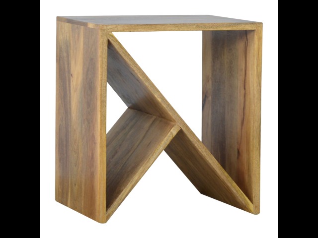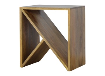 Keep your magazines and books organised all around with home with this end table. It has been constructed from 100% solid mango wood and finished in a fine oak-ish finish body. Some characteristics of this product include the unique geometric design allowing you to place any size of books and papers without any limitations. It is a very modern and versatile piece which can be used in the living room, hallway, or dining space. The perfect little addition to the home.