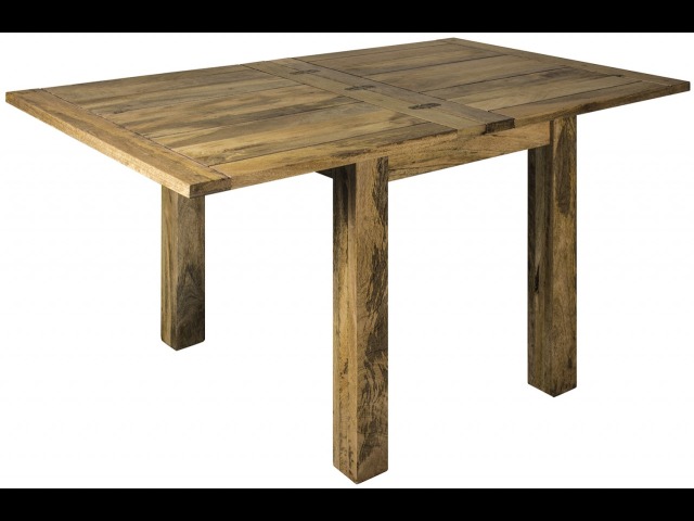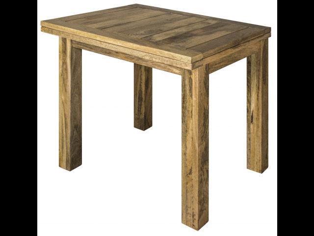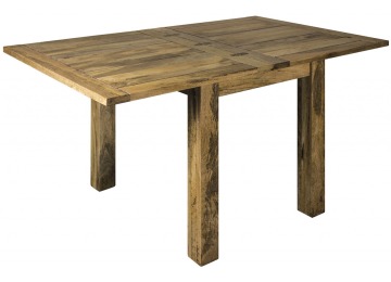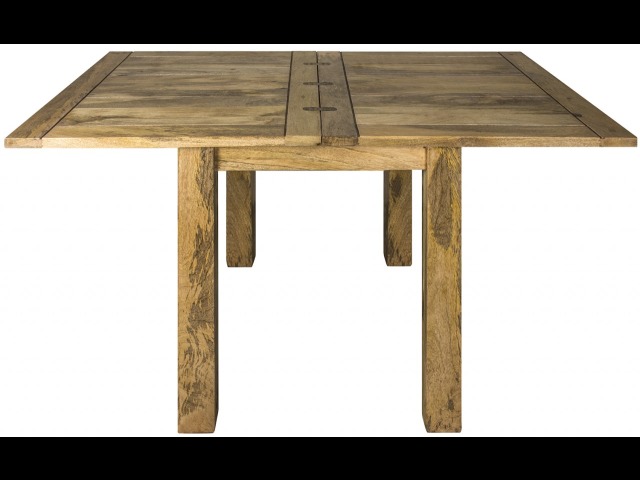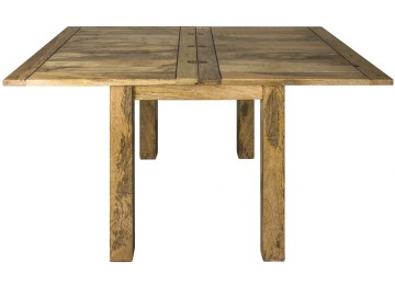 For two-person dinners. This gorgeous hand-distressed oak-ish square table, which neatly extends to seat 4 to 6 people when necessary, is ideal for kitchen dinners or smaller dining rooms. This table has a butterfly extension that stores beneath the table top and is very easy to use. It's the ideal addition to any home, with its simple functional design and accents of country charm.