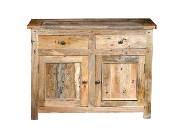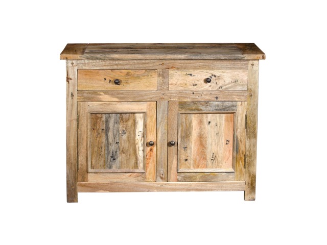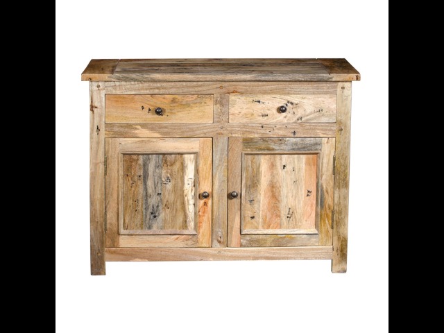 This handy little cabinet will provide simple, elegant, and country-style charm. When you need a little more storage space around the house, this cabinet will come in handy. This 100% solid mango wood unit has been made with sustainably sourced timbers in a hand-distressed oak-ish finish and includes two drawers and two cabinets with shiny knob knobs, making it ideal for rural style interiors. Product to be delivered on the pallet as a pavement/kerbside delivery. Customer needs to dispose off or use it if they wish to. For possible returns, we would require the original pallet alongside full packaging as part of returns policy.