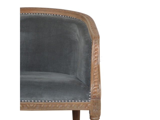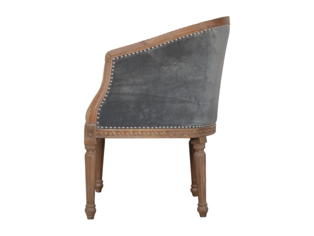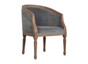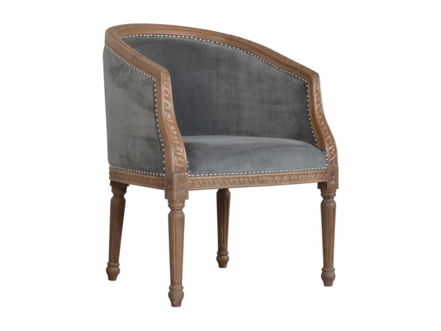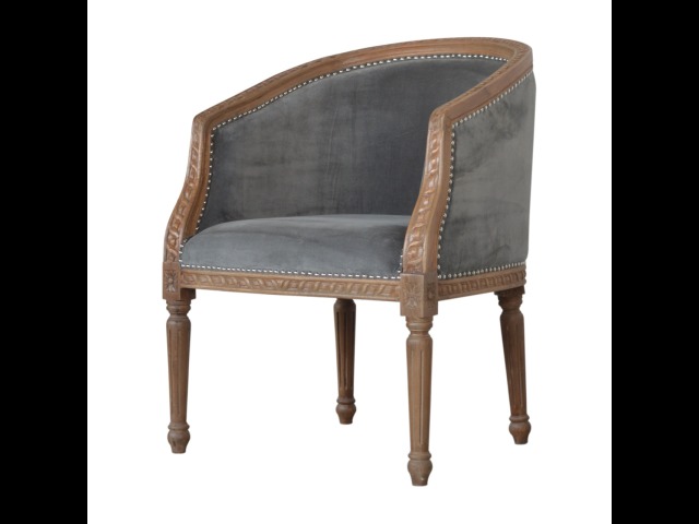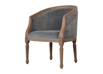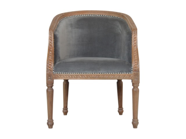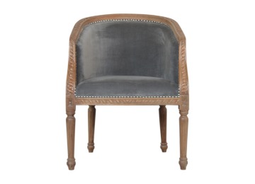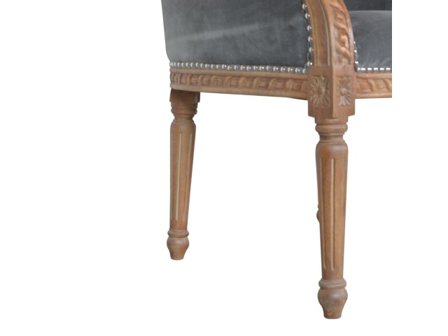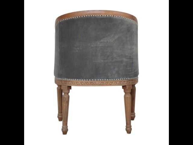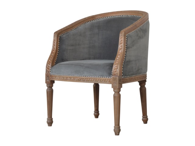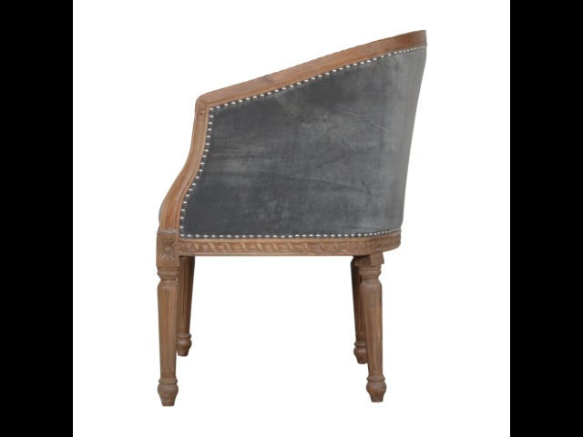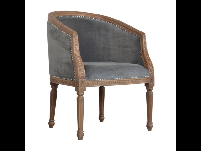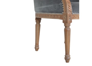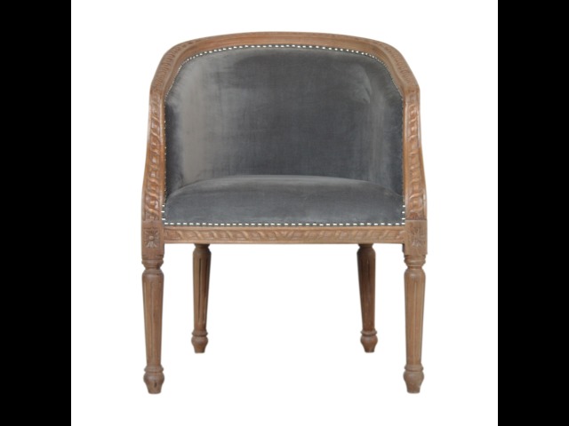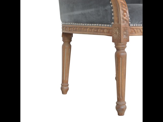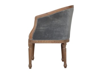 This classy occasional chair has been upholstered in a grey velvet fabric. It features a studded design and legs constructed from 100% solid mango wood providing strength and durability. This simple yet classy piece can be incorporated in different home settings and interiors.