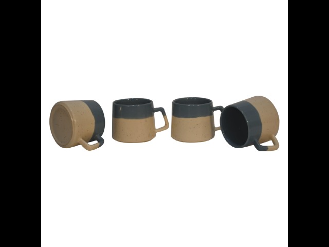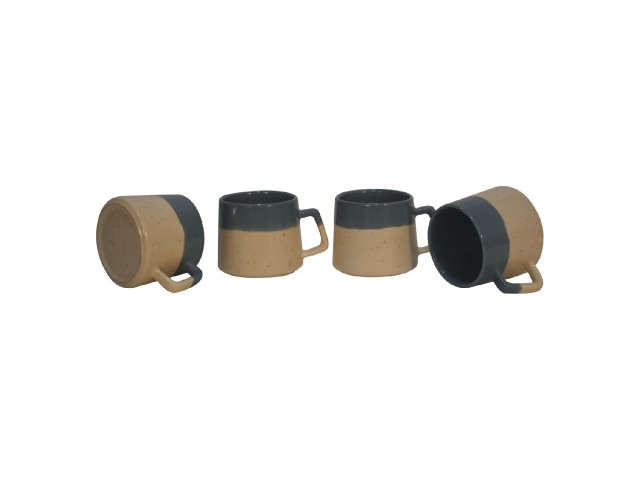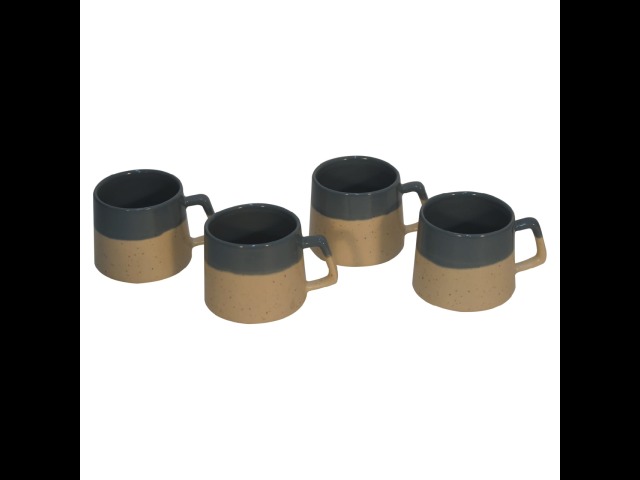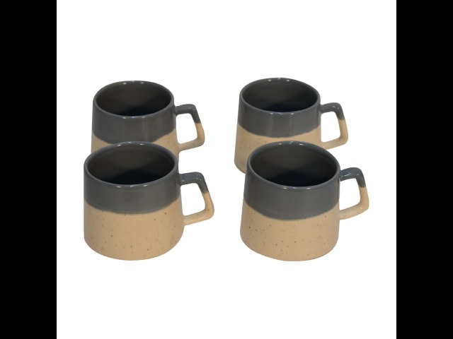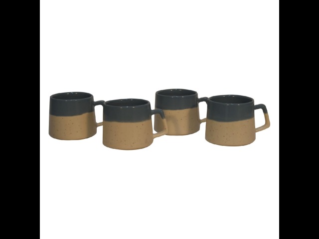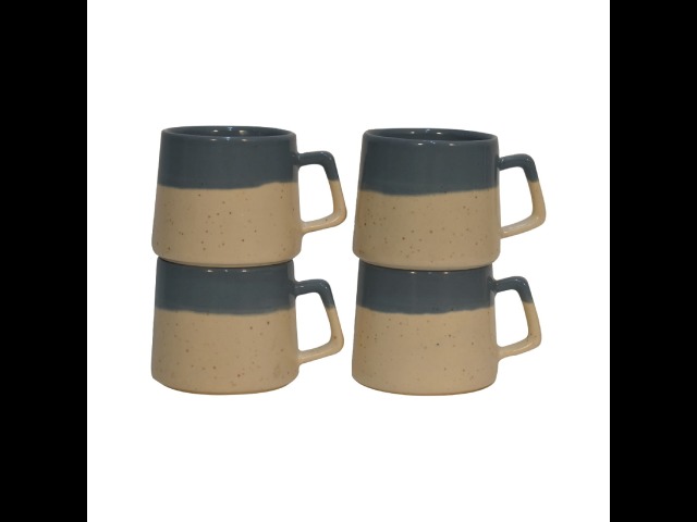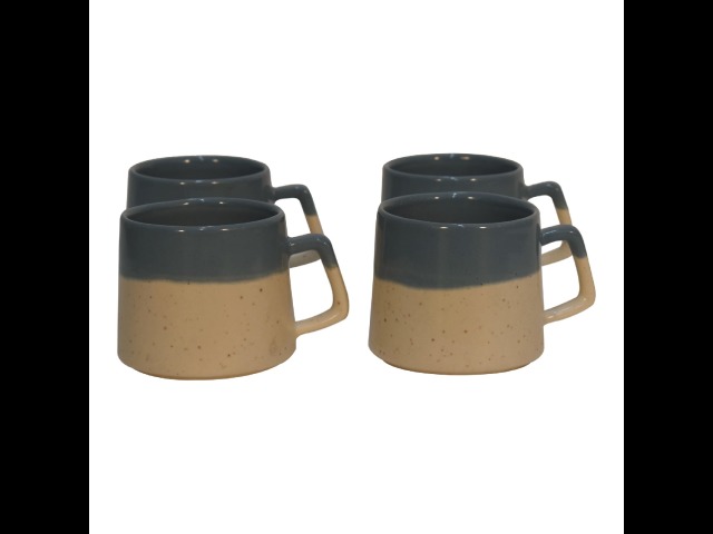Stylish and contemporary, this mug set of 4 is ready to be filled with your favourite hot drink whether it's tea or coffee. Each mug has a speckled cream hand-painted design with a dark grey dipped top, perfect to add to your kitchen collection.