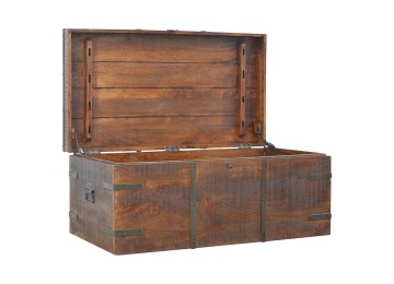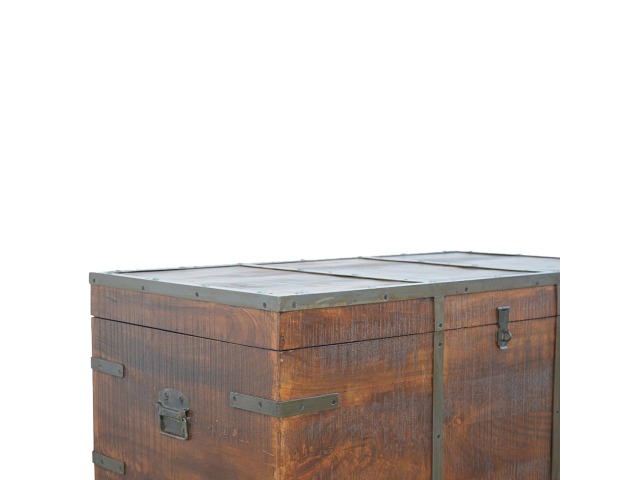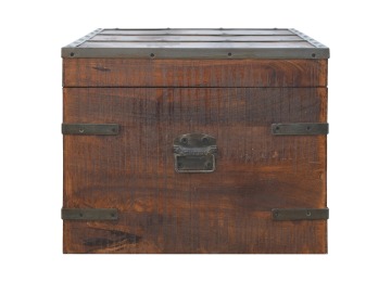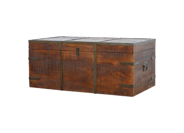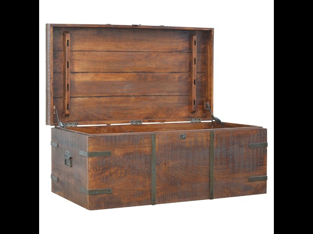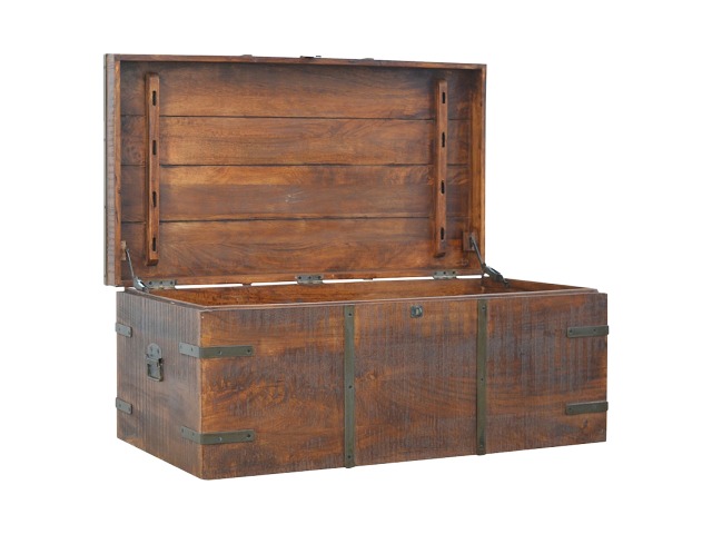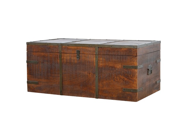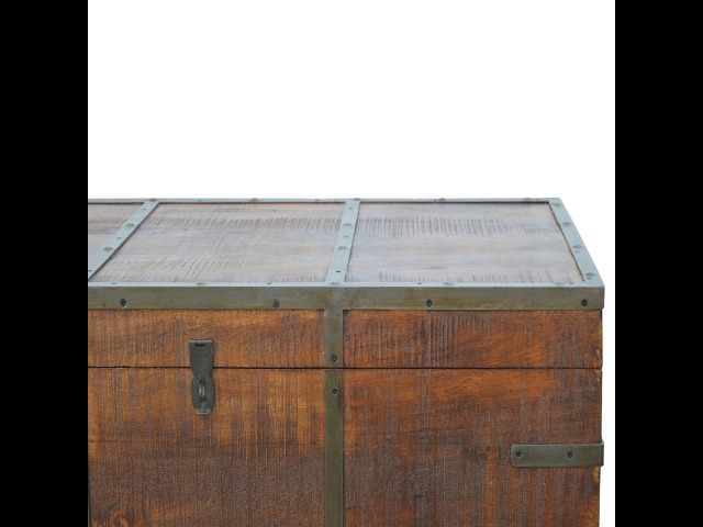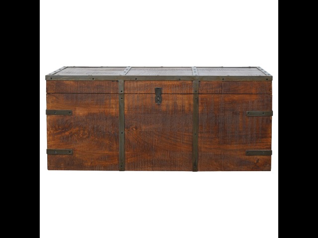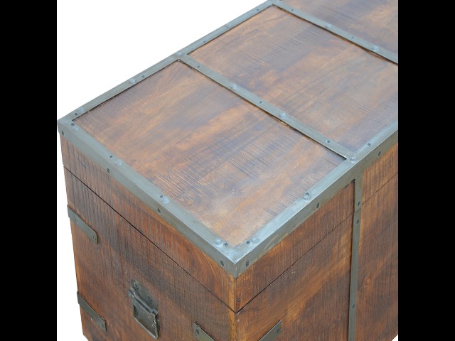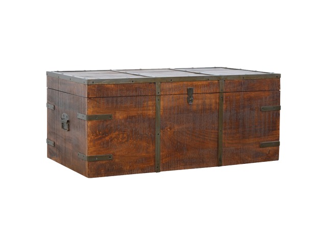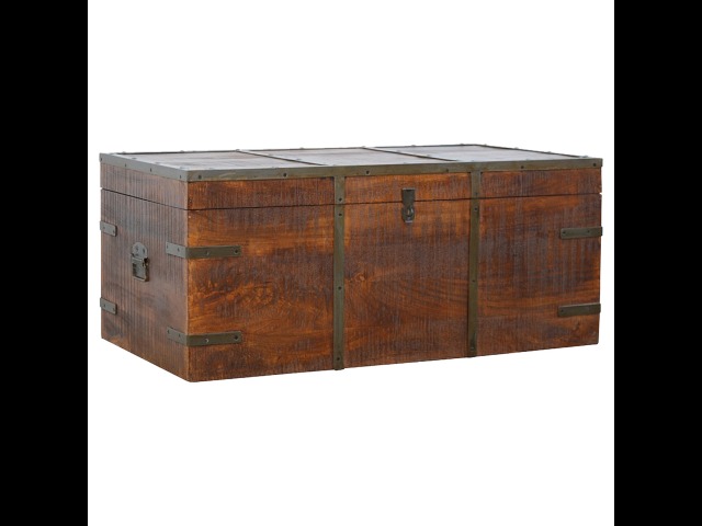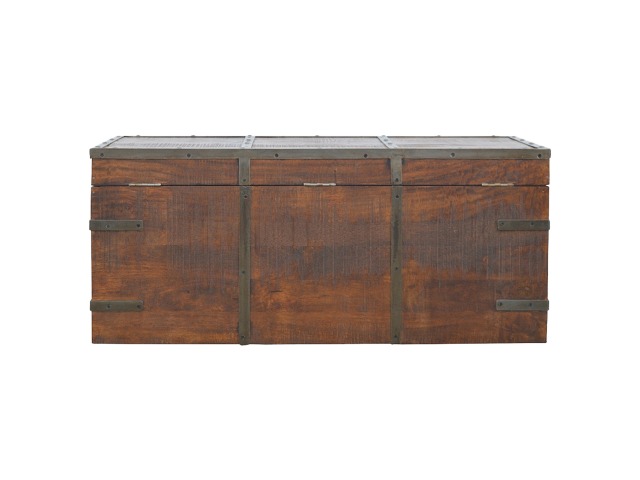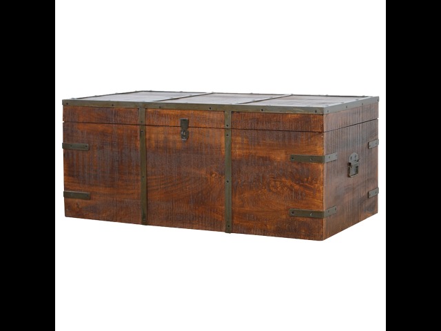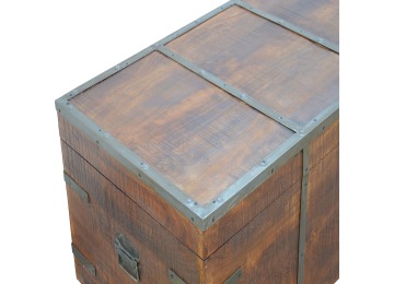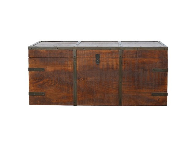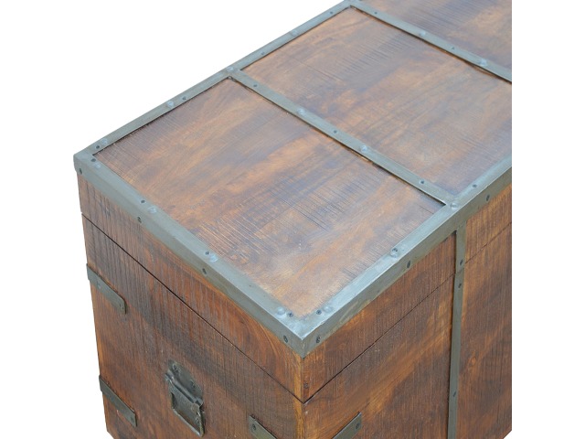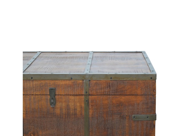 This storage box has been constructed from 100% solid mango wood in an oak-ish finish with an iron frame and iron work for durability and added effect. It features a latch on the front which gives it extra security and allows your belogings to be safely stored away. It is the perfect addition for a hallway/corridor or living room.