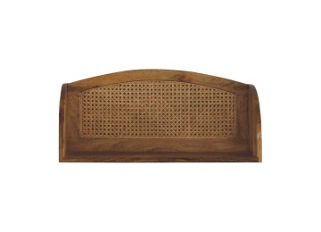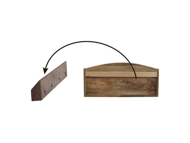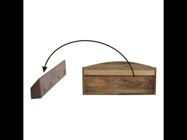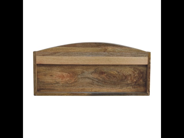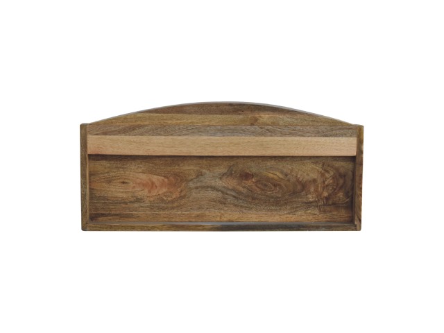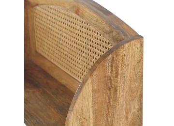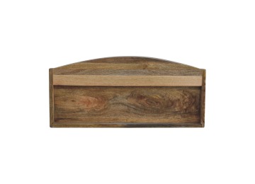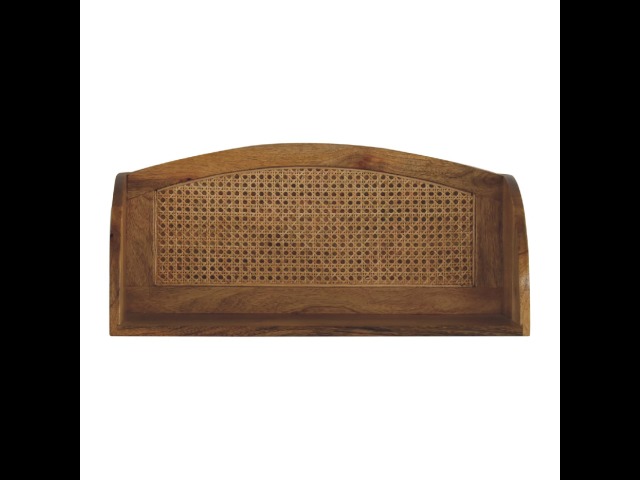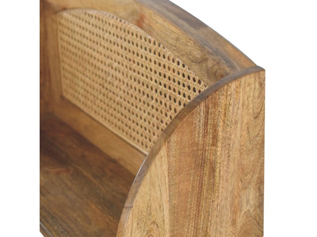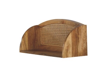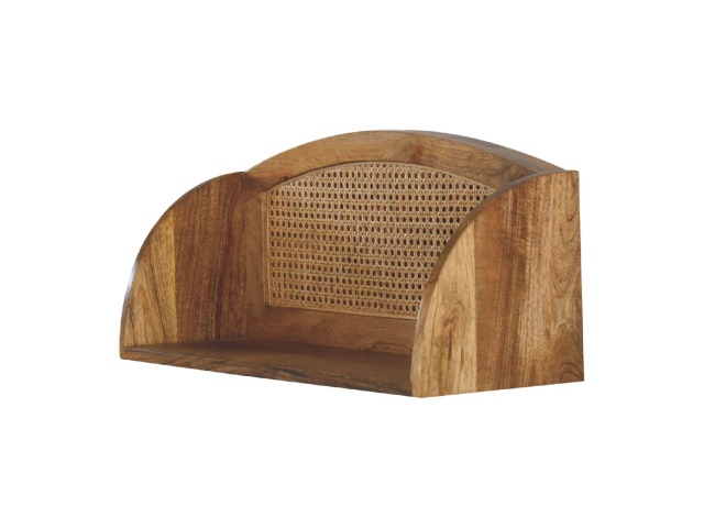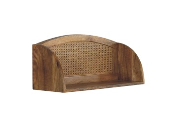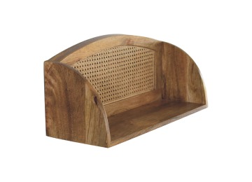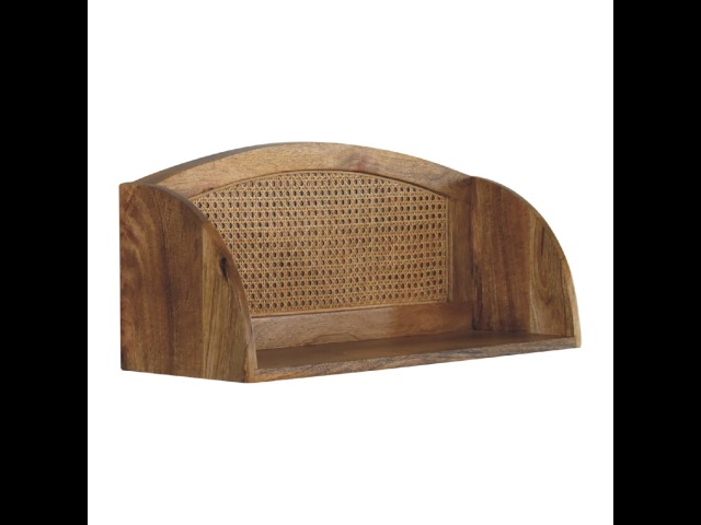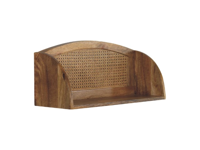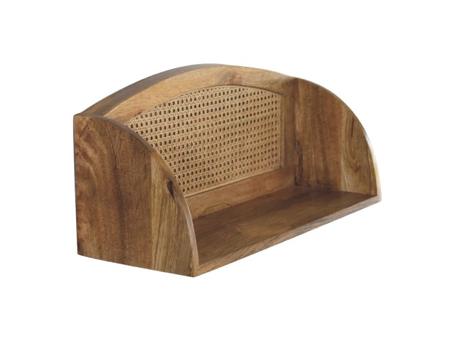 This stylish Rattan Wall Mounted Shelf combines a rattan back with a smooth oak-ish finish body. Constructed from 100% solid mango wood, it is a handy piece for displaying ornaments, plants or candles in the hallway or the bedroom.