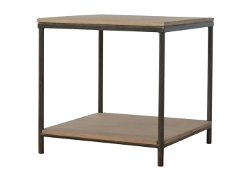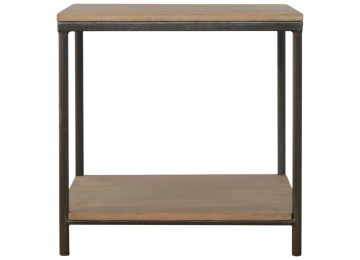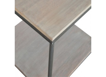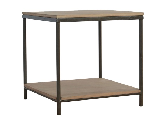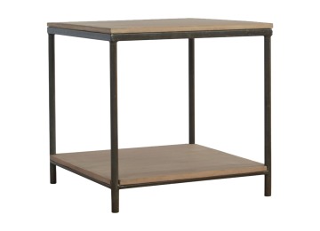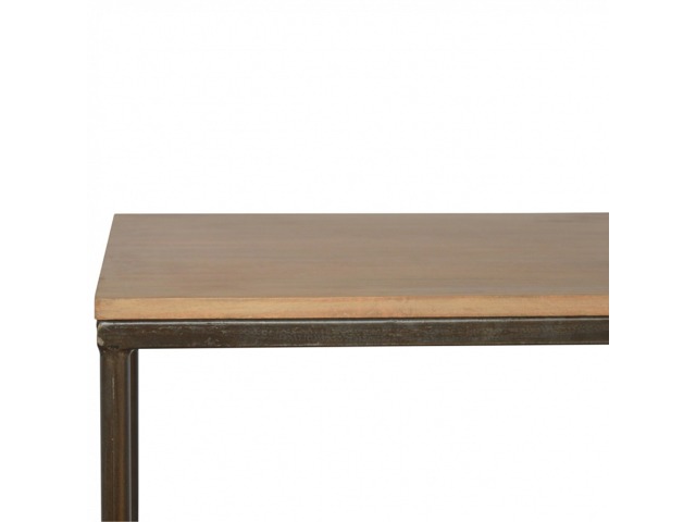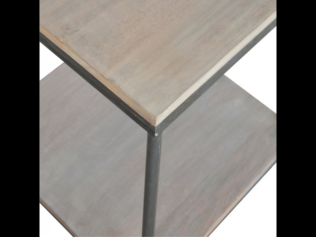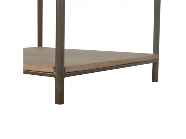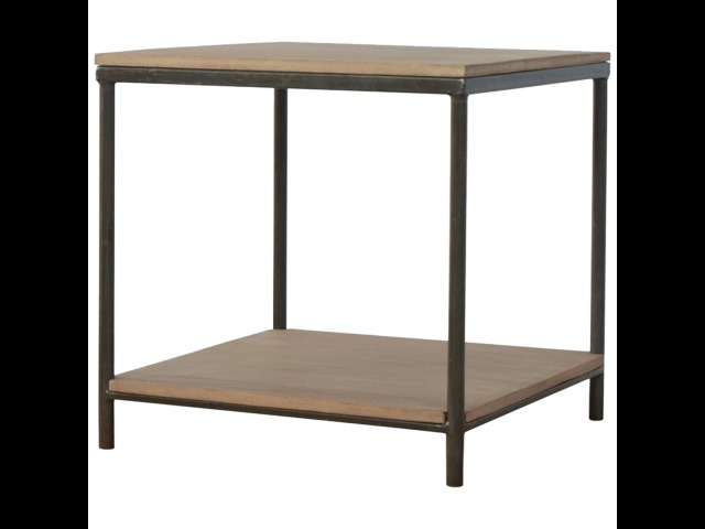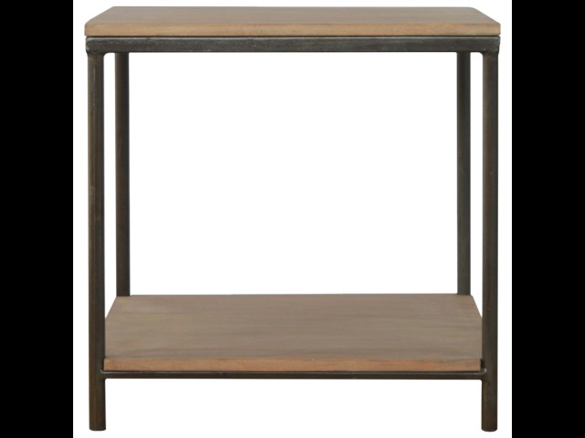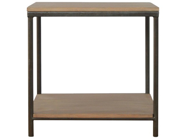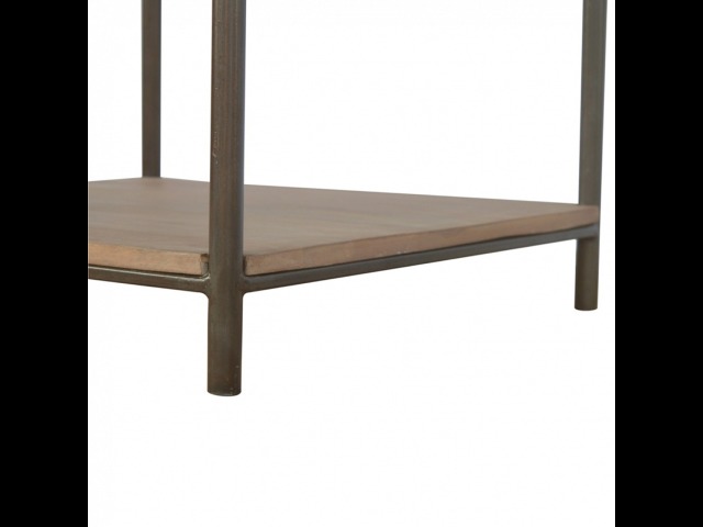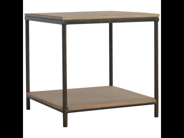 This is our metal base 4 round leg side table with a wooden top and bottom, constructed from 100% solid mango wood, a perfect simplistic addition to any home. This hand crafted piece of furniture is perfect for either a side table or a coffee table.