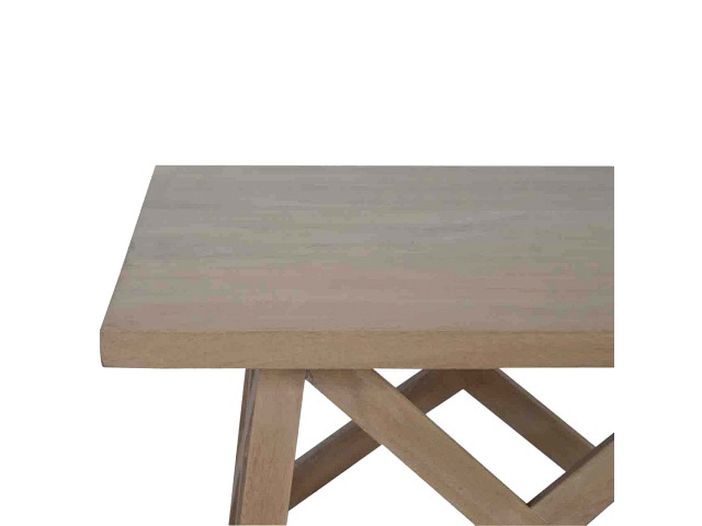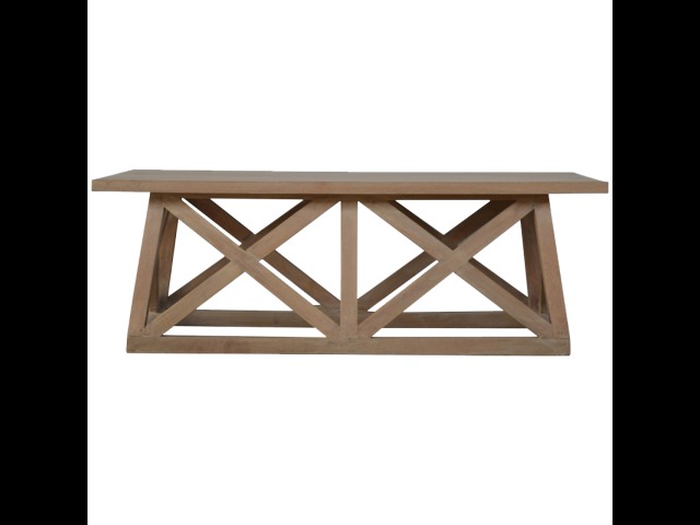 This beautiful tristle coffee table is constructed from 100% solid mango wood and has a smooth sunbleached finish. A lolvely and practical addition to your home.