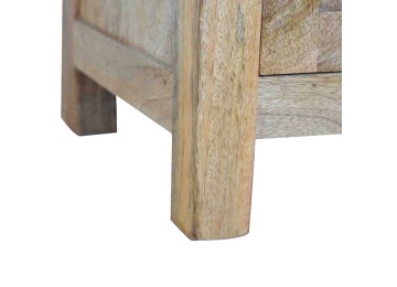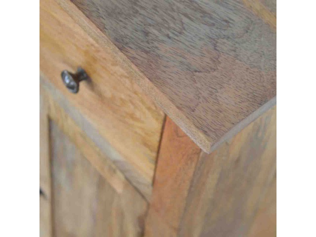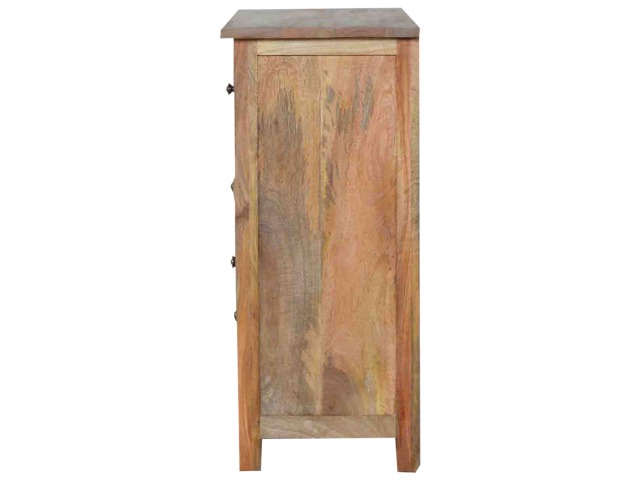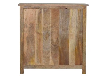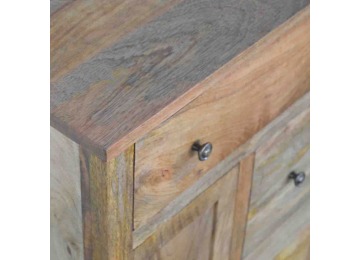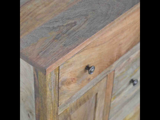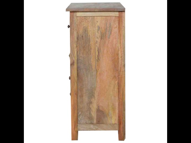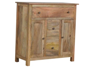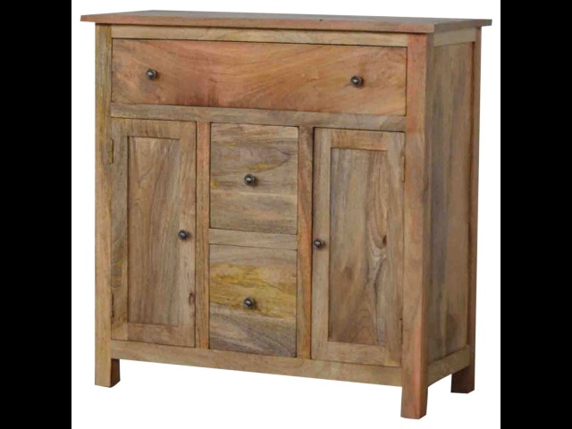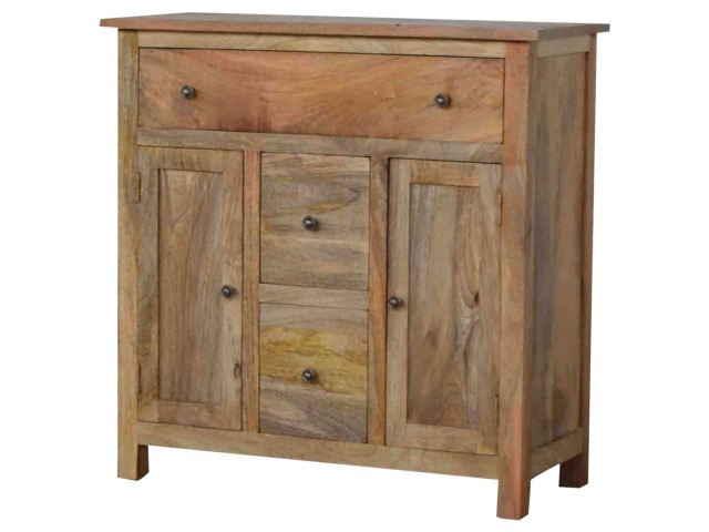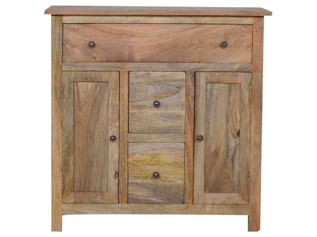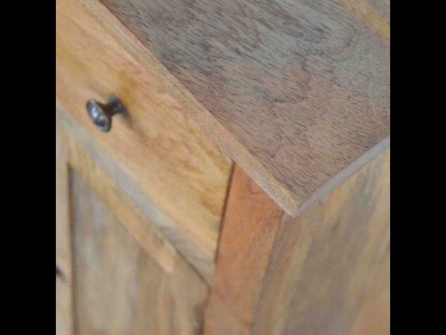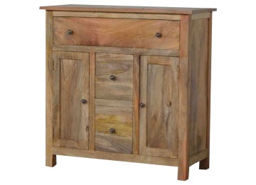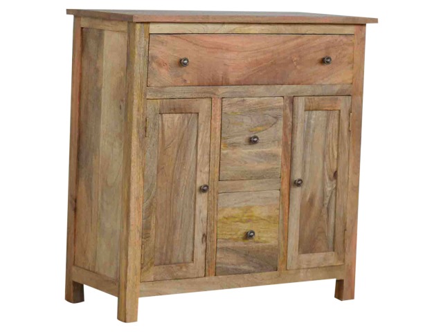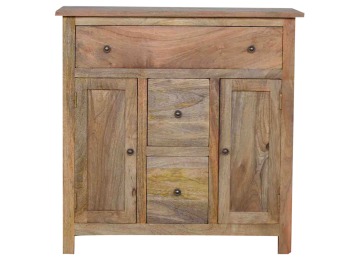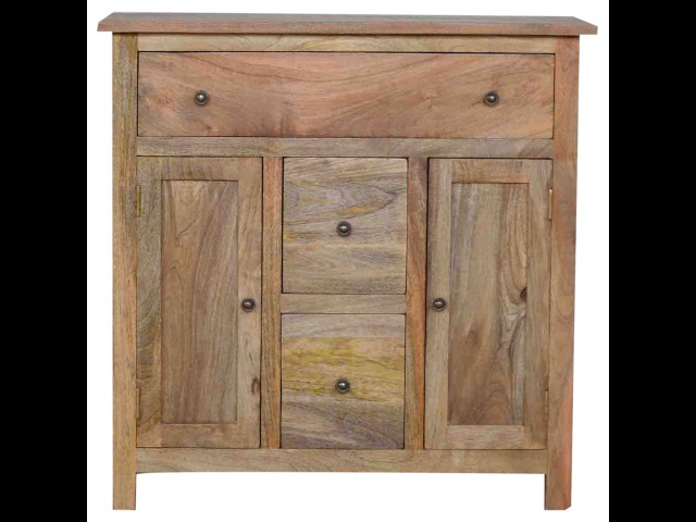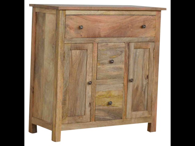 This charming sideboard has been constructed from 100% solid mango wood and features clean lines giving this range a timeless country look whilst maintaining a traditional charm to create the perfect addition to your home. This product offers excellent storage space in the form of drawers and shelves and features an oak-ish finish with shiny knob handles. Every piece of furniture is individually handcrafted and includes swing care tickets explaining the cautions and aftercare instructions.