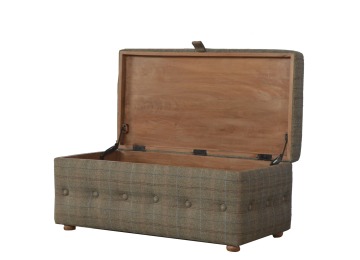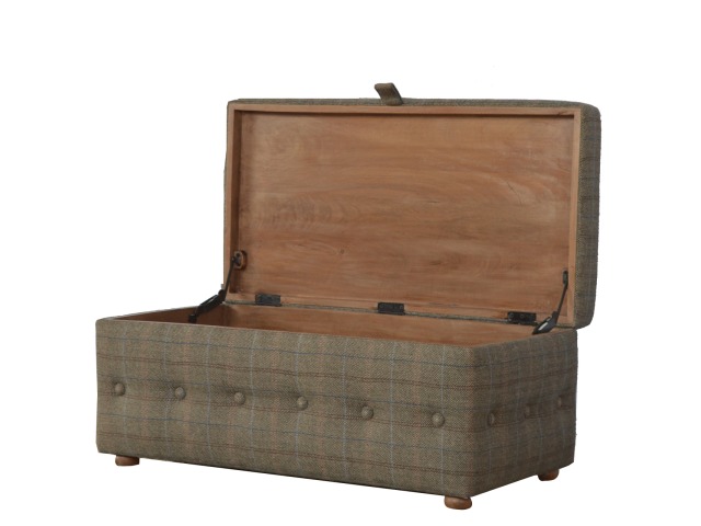 This is one of the handiest pieces of furniture you can have in a bedroom or living area. It's an elegant storage box but you can use it as a bench, a side table, a footstool. Whatever you fancy. It offers useful storage for bedroom clutter such as bed sheets, duvets, pillows, linen and towels. This blanket box is fully upholstered in tweed and is constructed from 100% solid mango wood. Other features include four bun feet with a natural bleached finish.
