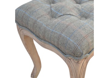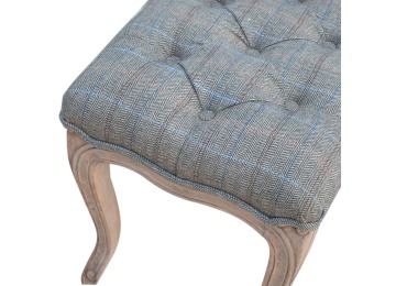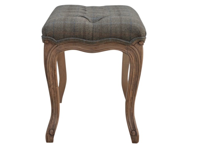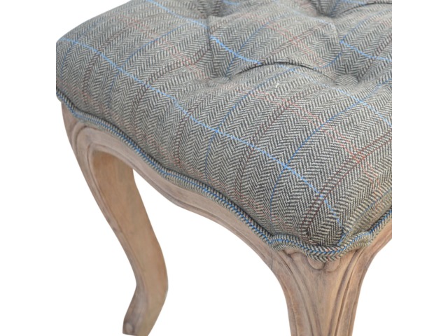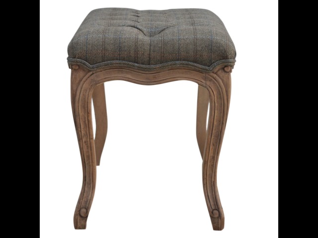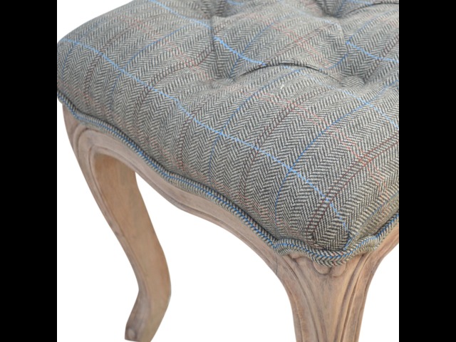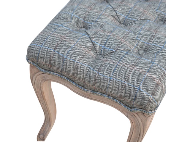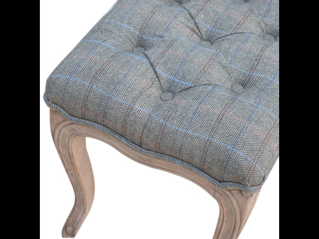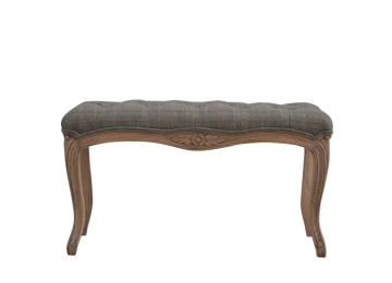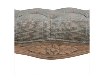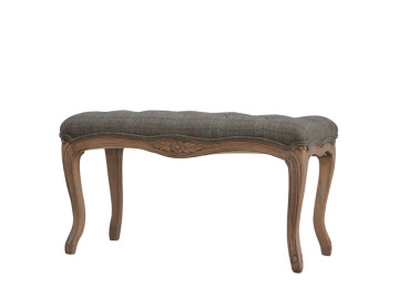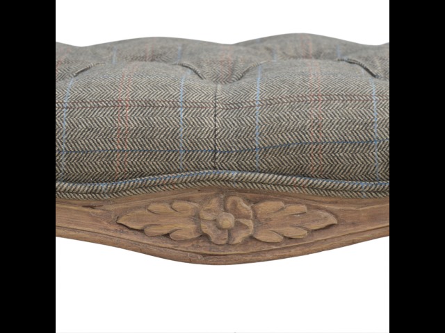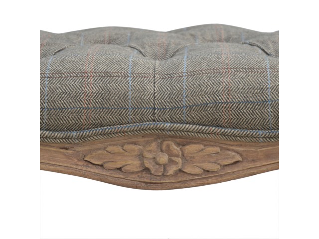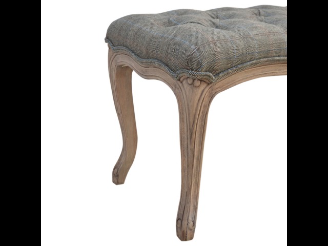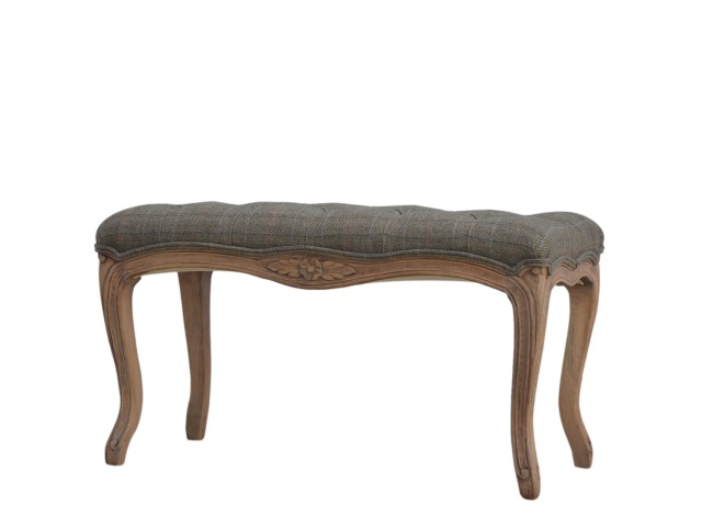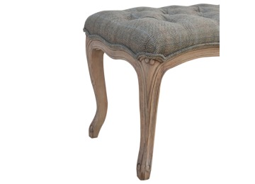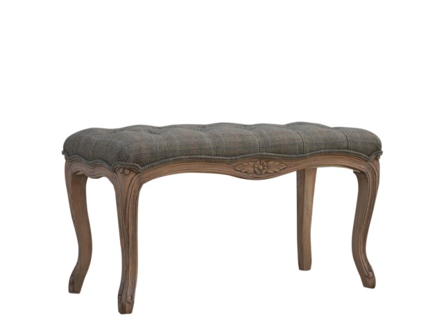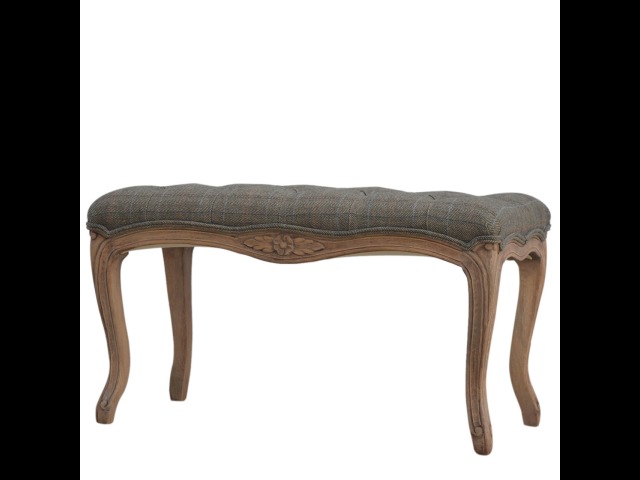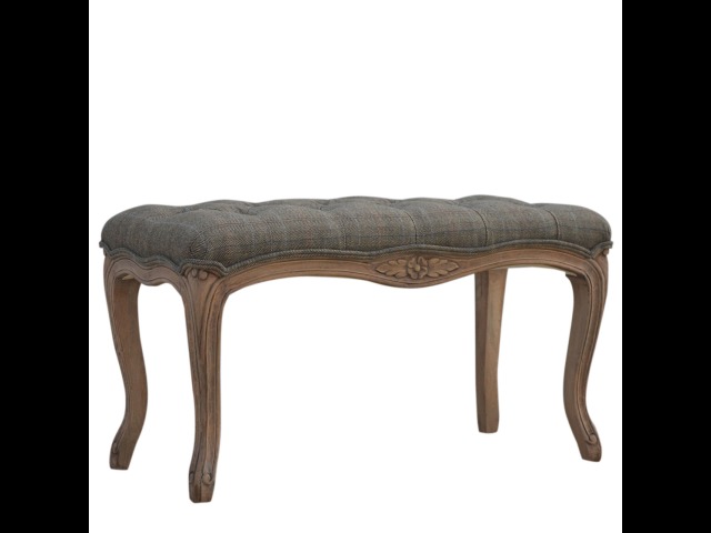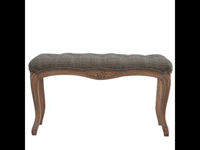 This hand carved bedroom bench has has been exquisitely upholstered in 100% multi tweed and constructed in 100% solid mango wood which has a fine sun bleached finish. Carved from the finest timbers and boasting both intricate carved details, antique brass studs and 4 classical French style cabriole legs, this piece encompasses traditional elegance and can bring a vintage fashion into your bedroom that subtly blends with any interior. You may encounter variations from batch to batch hence if you are looking to pair products under similar room settings; you can opt for a bespoke order or take an informed decision about the possible variations.