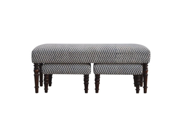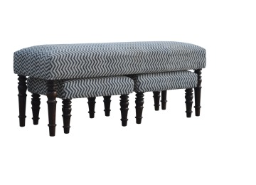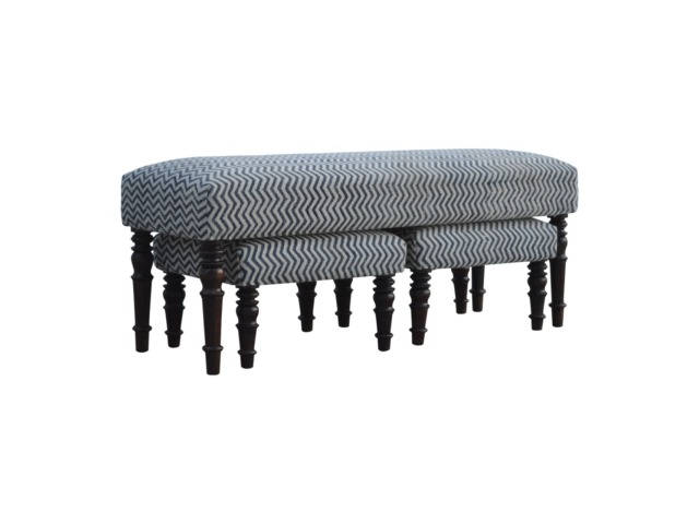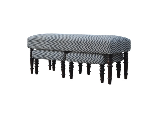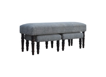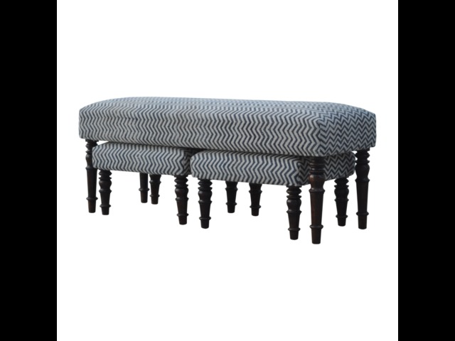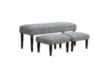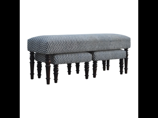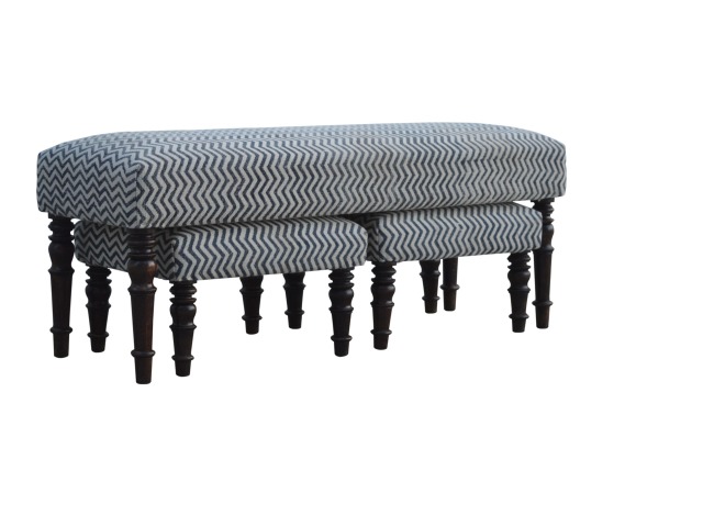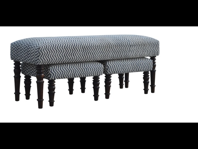 This set of 3 long benches is constructed from 100% solid mango wood and upholsterfed in natural jute dhurrie making it very comftable to sit on. Other features include hand turned feet which have a smooth light walnut finish.