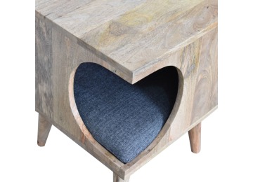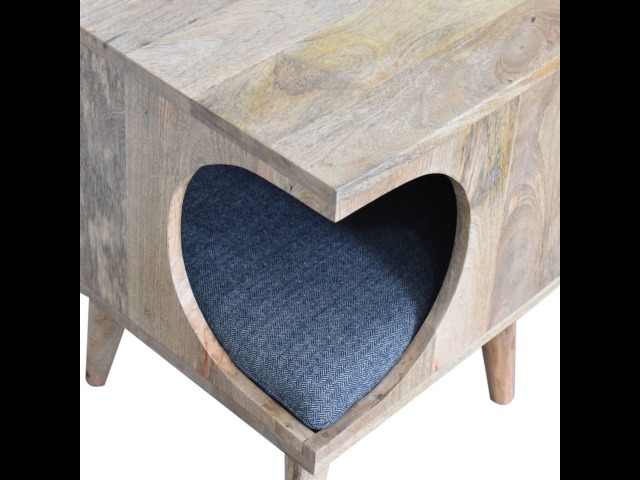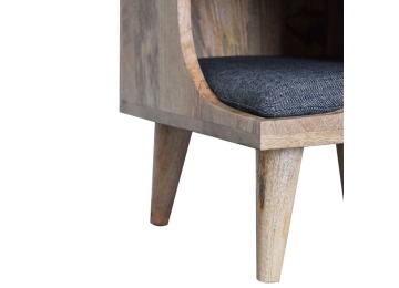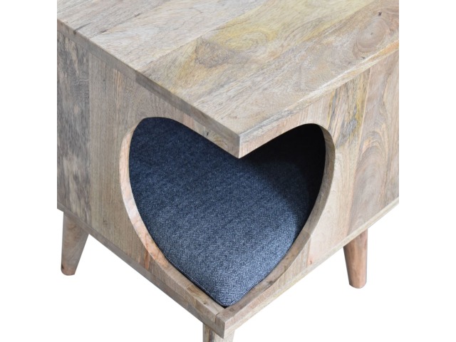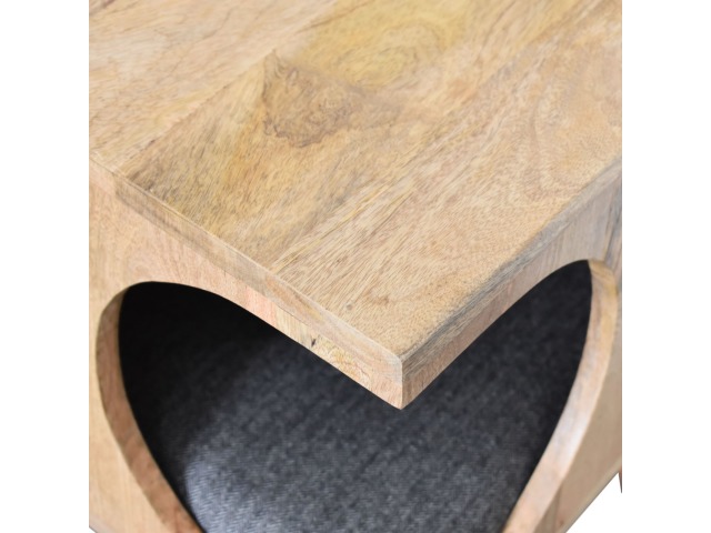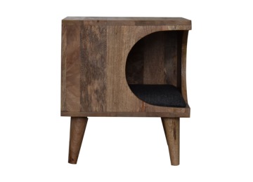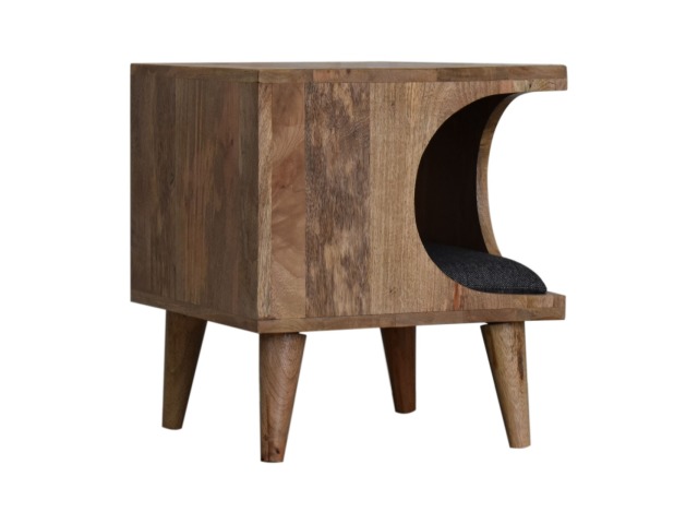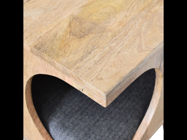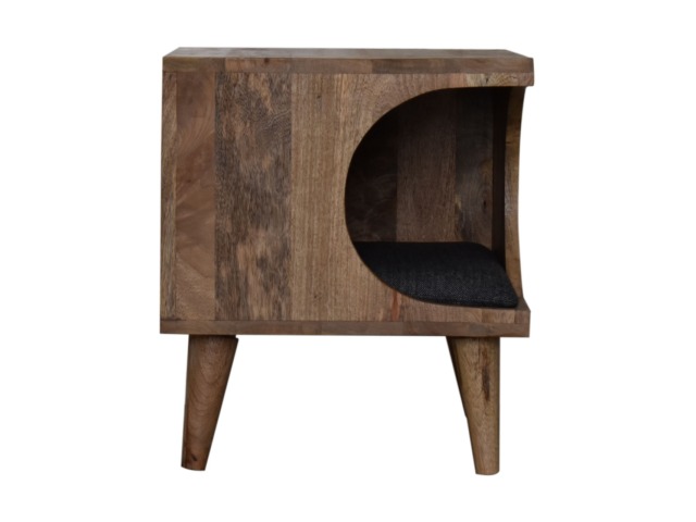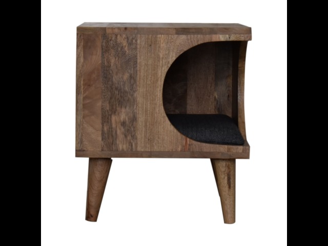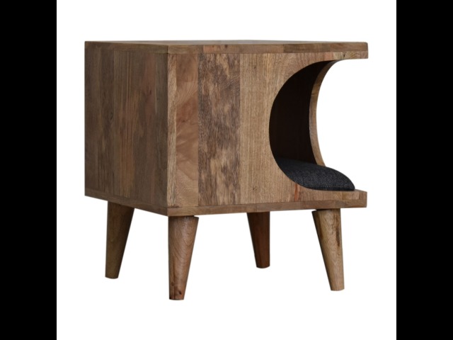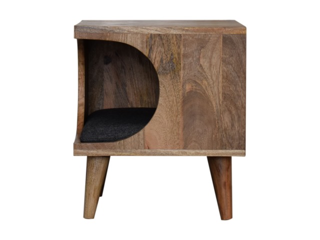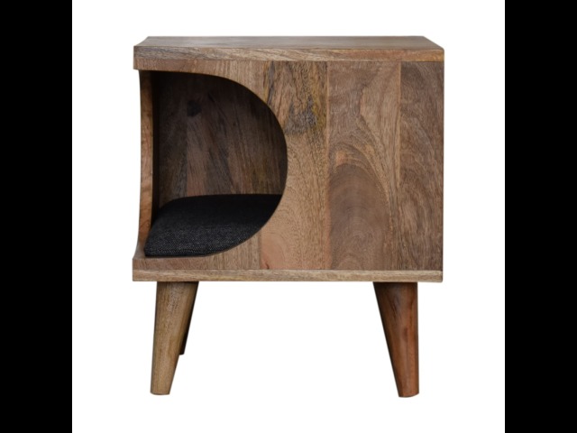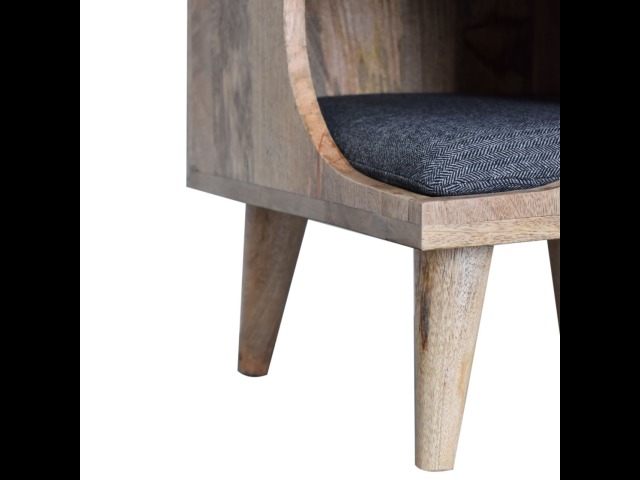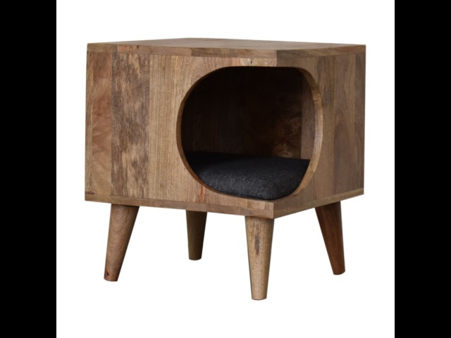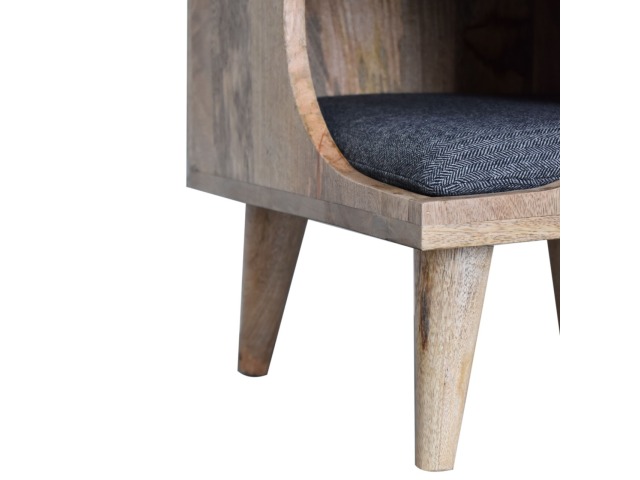 This pet bed has been constructed from 100% solid mango wood in a oak-ish finish and stands on 4 nordic-style legs, it also features a comfortable padded seat indside upholstered from black tweed that we reckon your furry friend will love. Perfect for use in the hallway or living room.