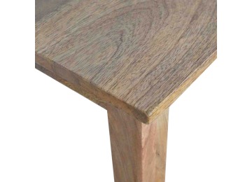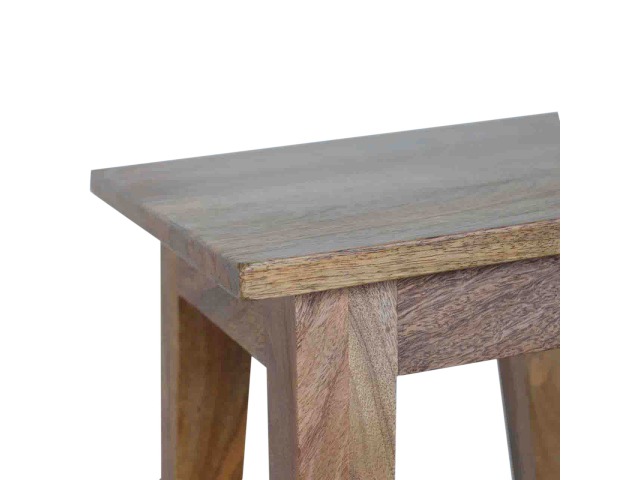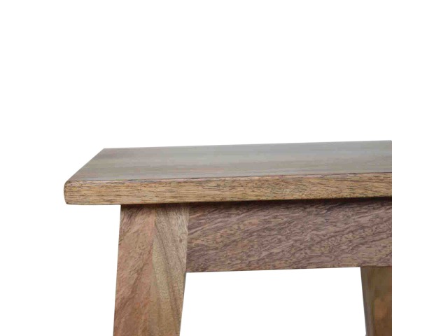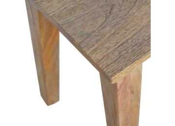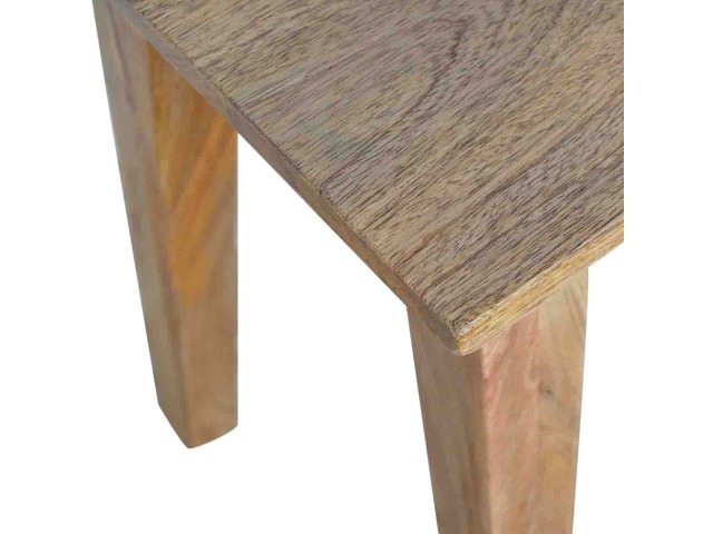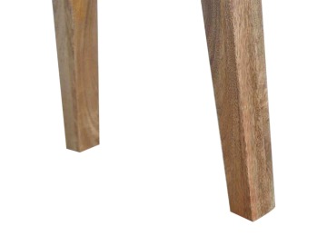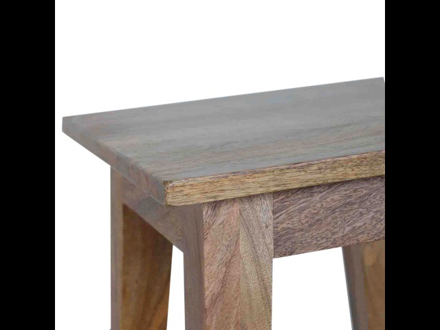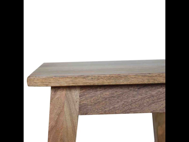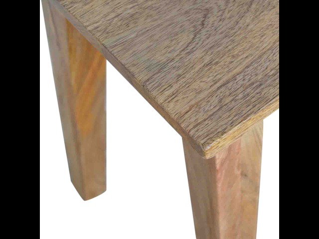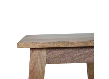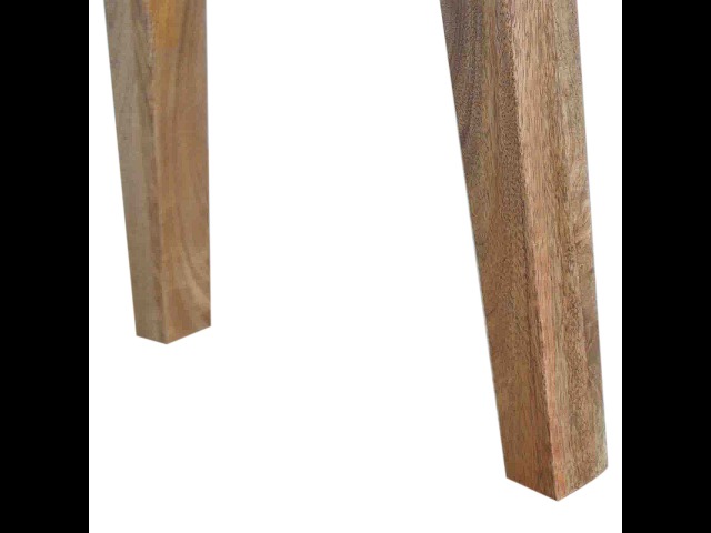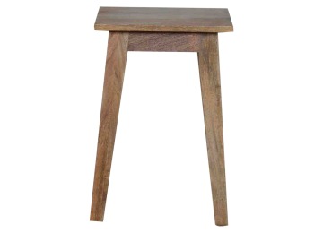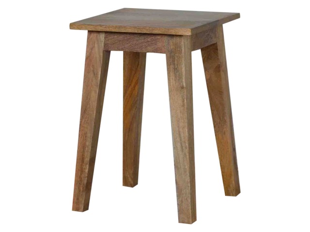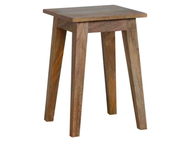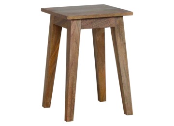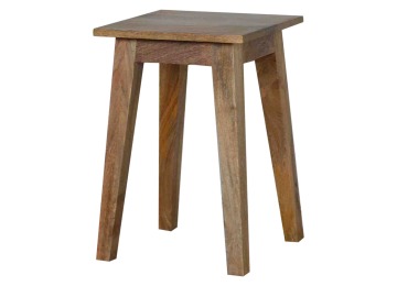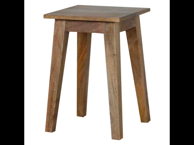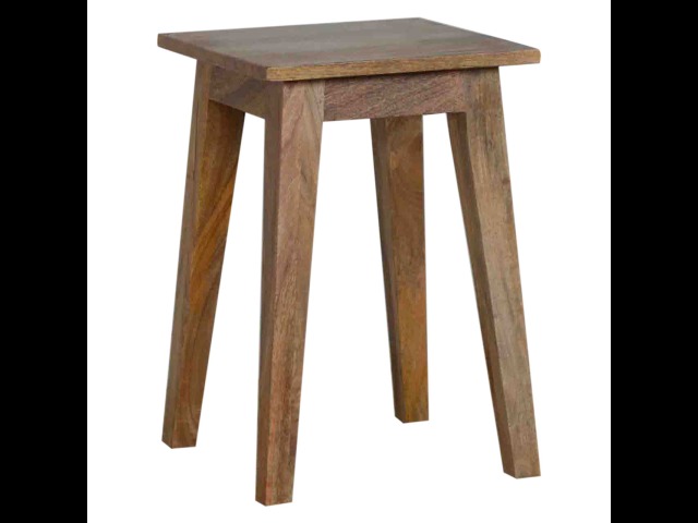 This small yet strong wooden stool is perfect for use in kitchens, bars or cafes. This stool very sturdy yet light enough to move around. It is ideal for families that want to use their kitchen as a more social dining/breakfast area. This piece of furniture has nice smooth oak-ish finish and is made of 100% solid mango wood. Every piece of furniture is individually handcrafted and includes swing care tickets explaining the cautions and aftercare instructions.