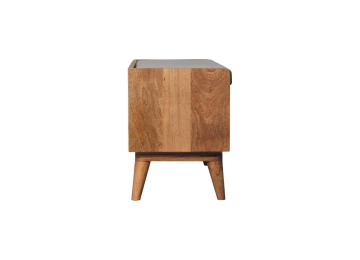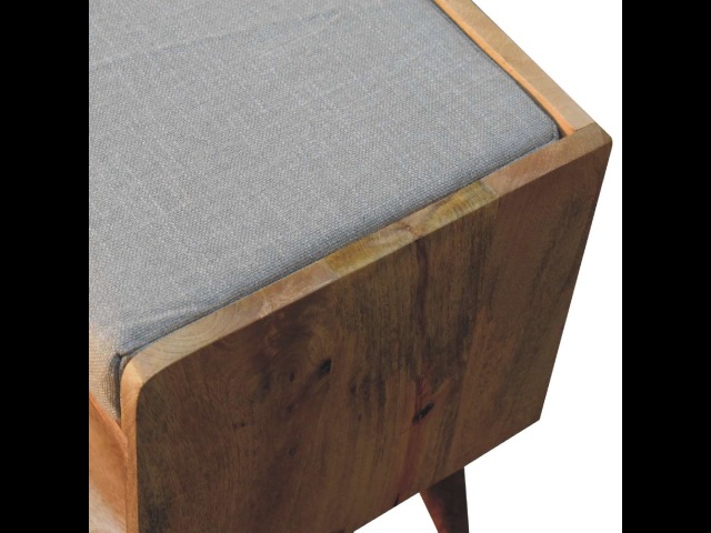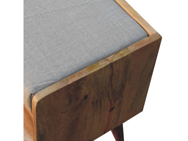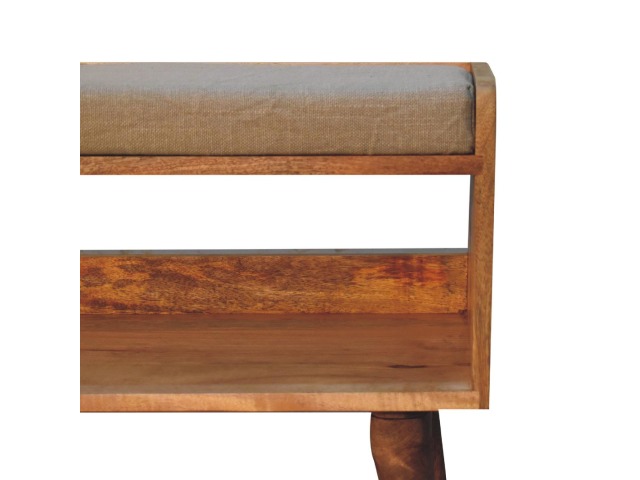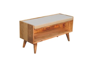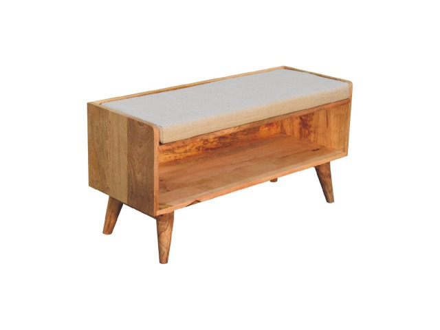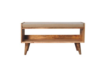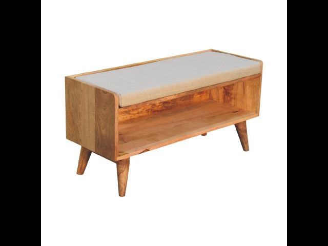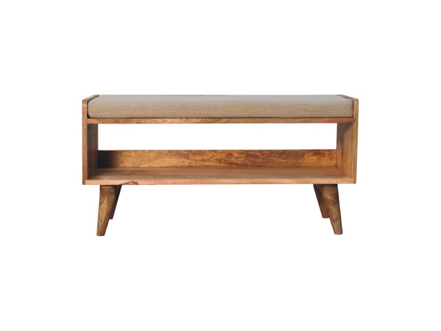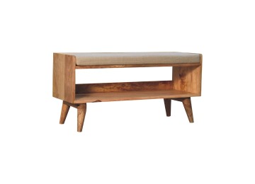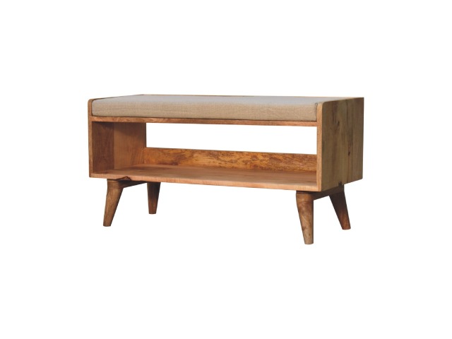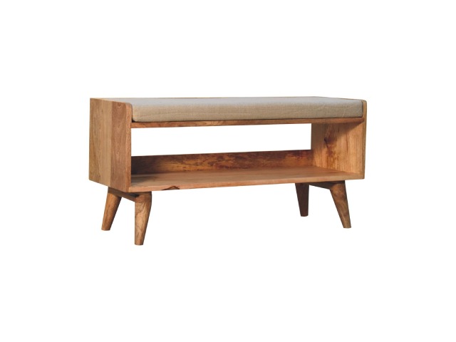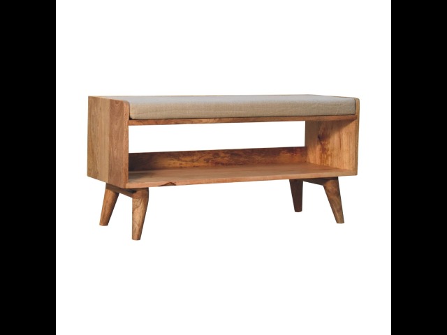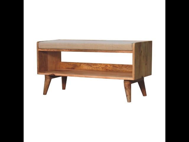 This Nordic style shoe storage bench has been beautifully made from 100% solid mango wood in a oak-ish finish. This bench provides comfortability with a seat pad upholstered from mud linen and can be used in a variety of settings such as the bedroom, hallway or living room.