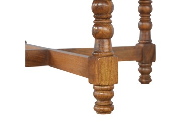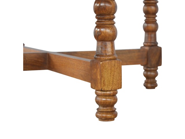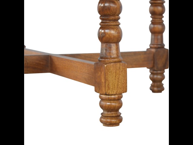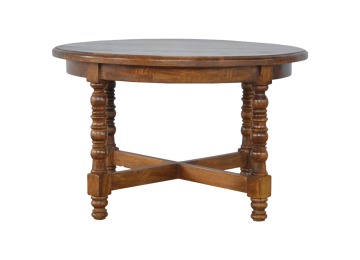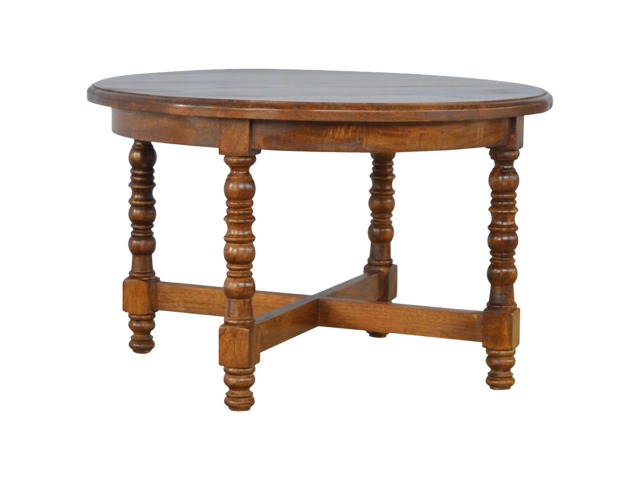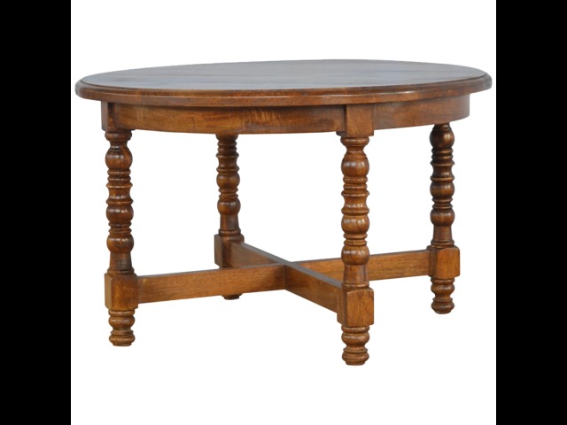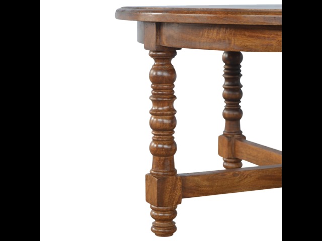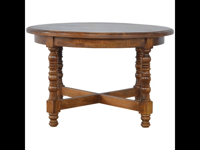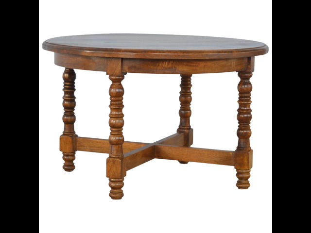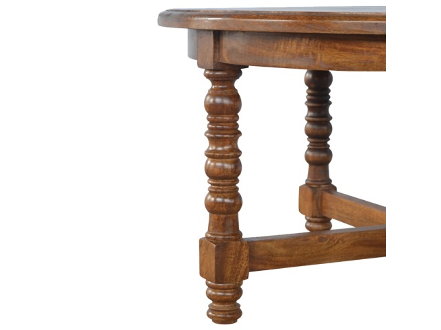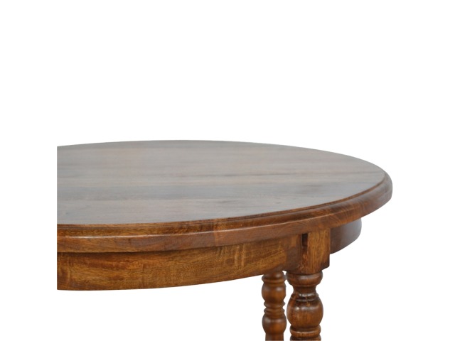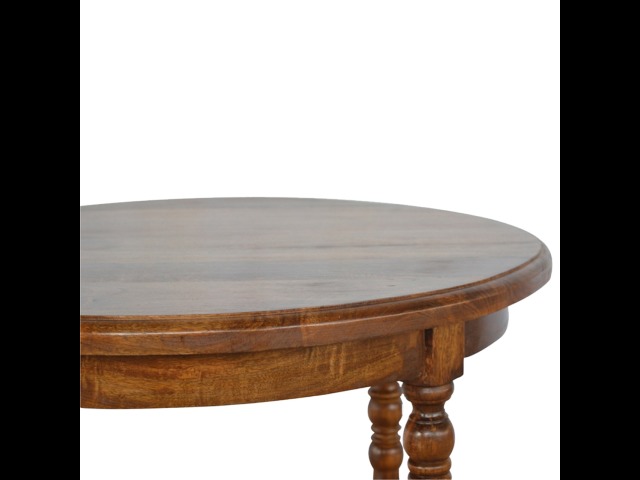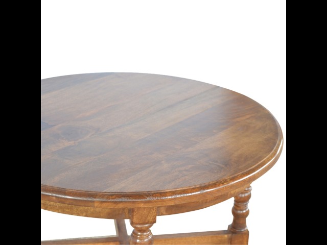 This round occasional table is constructed from 100% solid mango wood and has a smooth chestnut finish. As a centerpiece to the sitting room, this table can't be beaten with its country style and versatile design, which comes with chunky hand turned legs.