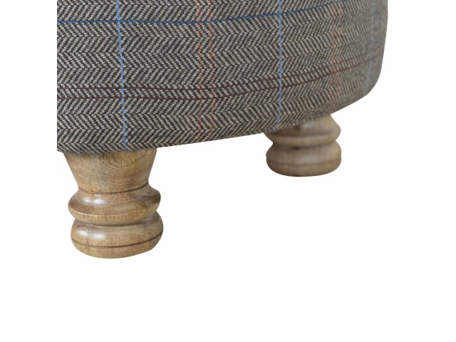 This elegant oval foot stool has been beautifully hand crafted using woollen tweed. You can enjoy using this product as a footstool, coffee table, games table or occasional seat in any setting. Other features include solid bun feet and it's sturdy look makes it the ideal occasional furniture for every home. You may encounter variations from batch to batch hence if you are looking to pair products under similar room settings; you can opt for a bespoke order or take an informed decision about the possible variations.