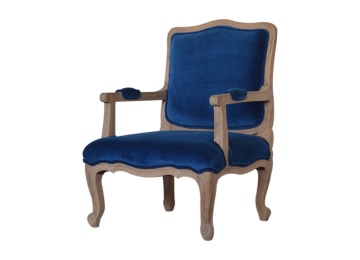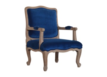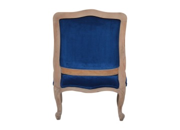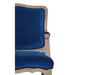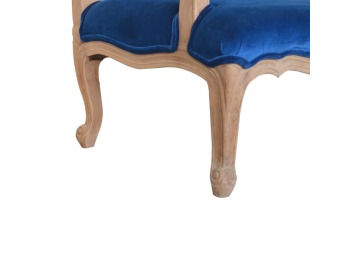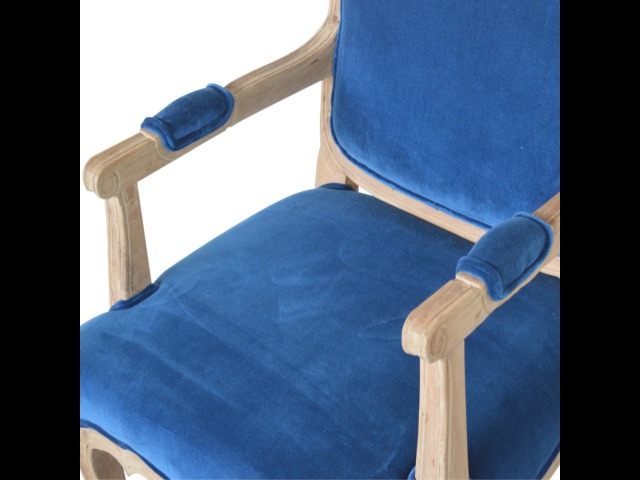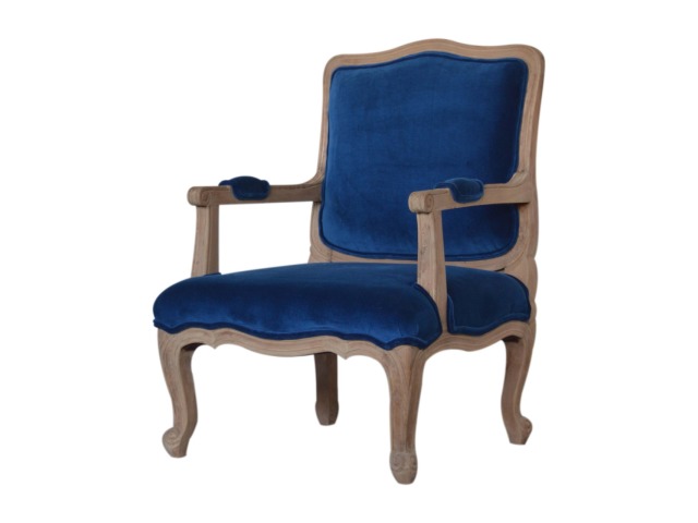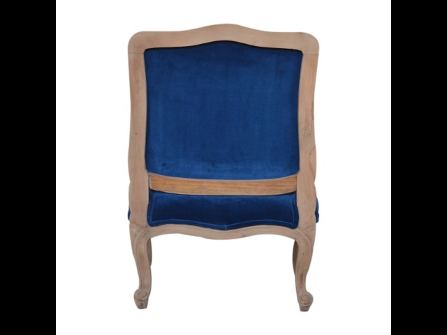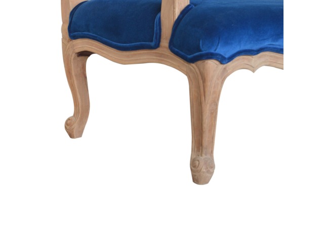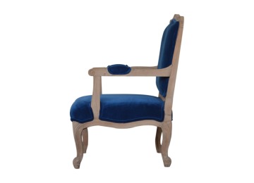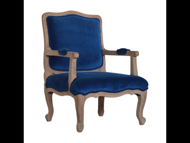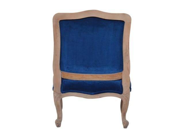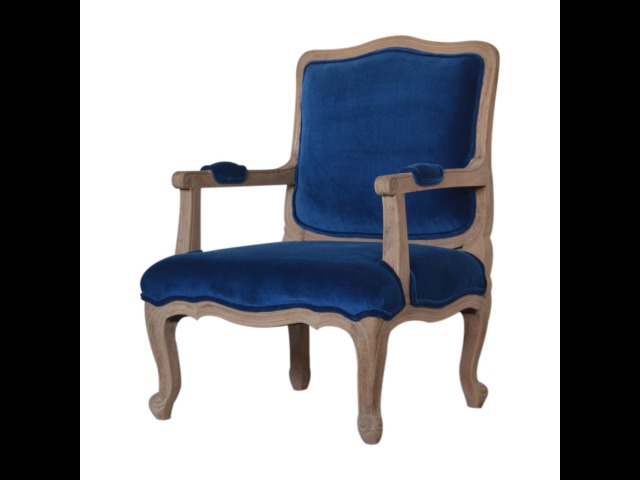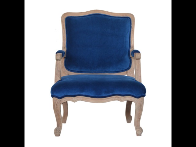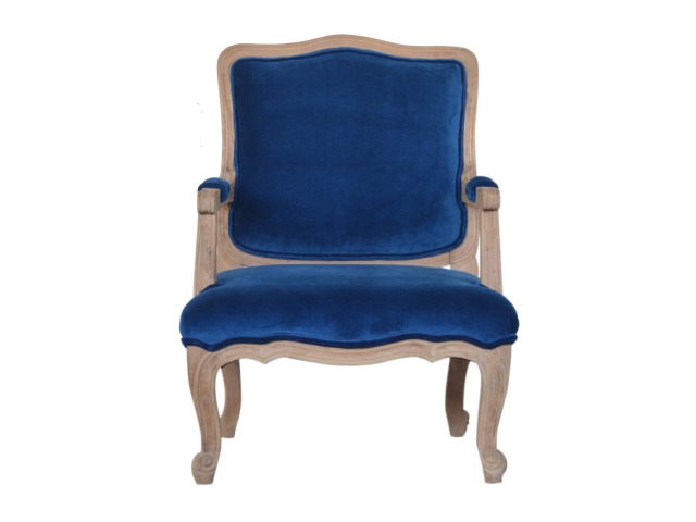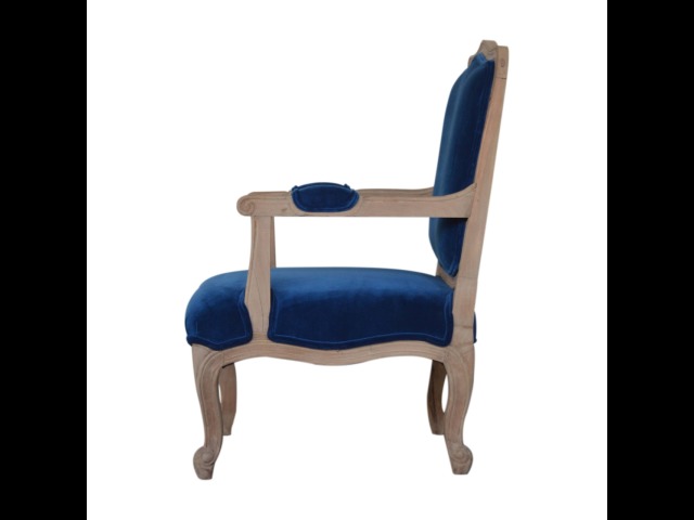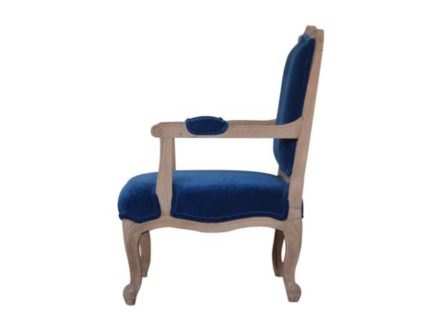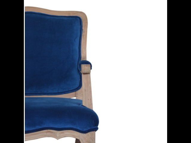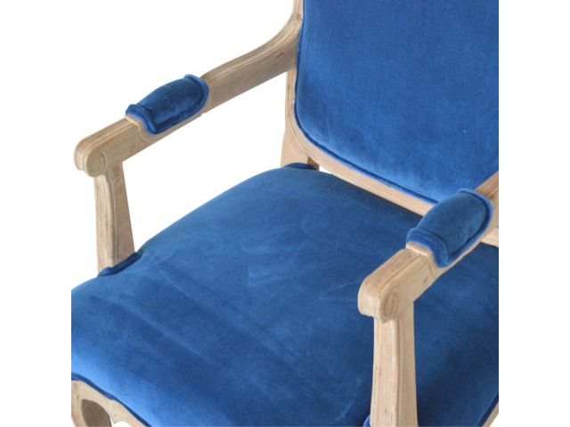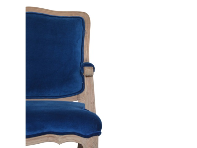 This elegant chair has been upholstered in a royal blue cotton velvet fabric. It features carved French style legs constructed from 100% solid mango wood providing strength and durability. This simple yet classy piece can be incorporated in different home settings and interiors.