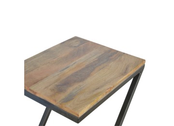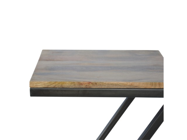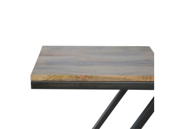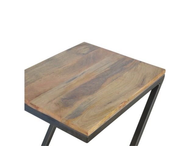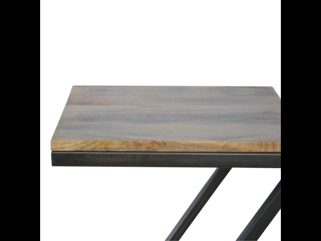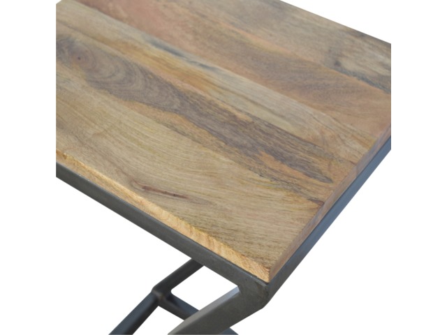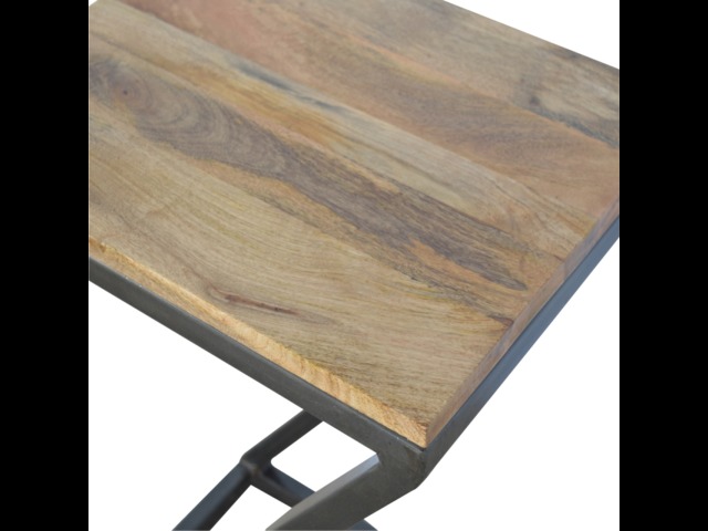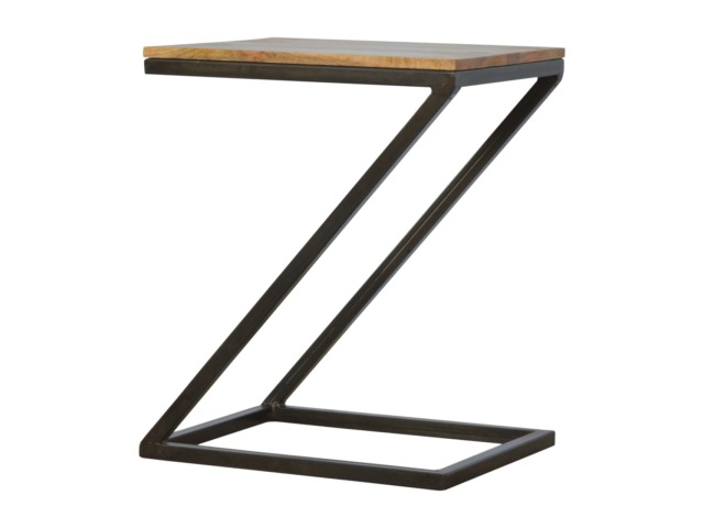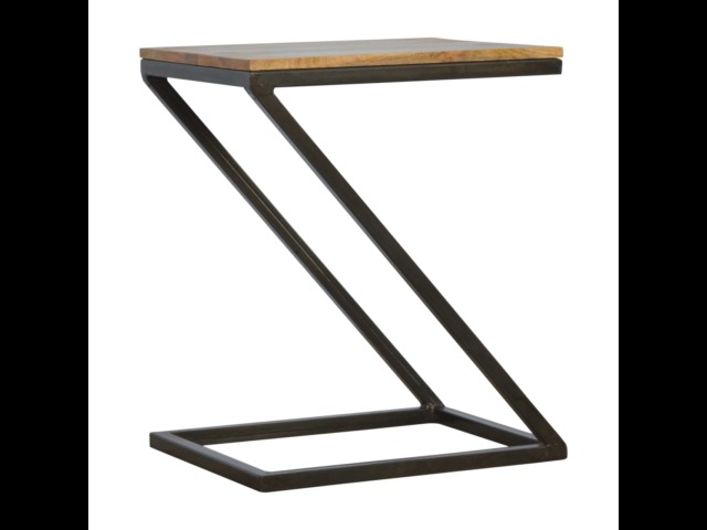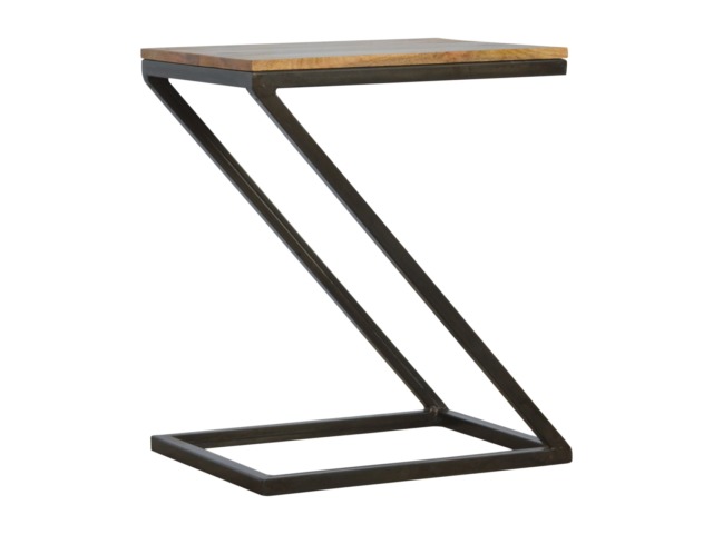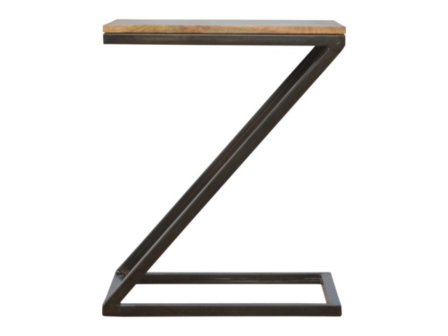 The Sullivan side table works the on-trend industrial look with understated charm. The top of the side table is constructed from 100% solid mango wood and the base/leg is made from 100% iron. Other features include a fine, smooth oak-ish finish top and a gold finish on the base. Adding another dimension to its character is its distinctive Z-shaped figure, resulting in a more streamlined look, but maintaining a solid structure.
