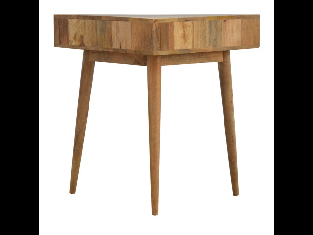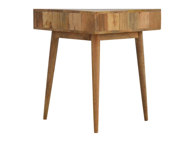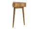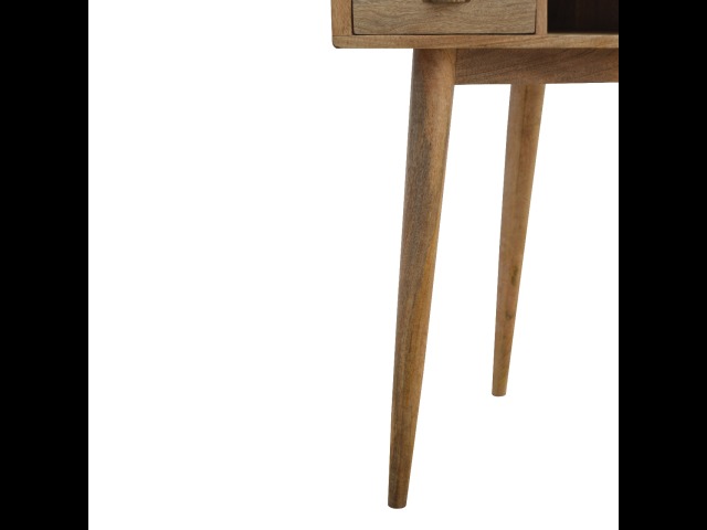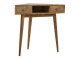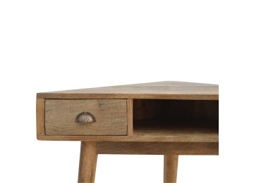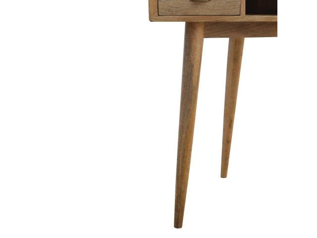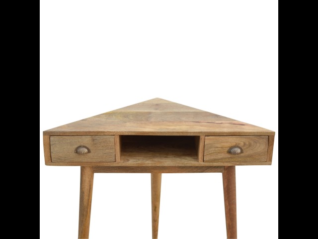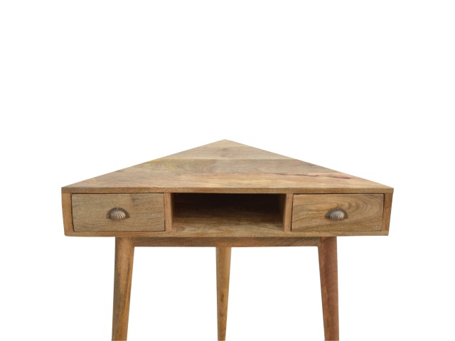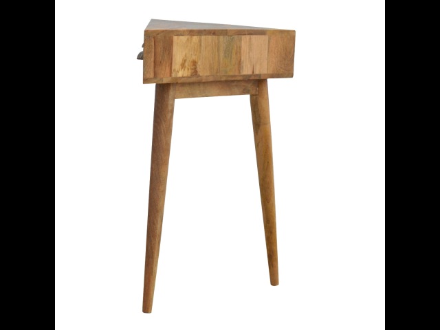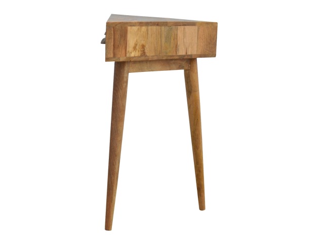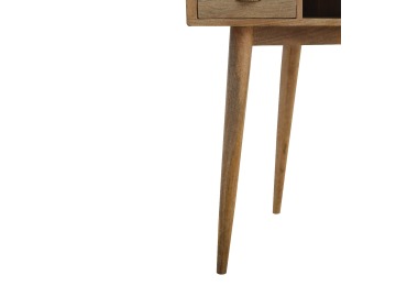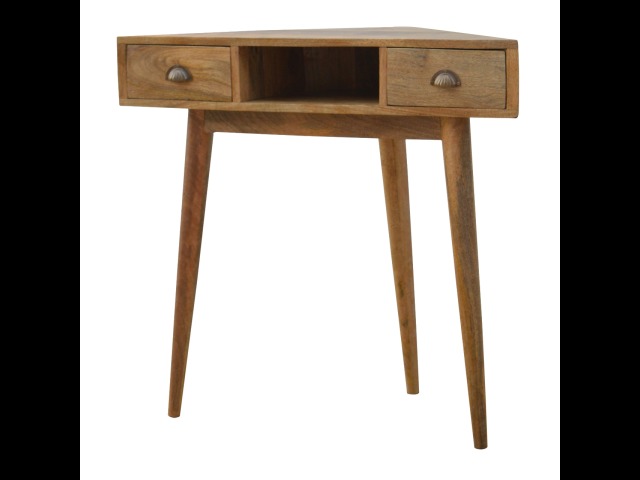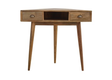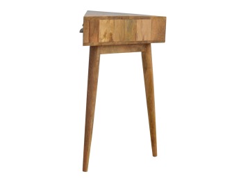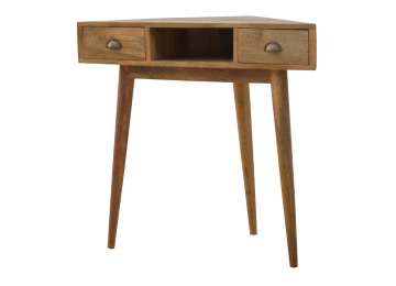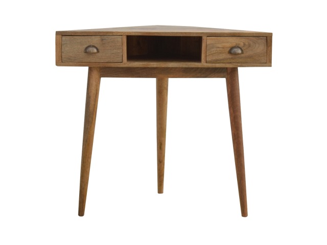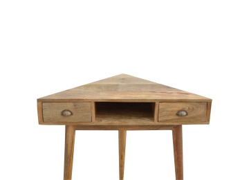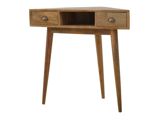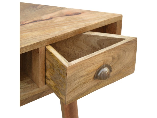 This timeless and understated light solid wood writing desk takes on the sleek lines, it has an open slot and 2 drawers for storing any bits and pieces and ample space to work on. Made from 100% Mango wood in an oak-isk finish.