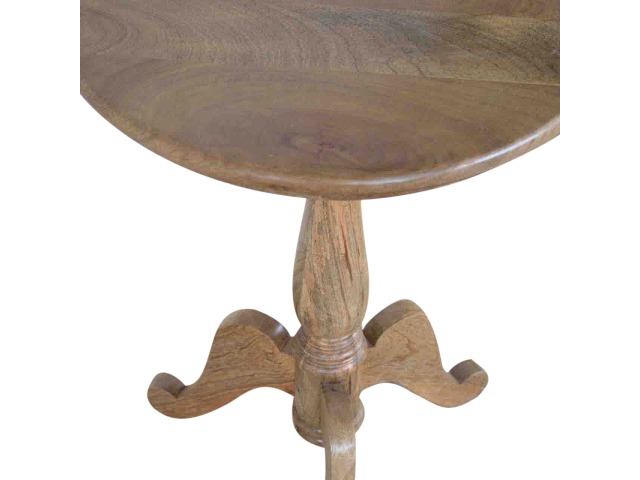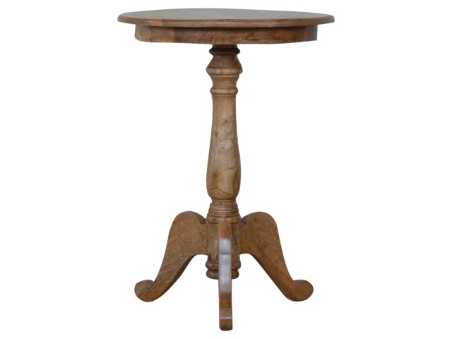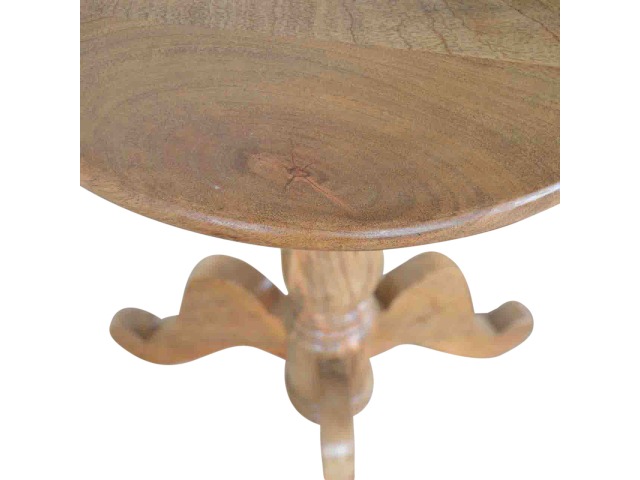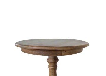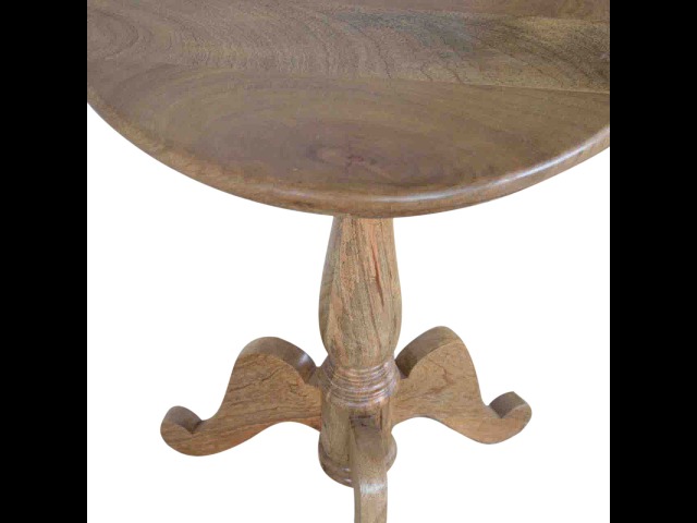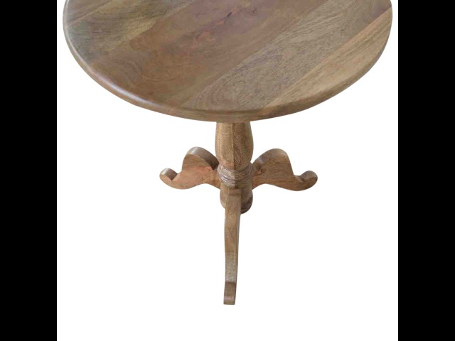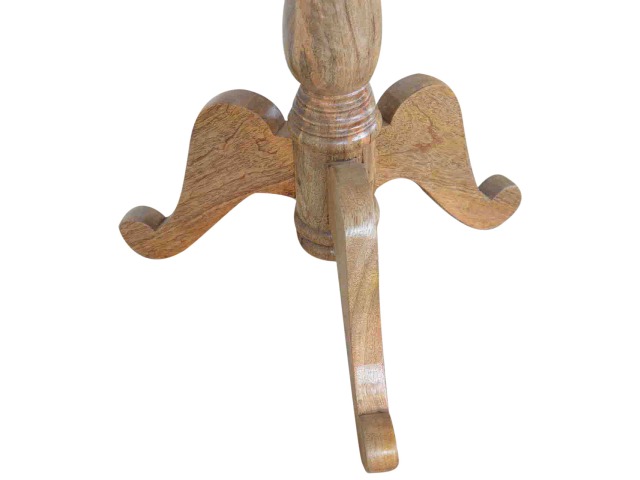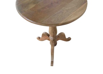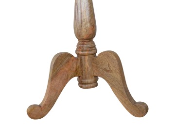 Create an elegant afternoon tea experience with this Tea Table. Drawing inspiration from a classic French design it combines graceful curves with warm wood tones. Crafted from solid mango wood with an oak-ish finish this round table is the perfect piece for any dining room or kitchen. Every piece of furniture is individually handcrafted and includes swing care tickets explaining the cautions and aftercare instructions.