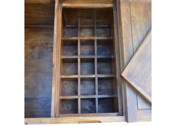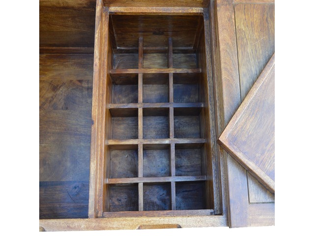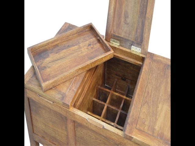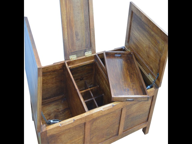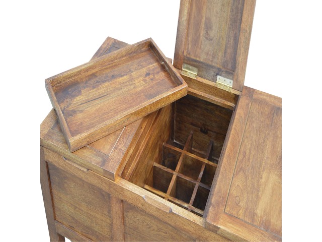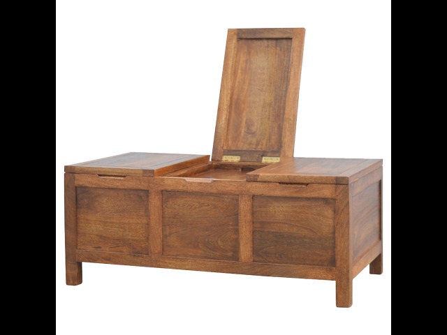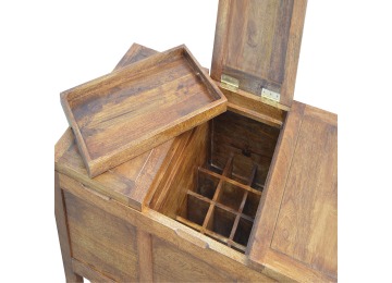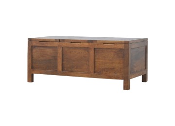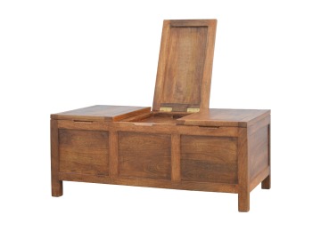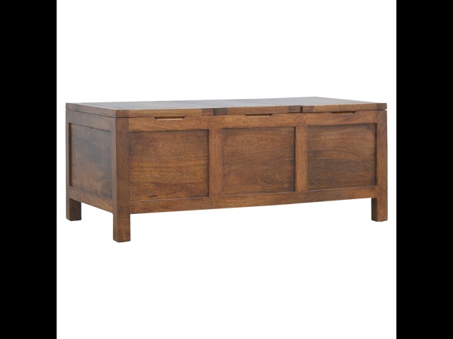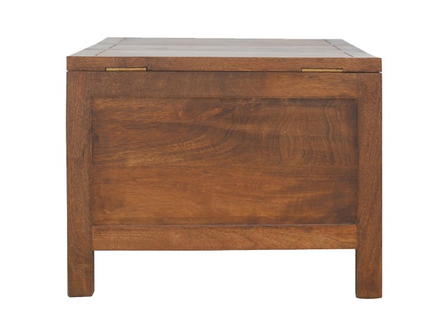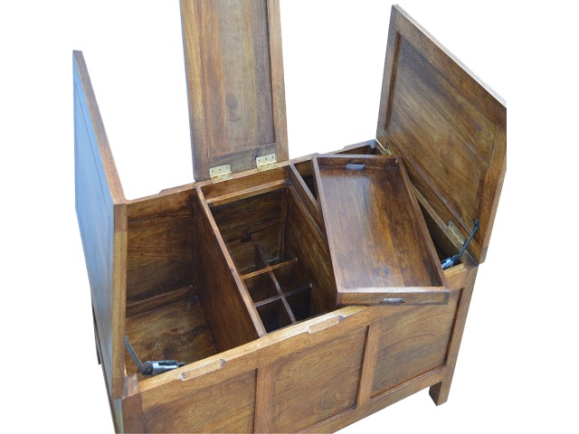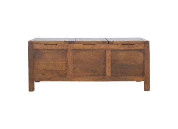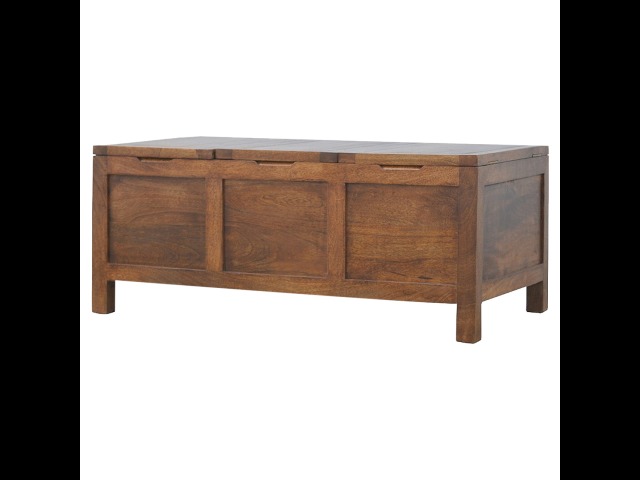 Add this folding tucker table to your dining room, conservatory or hallway. It features an open compartment in the middle which is handy for placing any bottles of wine and 2 lid up storage seats which can be used for late night laughs with friends and family, and perfect for stroring away any blankets or cushions. It has been constructed from 100% solid mango wood in a chestnut finish and 4 straight.