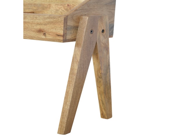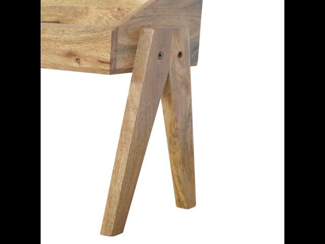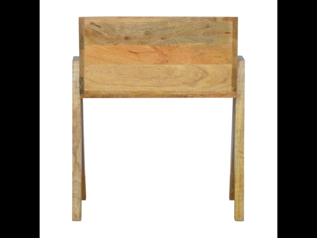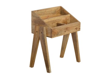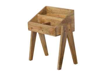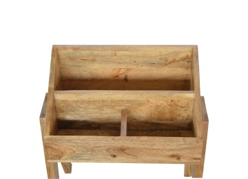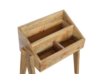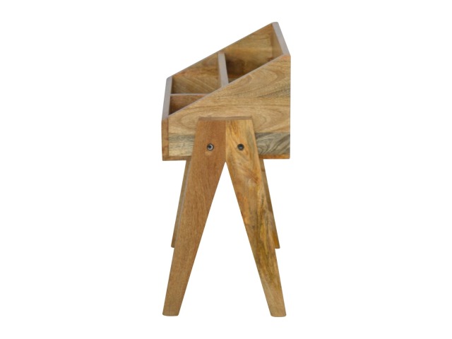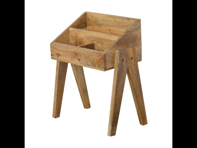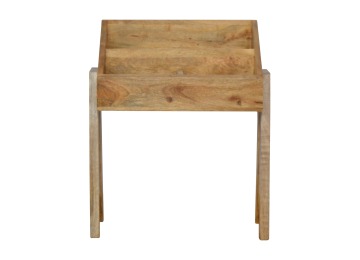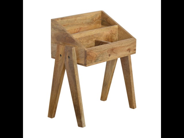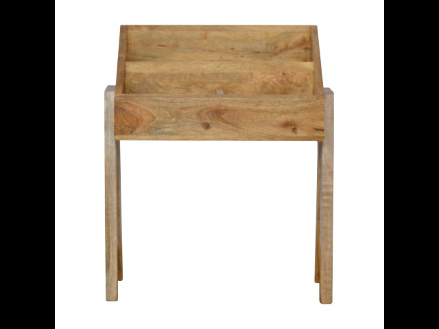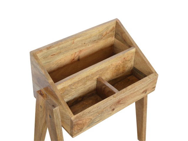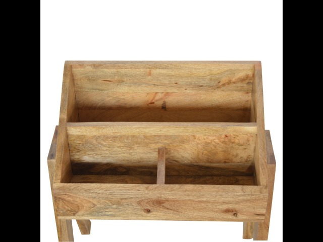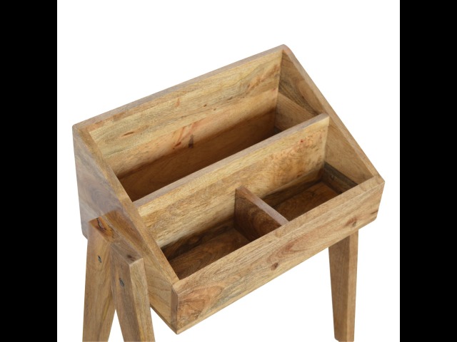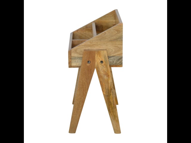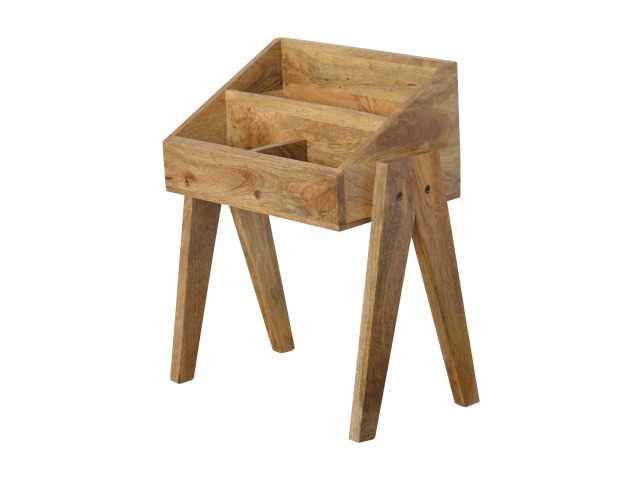 Keep your magazines and newspapers organised all around with home with this magazine rack. It has been constructed from 100% solid mango wood and finished in a fine oak-ish finish body. Some characteristics of this product include the unique v-shaped Nordic leg design and multiple sized compartments for placing books, magazines and papers of any size.