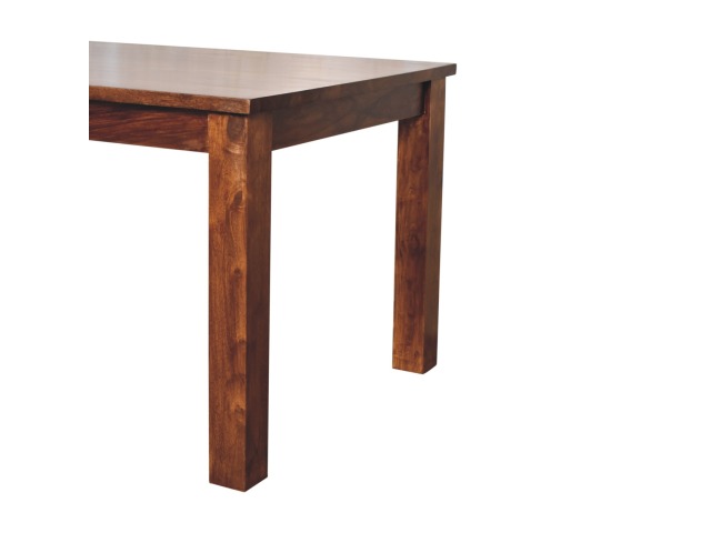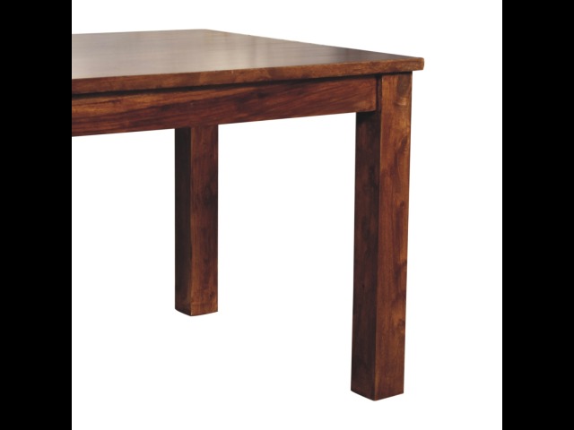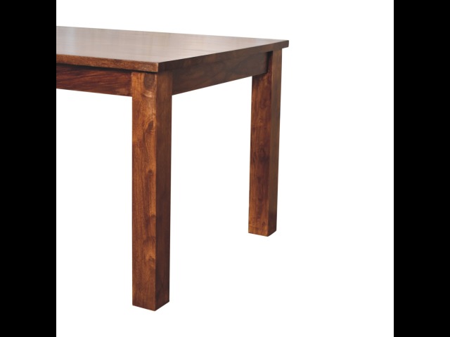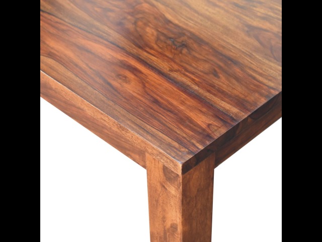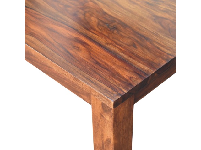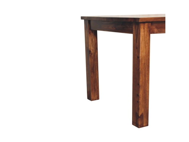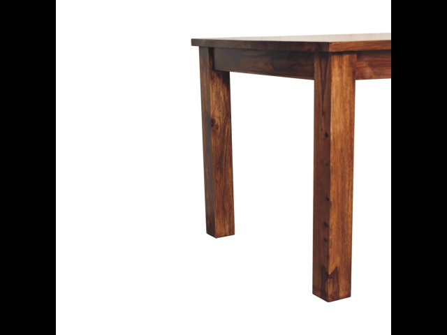 Introducing the Tula Dining Table, masterfully crafted from the finest Sheesham wood and adorned with a rich chestnut finish. This piece embodies elegance making it a stunning centerpiece for any dining room. Designed to accommodate both intimate dinners and larger gatherings, its durable construction and timeless design ensure it will be cherished for years to come. Make every meal a special occasion with the Tula Dining Table.