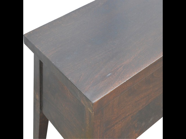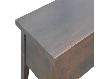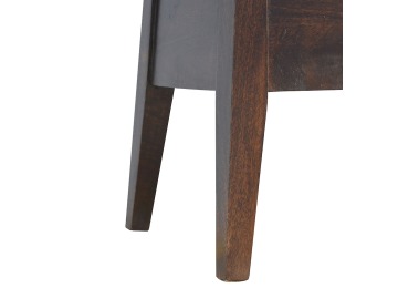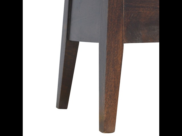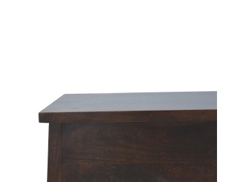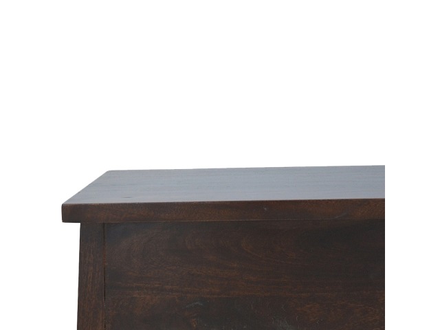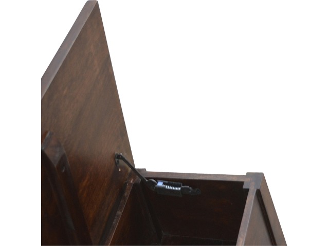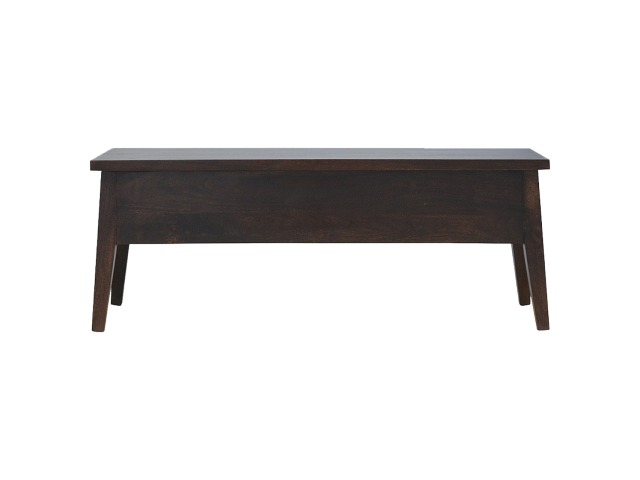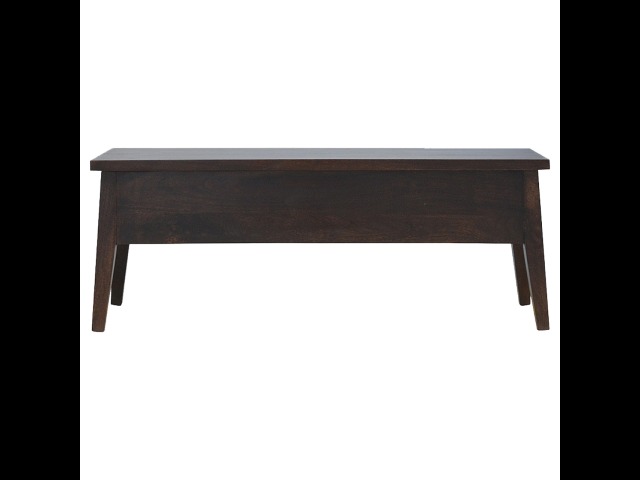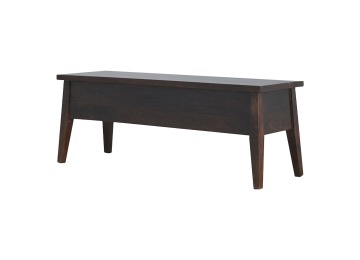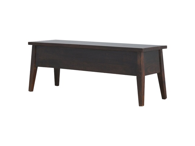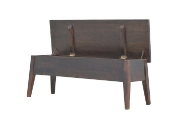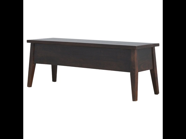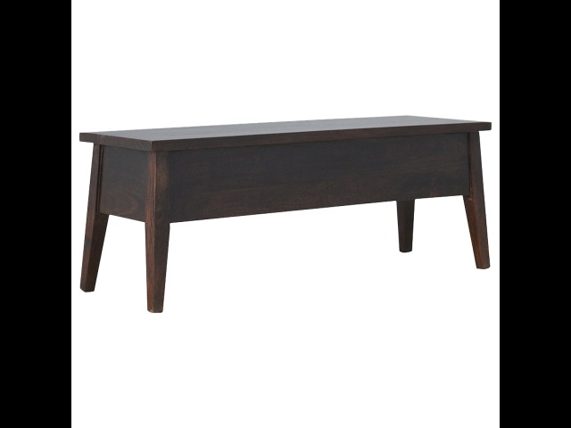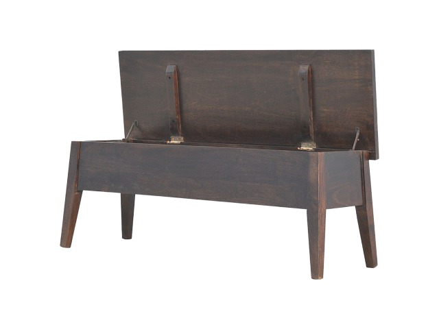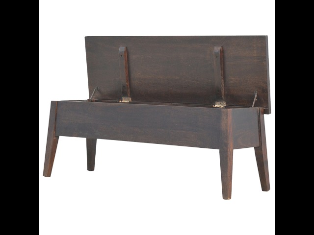 This storage bench is constructed from 100% solid mango wood and has a walnut finish. Useful storage space is provided under the seat, and the lid stays open so you can safely and easily take things in and out. A both good-looking and practical bench that gives a warm, cosy feeling works just as well in the living room, hallway or bedroom. Other features include 4 Scandinavian styled legs.