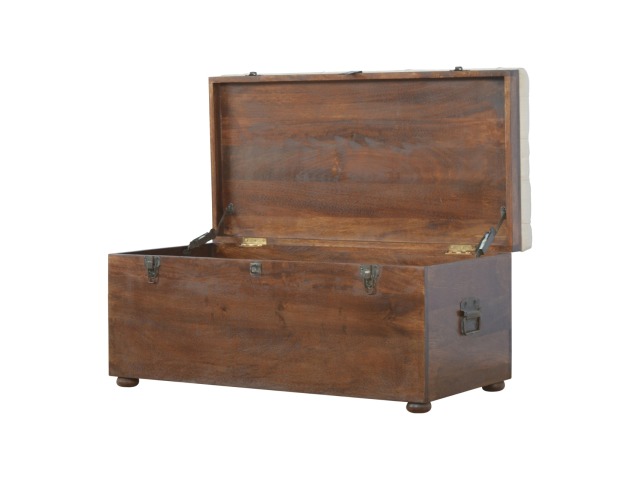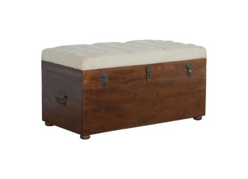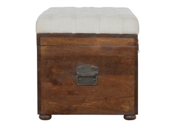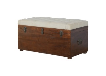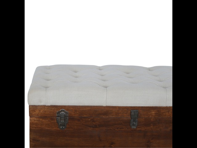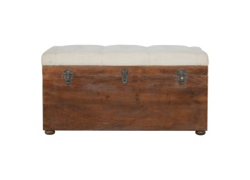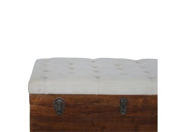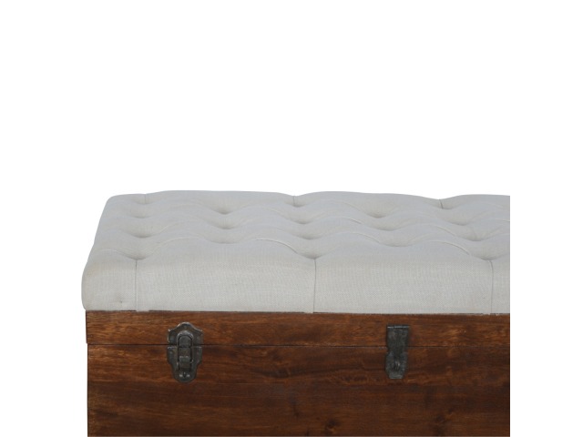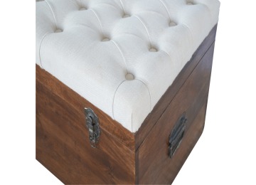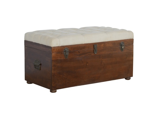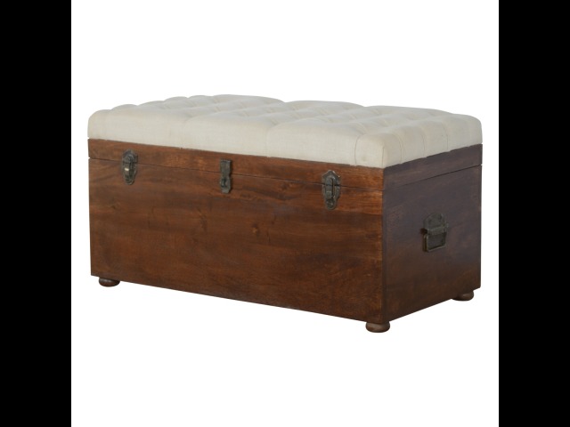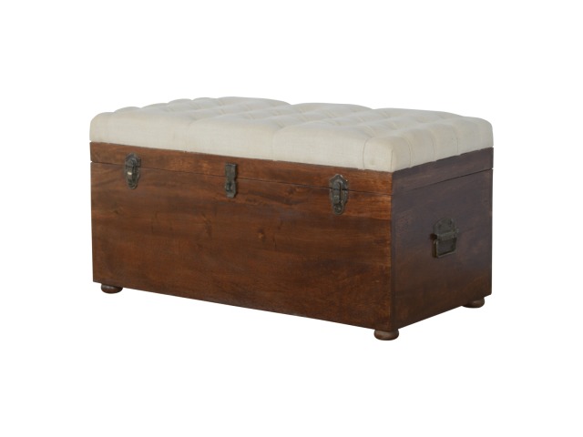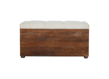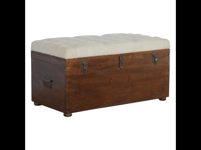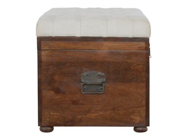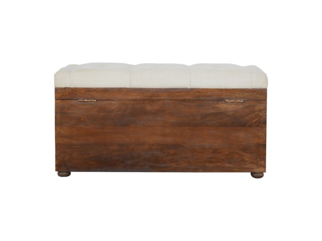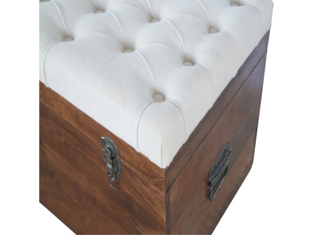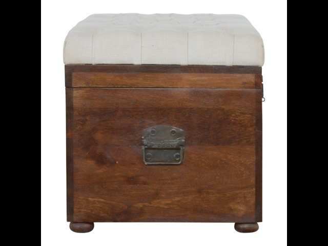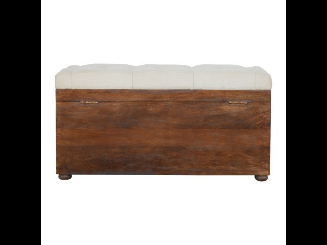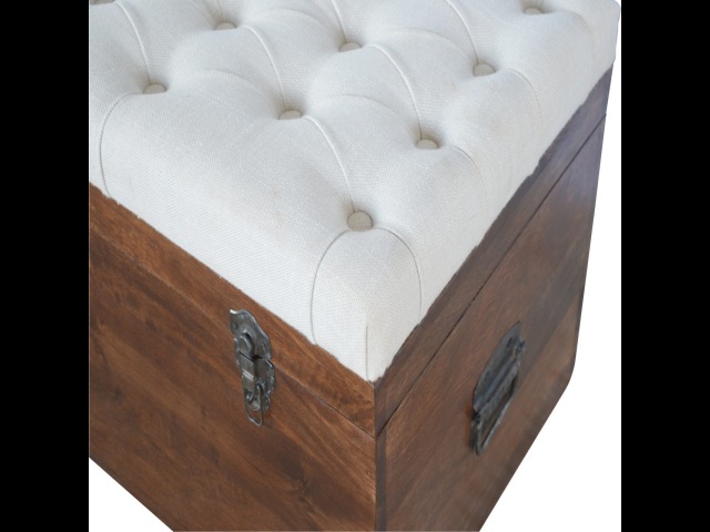 This Lid-up storage box has been constructed from 100% solid mango wood and has been finished in a beautiful chestnut colour. Upholstered in a beautiful white linen and feauturing a deep button design it is the perfect seat which offers comfortability. The lid up compartment can be used to store any extra household belongings you want to keep out of sight and it can be used either in a hallway or bedroom