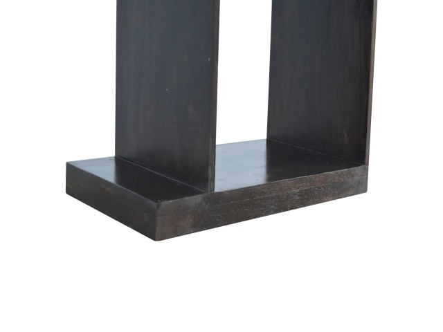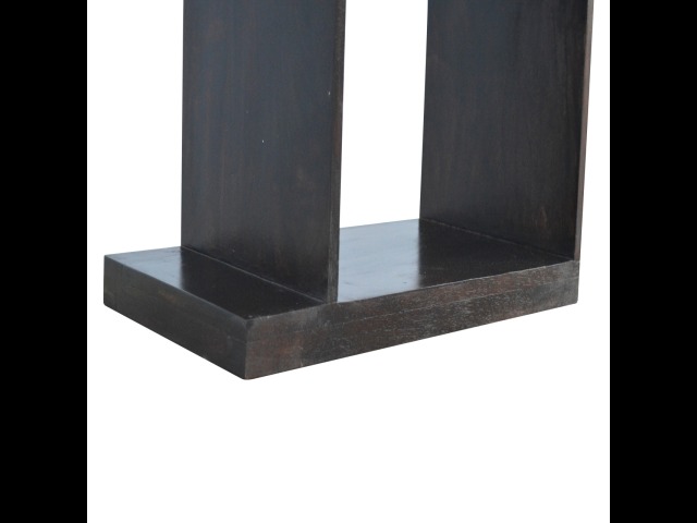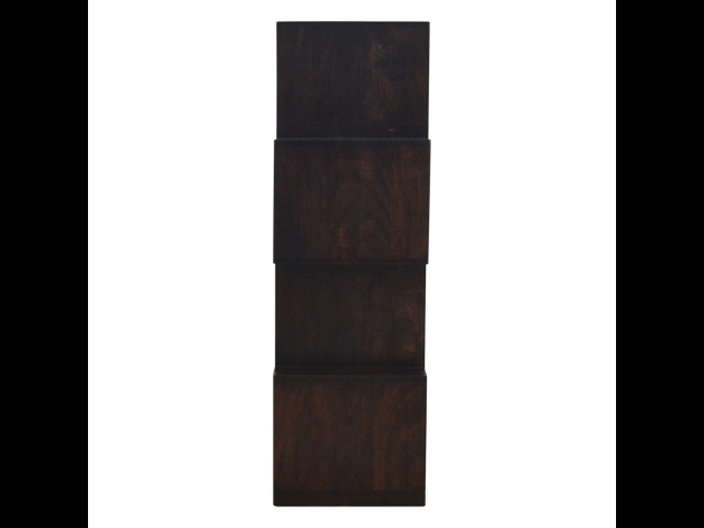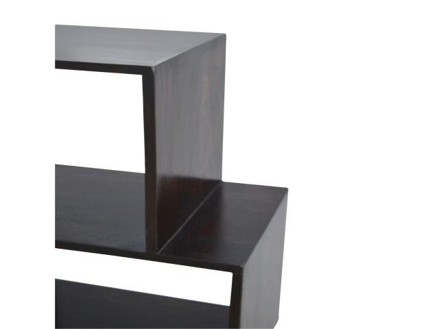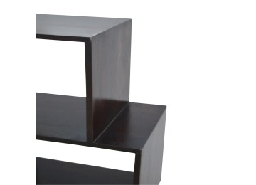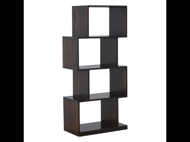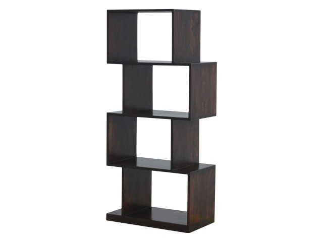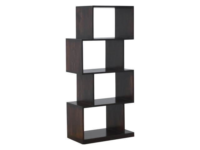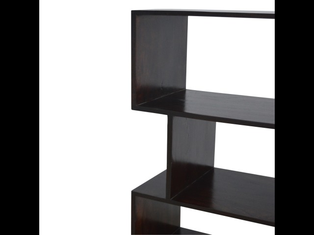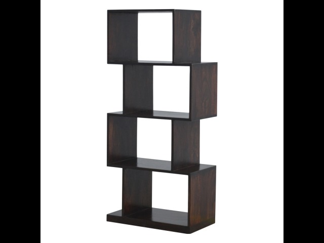 This clean, geometric, open-design display unit has been constructed from 100% solid Sheesham wood and has a rich chestnut finish. It offers enough space for placing things such as pictures, ornaments, vases etc with 4 open shelves to show them all off as the unit offers an open back it will merry nicely with the colour of the wall.